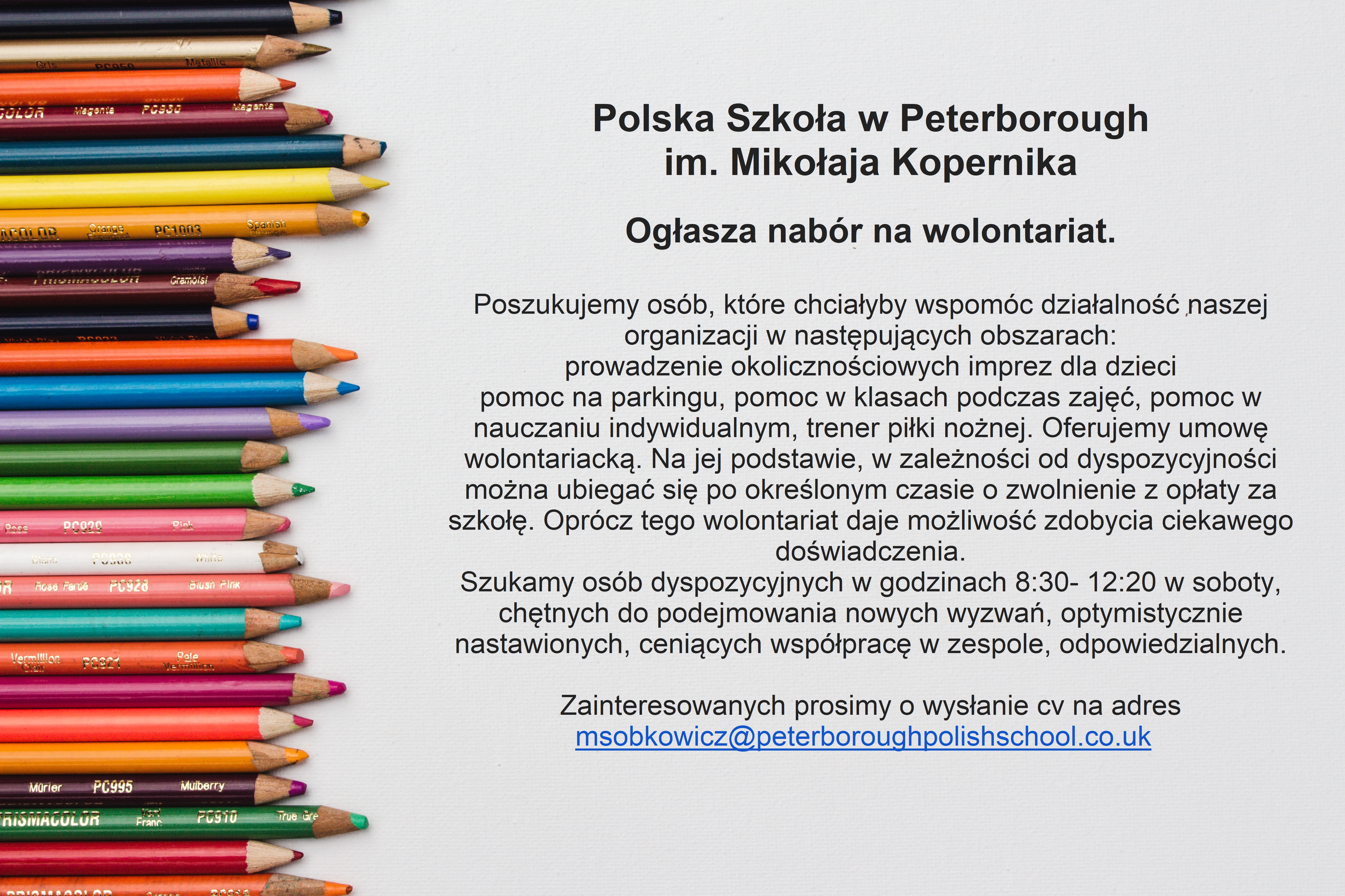 ‼️‼️‼️Osoby zainteresowane prosimy o przesłanie CV na adres e-mail: msobkowicz@peterboroughpolishschool.co.uk‼️‼️