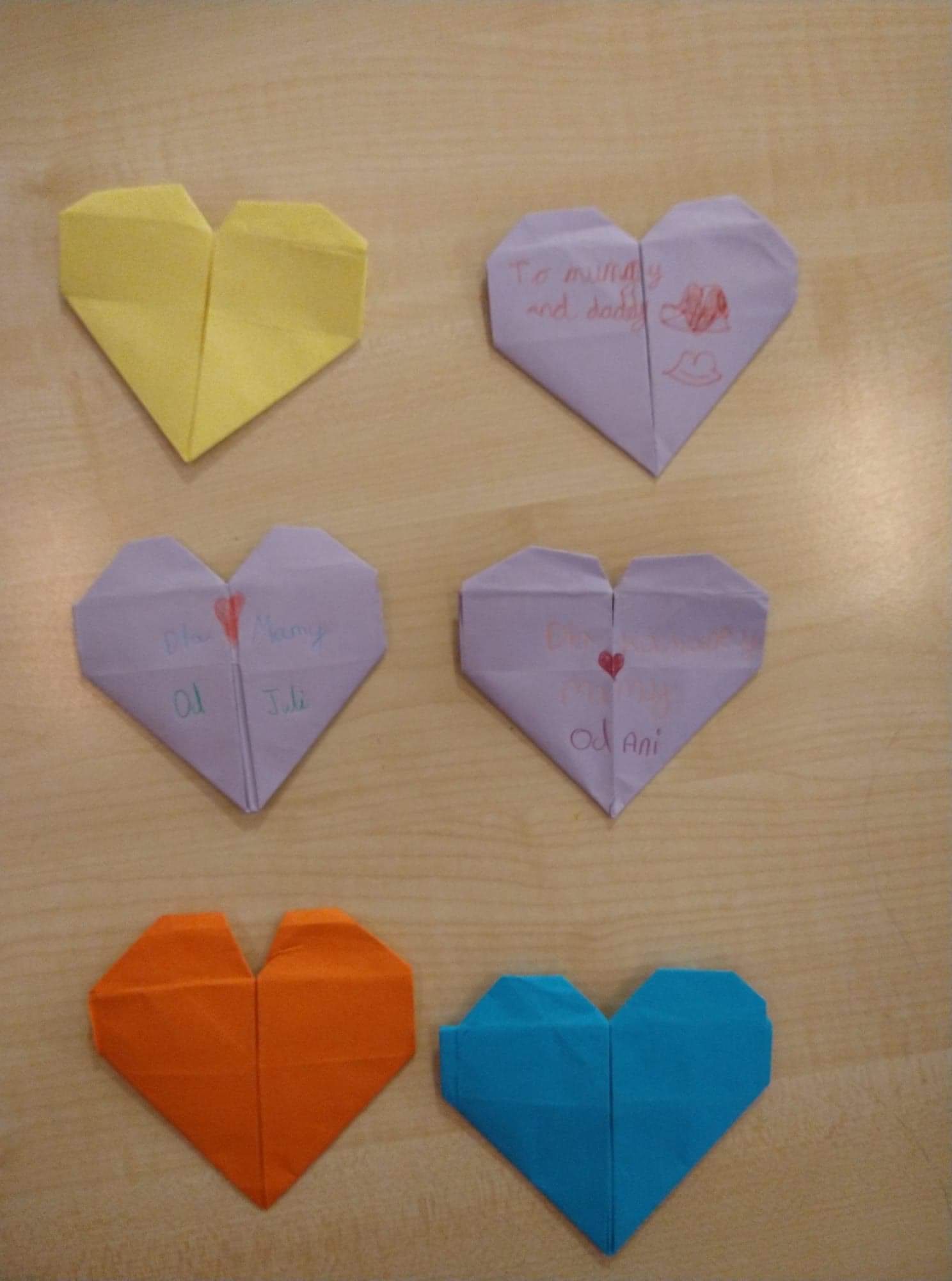 Grupa „Złote Ołówki” z okazji Walentynek wykonała serduszka i motylki metoda origami.