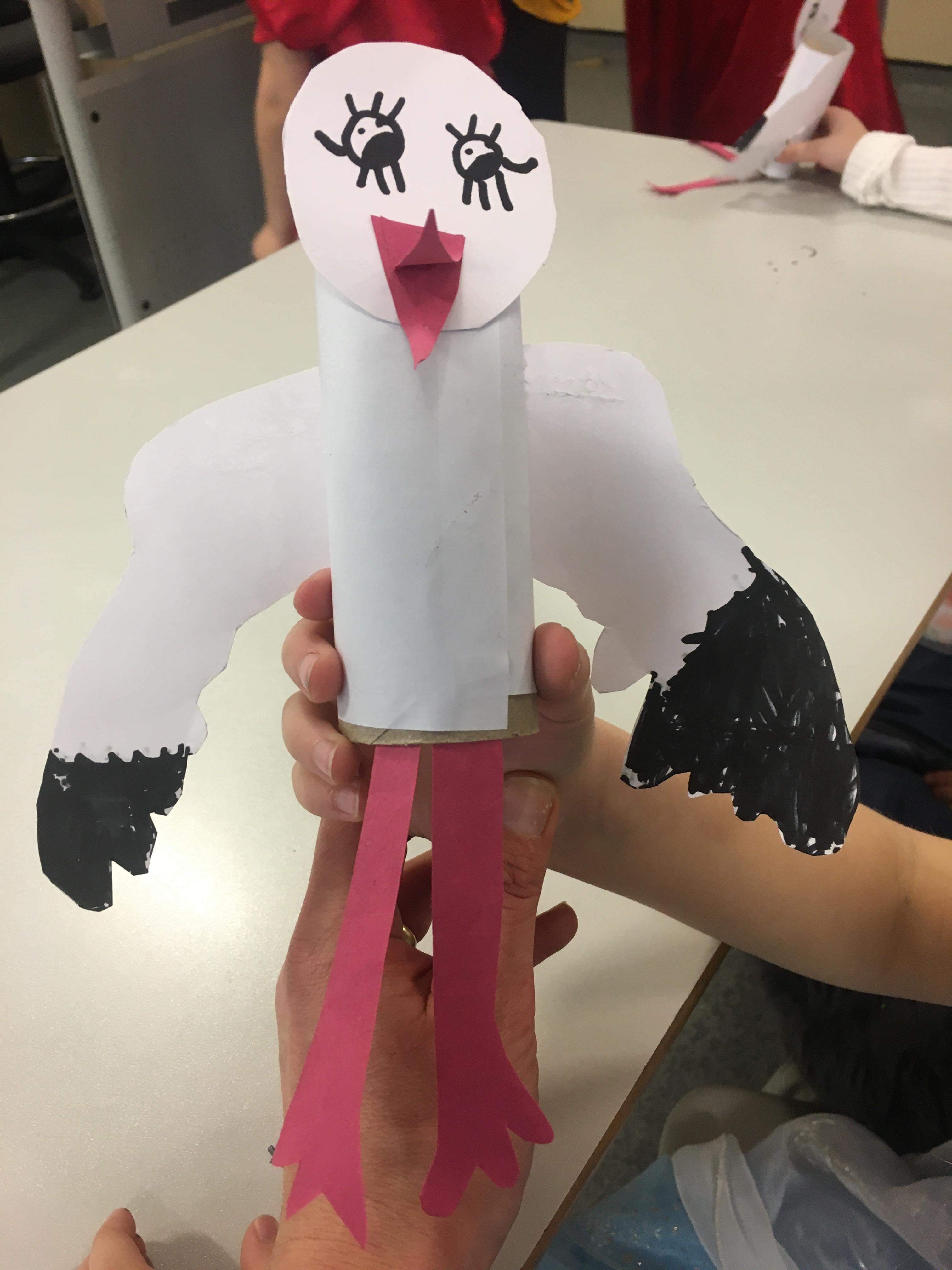 Na dzisiejszych zajeciach, nasza najmlodsza grupa plastyczna “Zmalujmy Cos” wykonala bociany z papieru 🙂