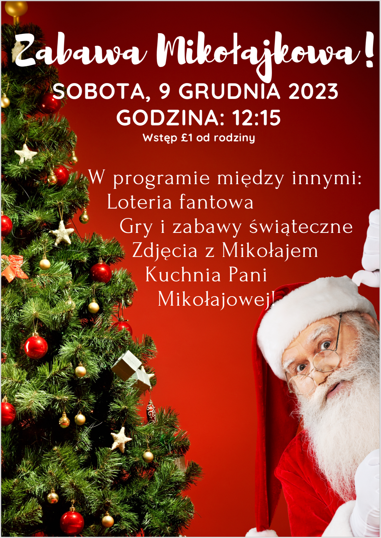 🎅 Zapraszamy dzieci, rodziców, opiekunów na naszą coroczną zabawę mikołajkową‼️🎄🎁 Spotykamy się 9 grudnia o godzine 12:15 w auli. Liczymy na mnóstwo śmiechu, zabawy i wspólnego świętowania! 🌟 #ZabawaMikołajkowa #WesołychŚwiąt