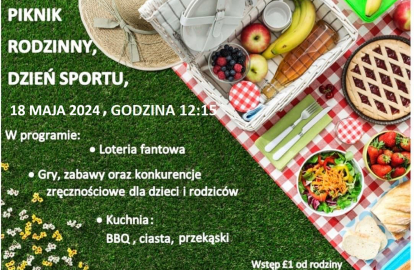 Serdecznie zapraszamy na organizowany w sobotę, 18 maja 2024 roku, Piknik Rodzinny połączony z Dniem Sportu oraz dniem otwartym. Pośród licznych atrakcji, między innymi loteria fantowa, gry, zabawy i konkurencje zręcznościowe, BBQ, ciasta, napoje oraz przekąski. Impreza rozpocznie się o godzinie 12:15 na boisku trawiastym, wstęp £1 od rodziny. Prosimy, aby przynieść ze sobą koce, na których będzie można usiąść i w gronie najbliższych miło spędzić czas. 🍔🍰🏆🎈🎨🥳
