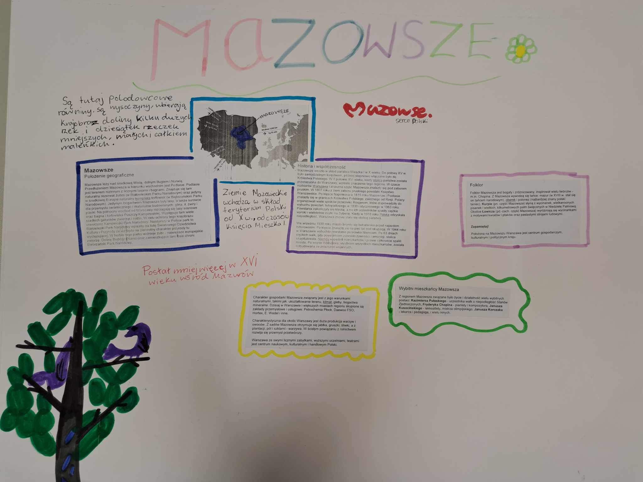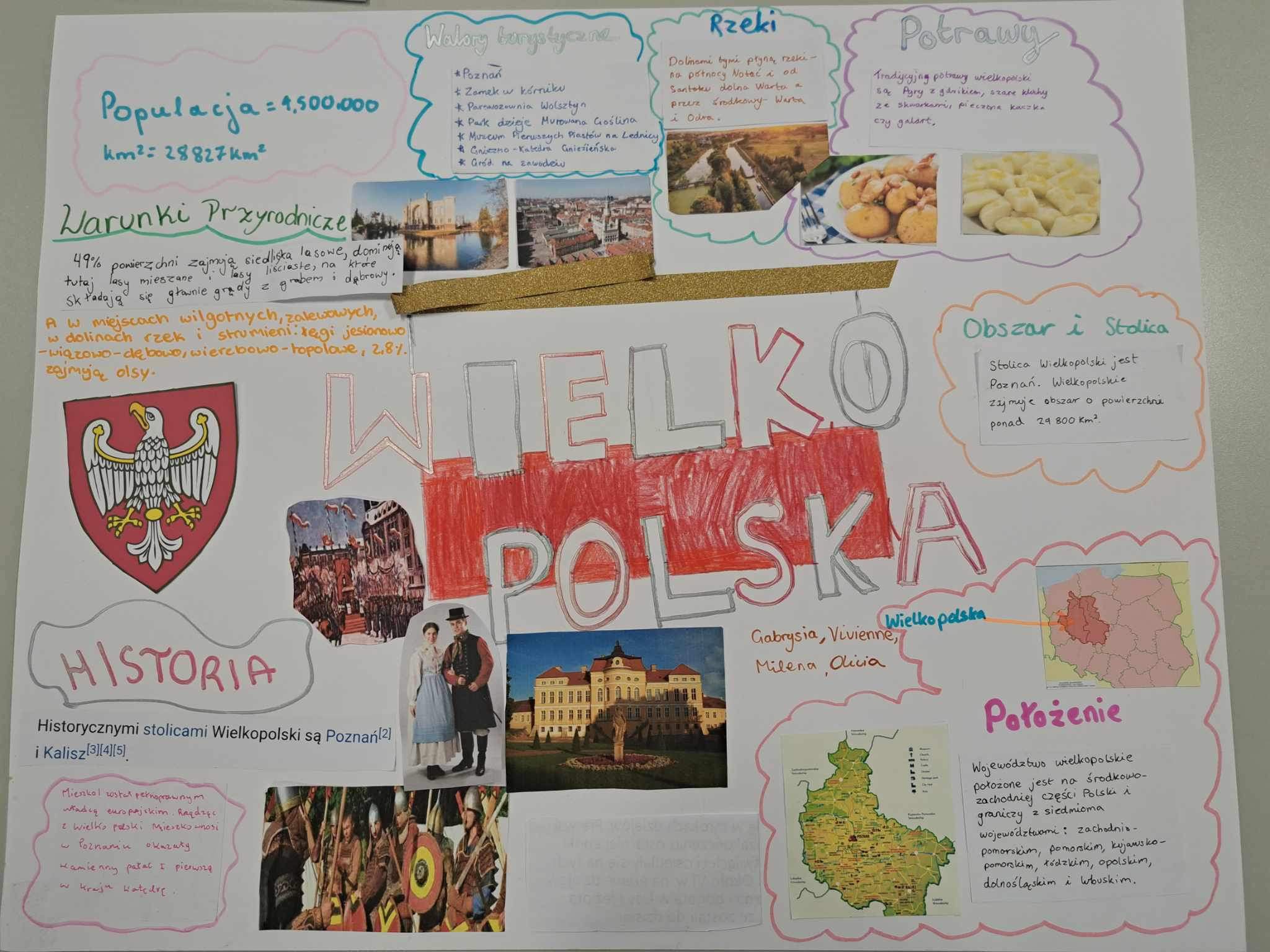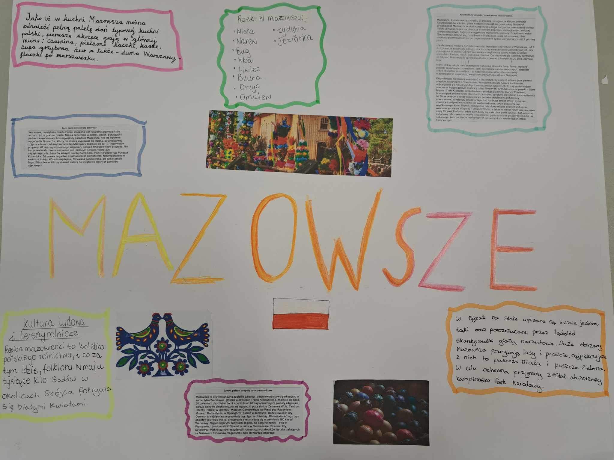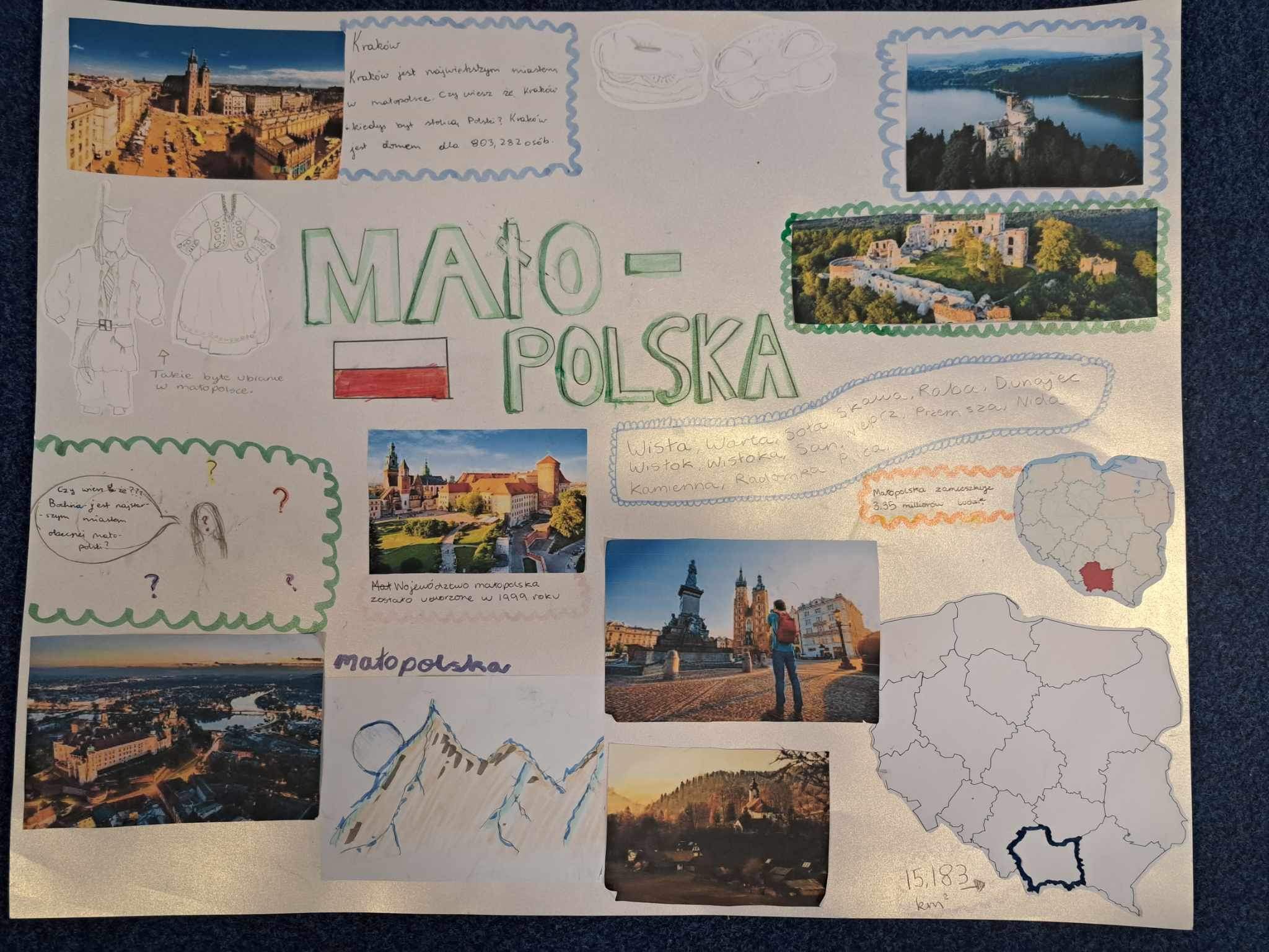 Uczniowie klas 7dmych podczas lekcji geografii wykonali fantastyczne plakaty promujace regiony Polski: Mazowsze, Slask, Malopolske, Wielkopolske i Pomorze. Uczniowie uwzglednili polozenie regionow, elementy historii, atrakcje turystyczne oraz tradycje regionalne. Brawo za kreatywnosc i zaangazowanie uczniow w wykonanie prac.