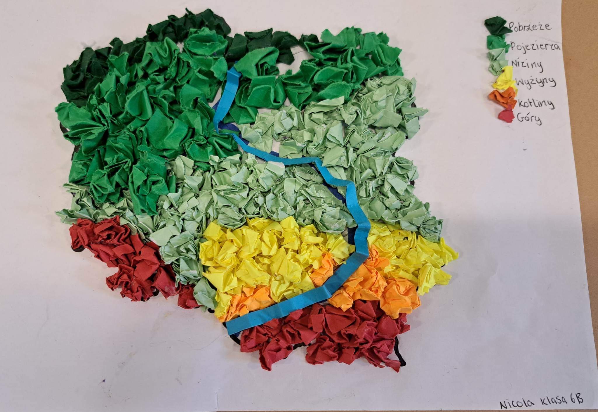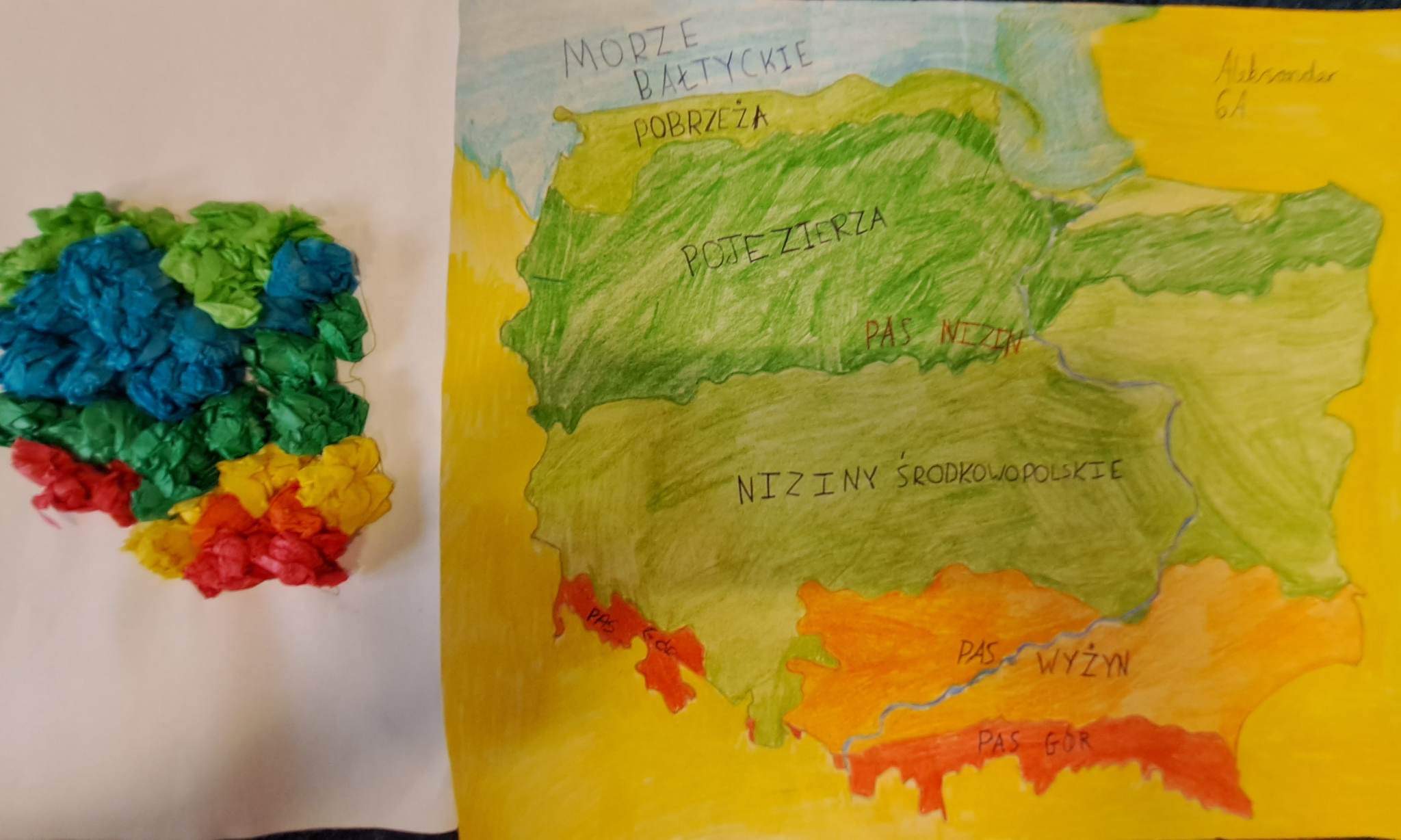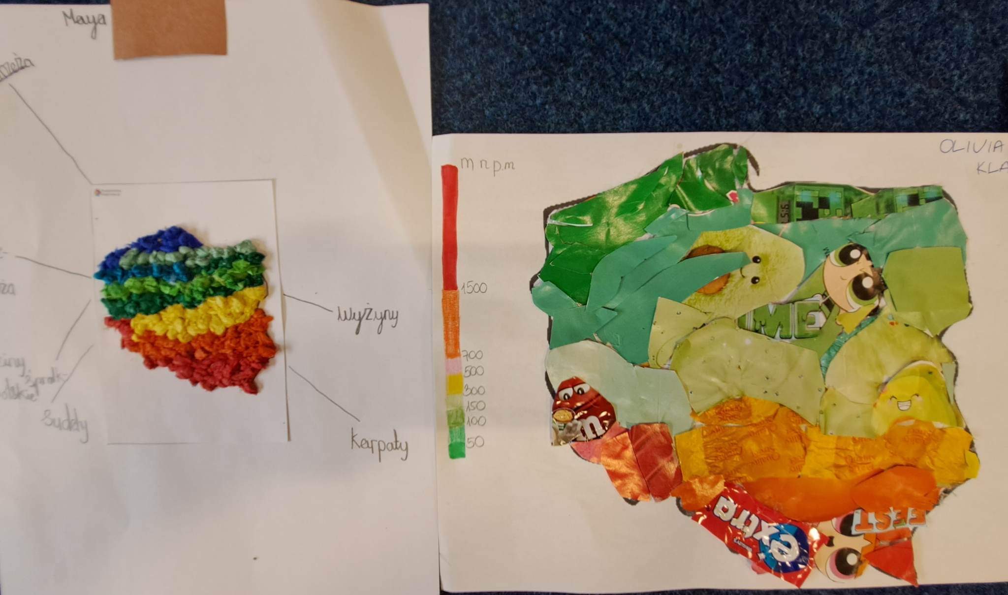 Niezwykle uzdolnieni uczniowie klas 6stych przygotowali na lekcje geografii mapy hipsometryczne Polski ukazujace pasmowy uklad rzezby: pas pobrzezy, pojezierzy, nizin srodkowopolskich, wyzyn, kotlin oraz gor. Na uwage zasluguje kreatywnosc uczniow i roznorodnosc technik uzytych do przygotowania tych fantastycznych prac.