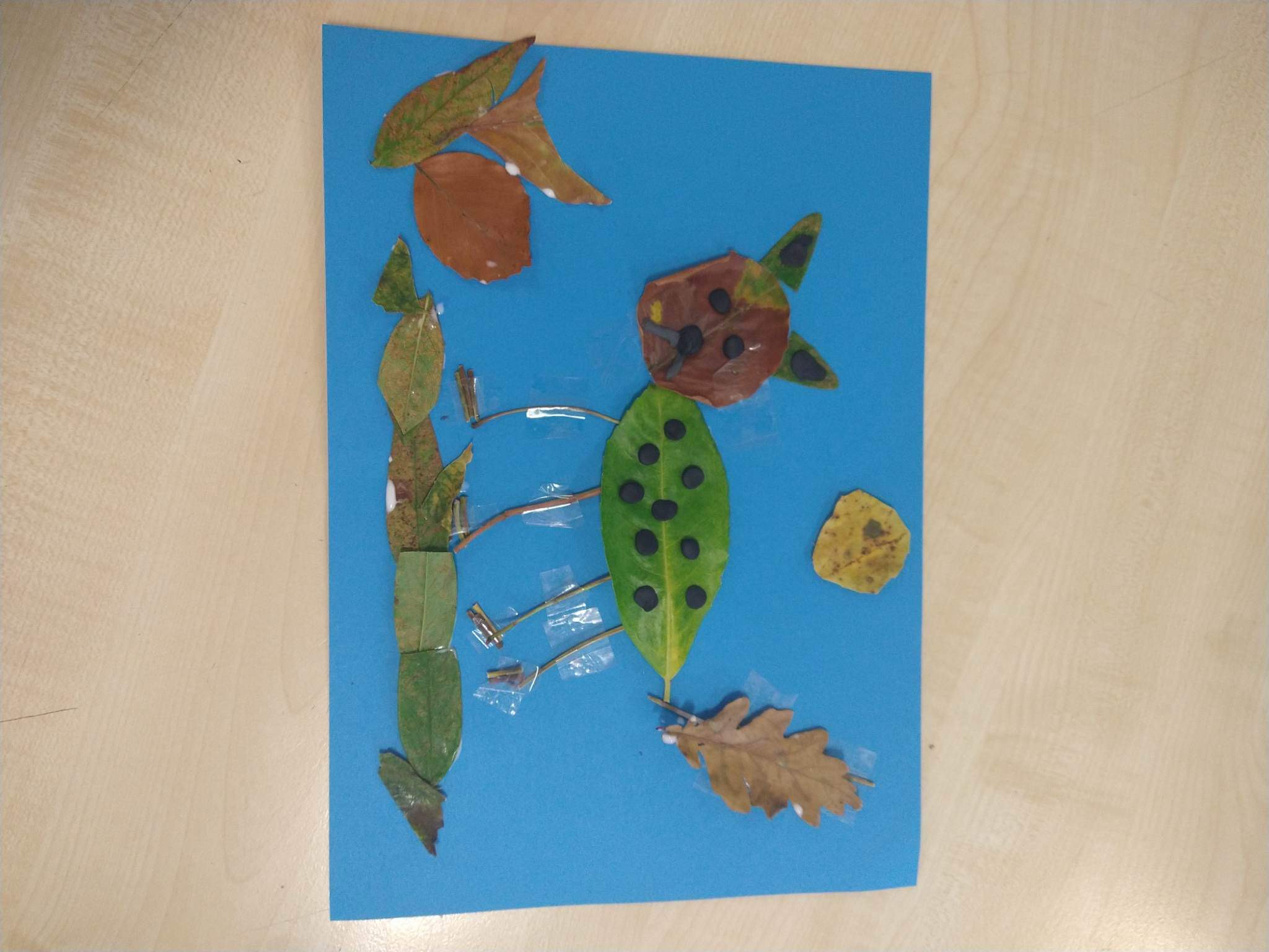 Jesienne liście – żόłte, złote, purpurowe, herbaciane – posłużyły artystom z grupy plastycznej “Kolorowe papugi” do wykonania bardzo ciekawych, pomysłowych prac przedstawiających “jesienne” zwierzᶒta. Brawo!