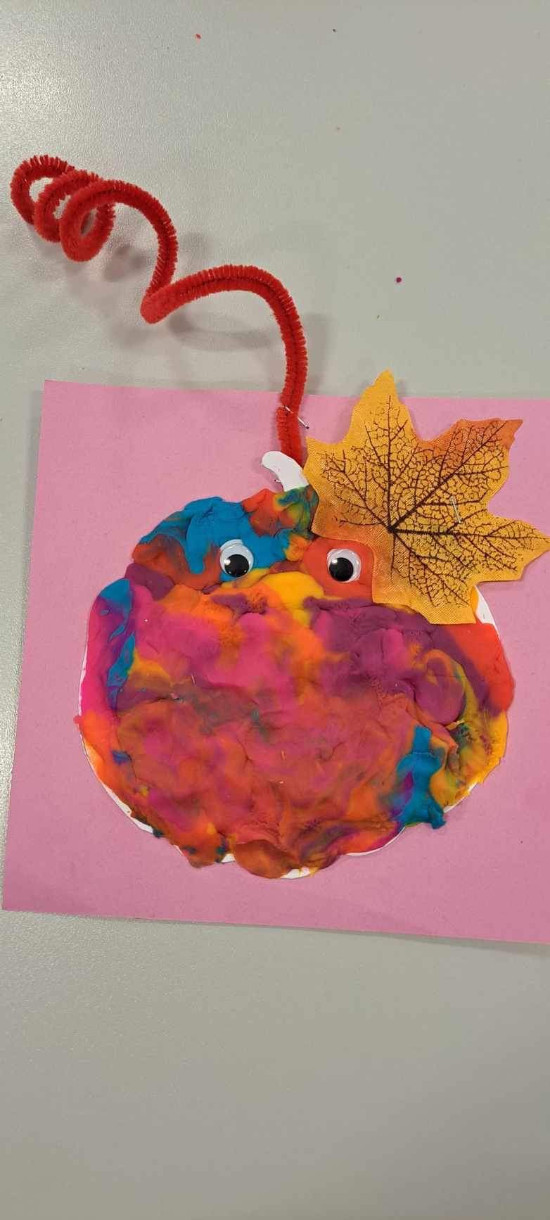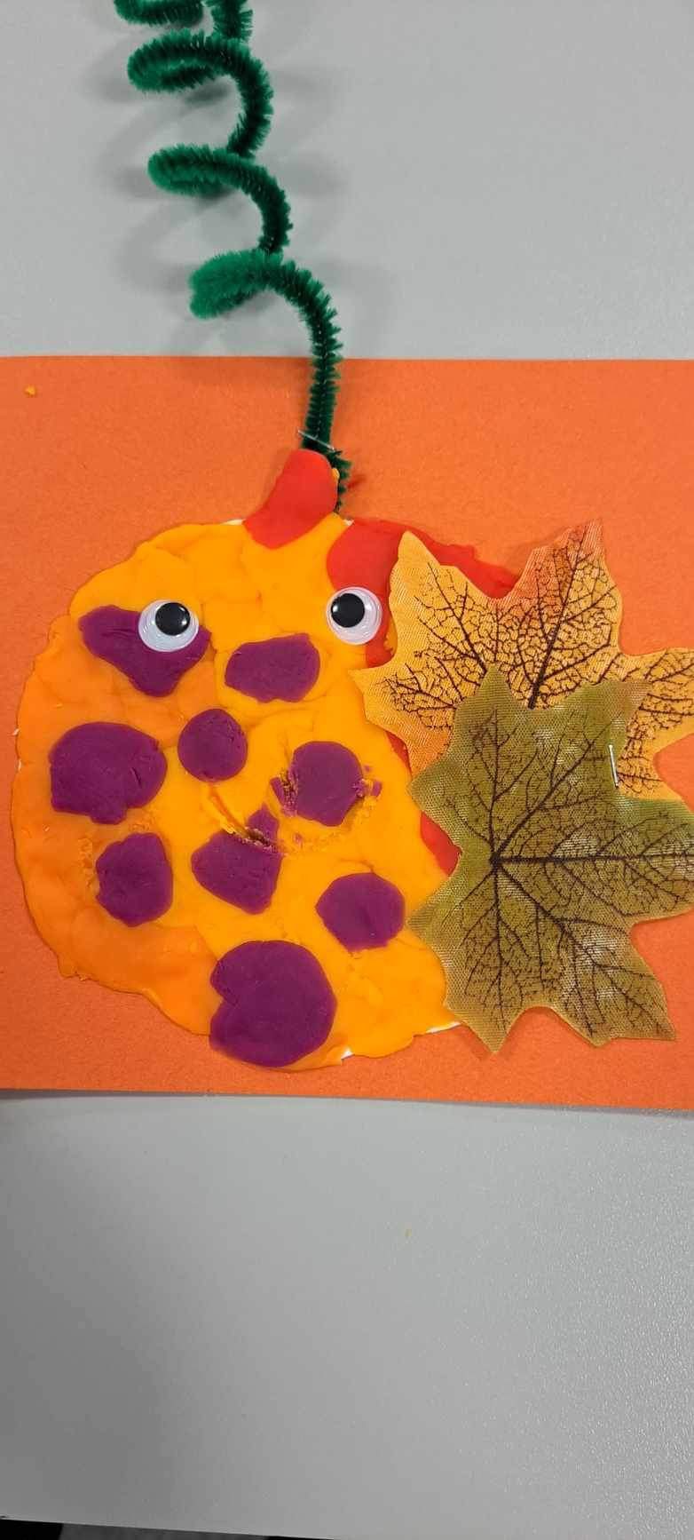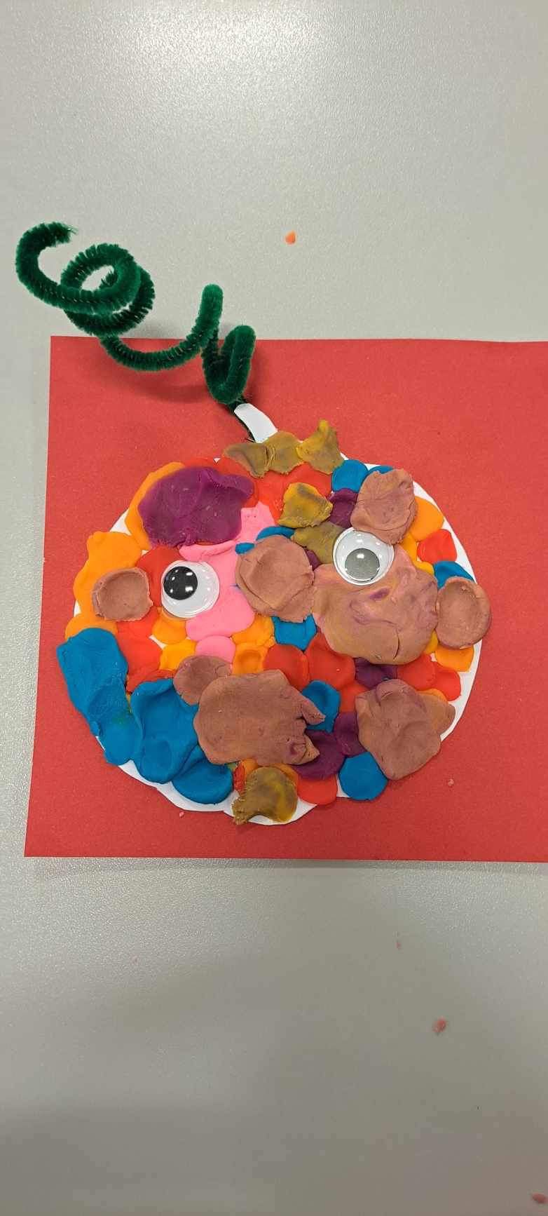 Na ostatnich zajęciach pozalekcyjnych najmłodsza grupa wykonała przepiękne dynie. Dynie zostały wykonane w technice mieszanej, przy użyciu plasteliny, ozdobione gotowymi oczkami oraz liśćmi.