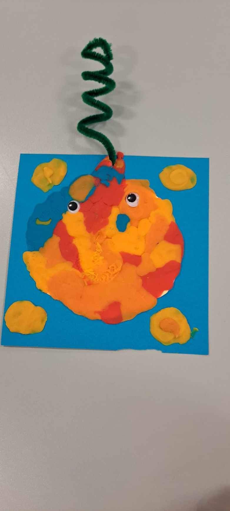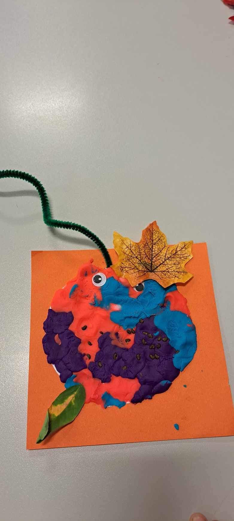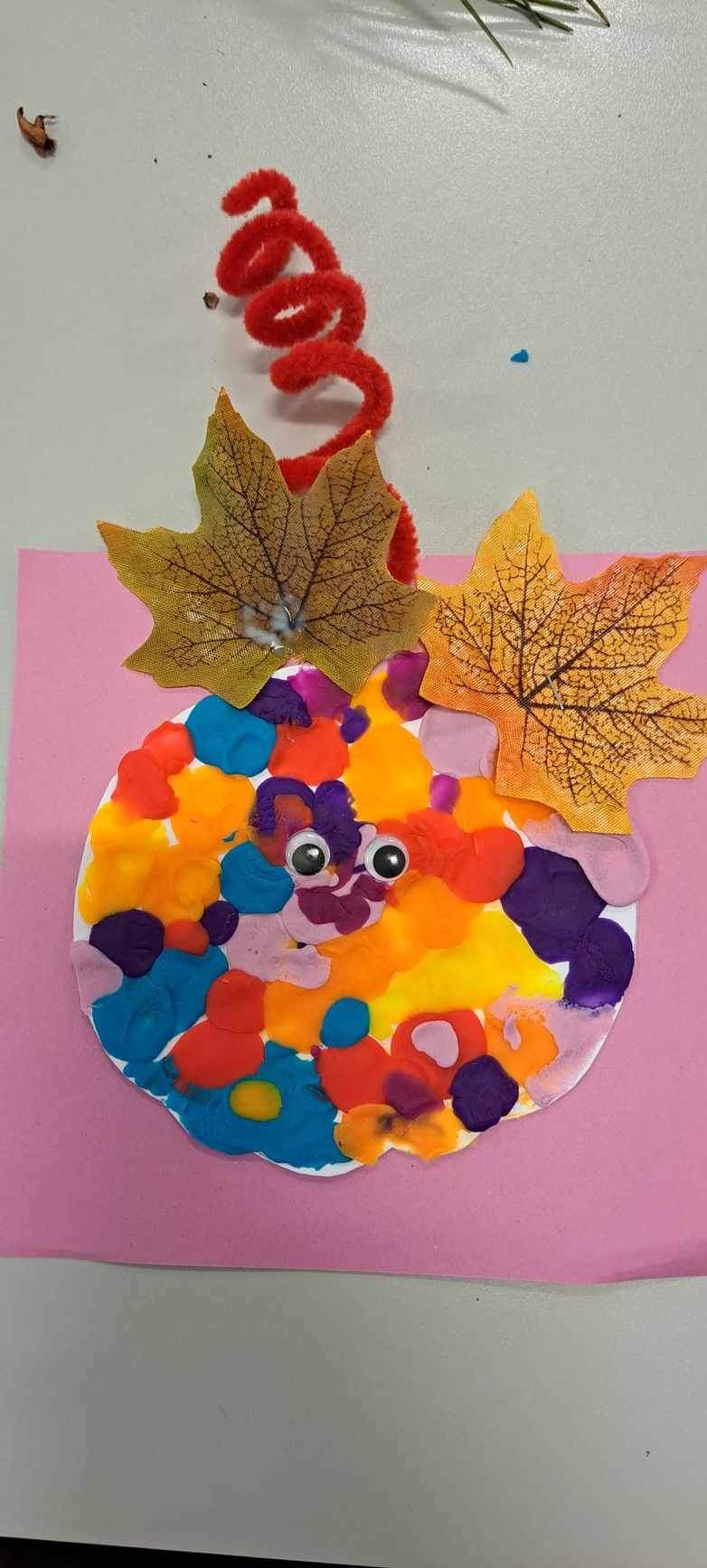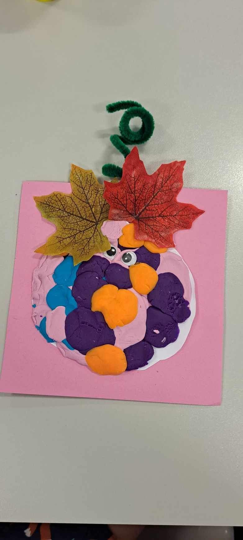 Na ostatnich zajęciach pozalekcyjnych najmłodsza grupa wykonała przepiękne dynie. Dynie zostały wykonane w technice mieszanej, przy użyciu plasteliny, ozdobione gotowymi oczkami oraz liśćmi.