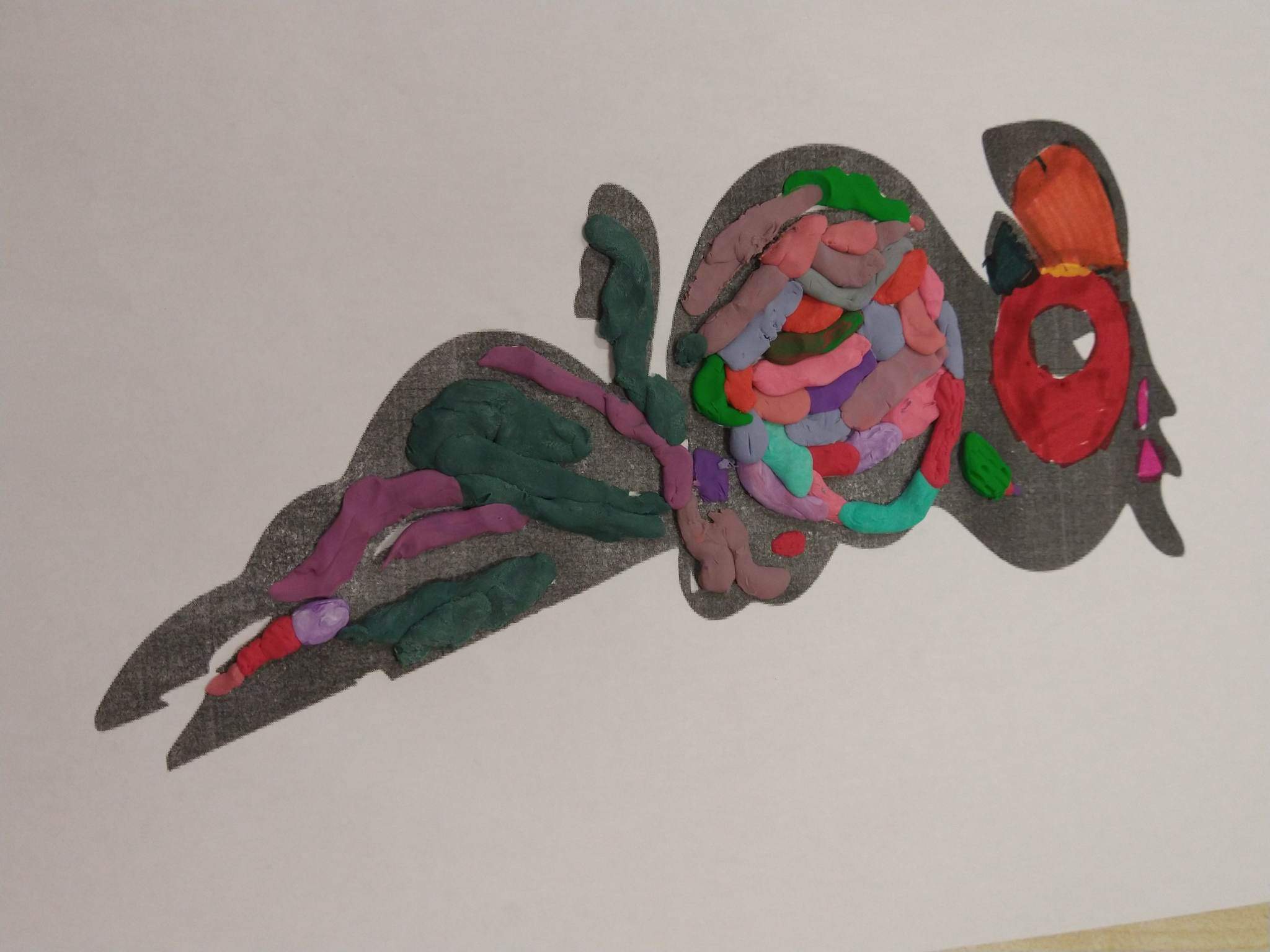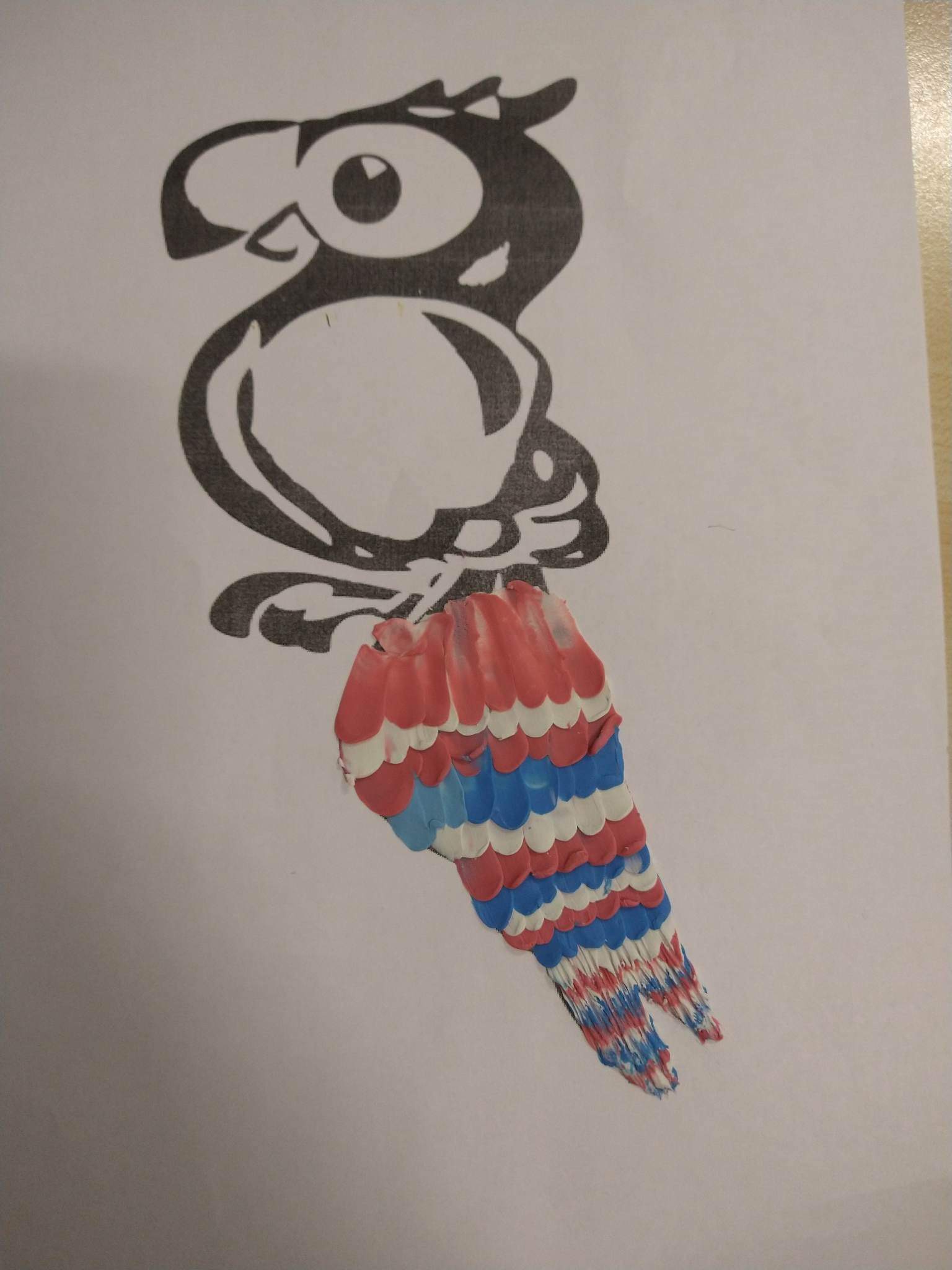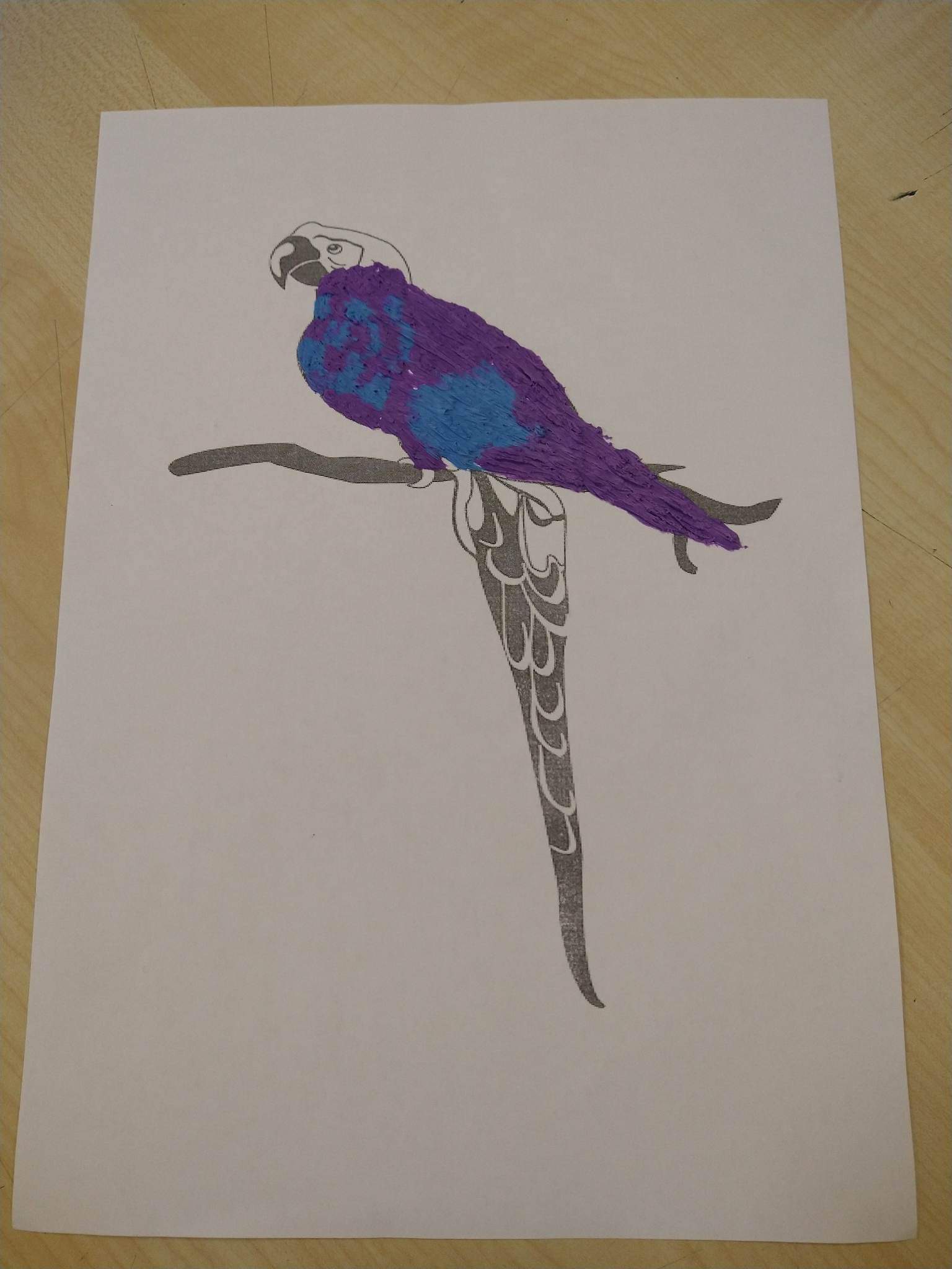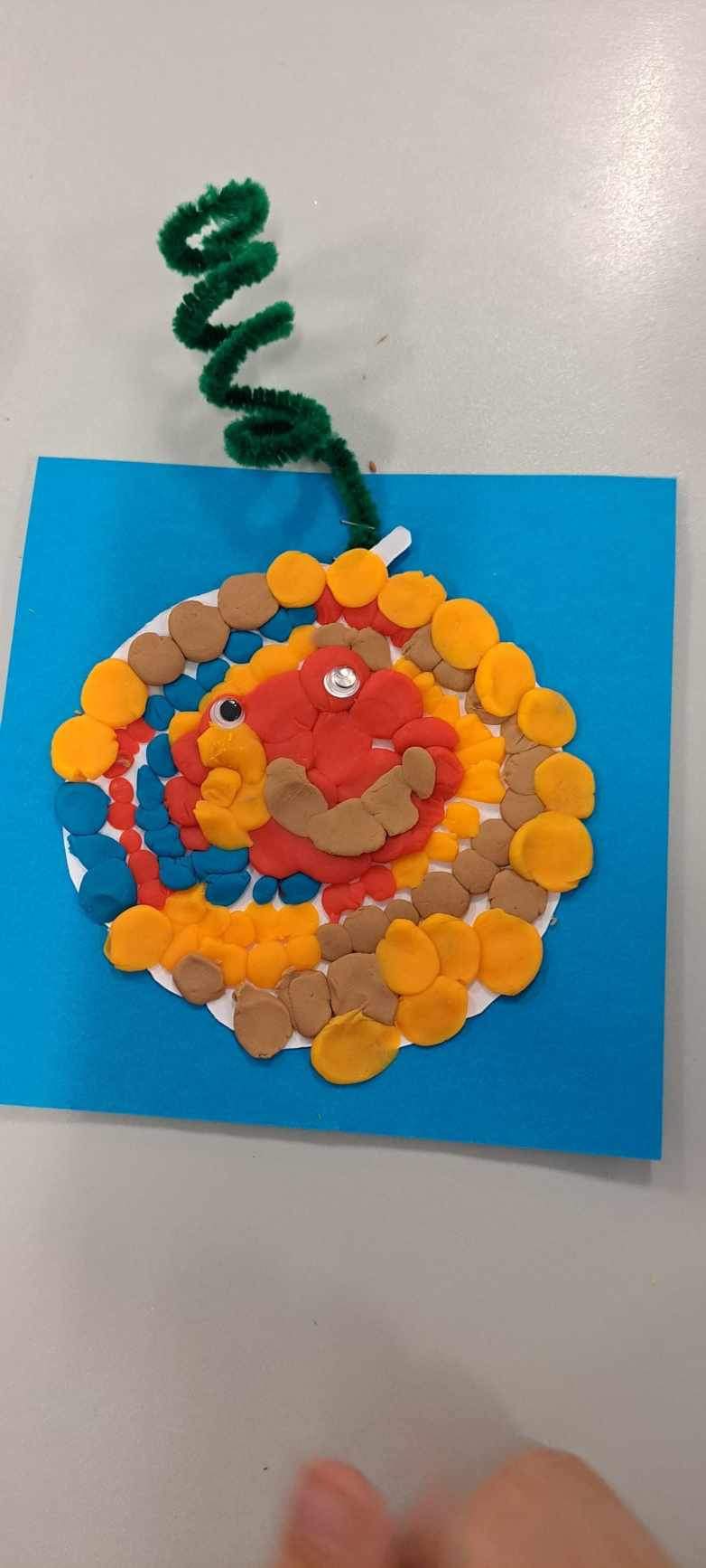 Uczniowie starszej grupy plastycznej- zgodnie z przyjᶒtą nazwą “ubrali” swoje papugi w piᶒkne, barwne, plastelinowe piόrka.