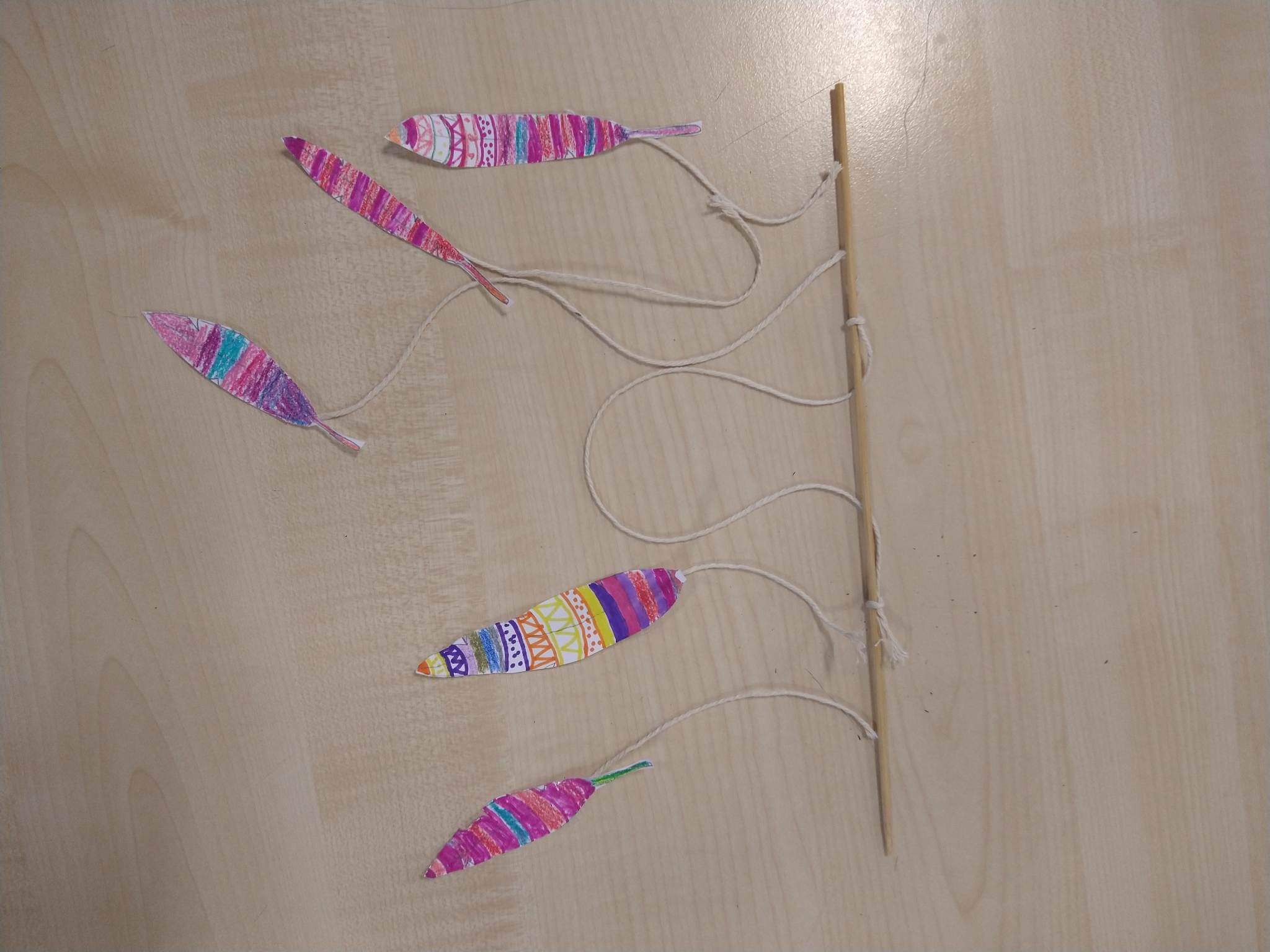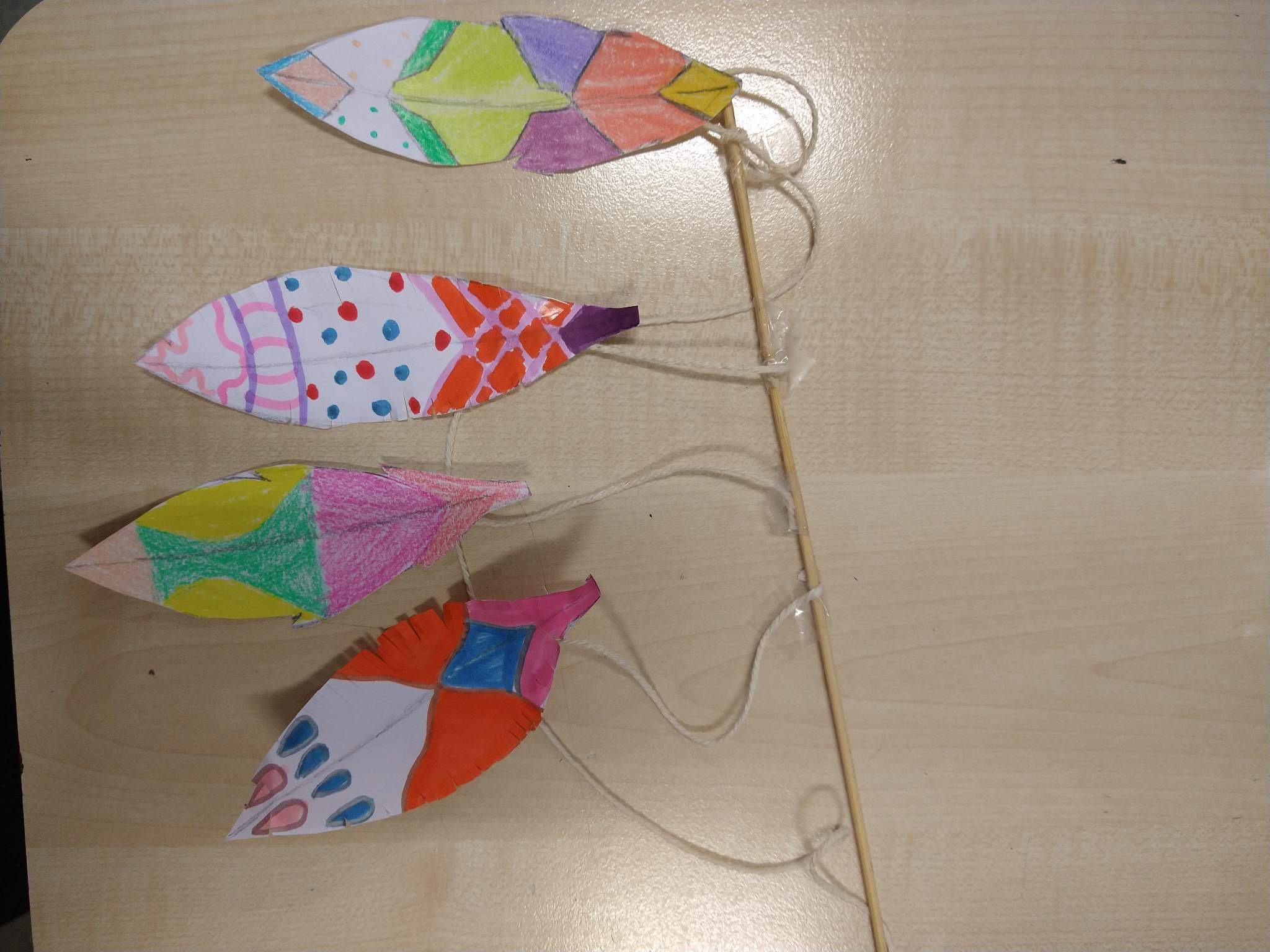 Delikatne, piᶒknie mieniące siᶒ piόrka zostały wykonane przed jesienną przerwą przez najstarszą grupᶒ plastyczną “Kolorowe papugi”.