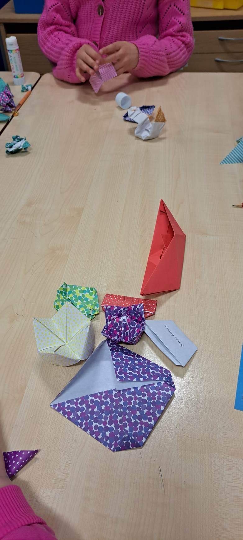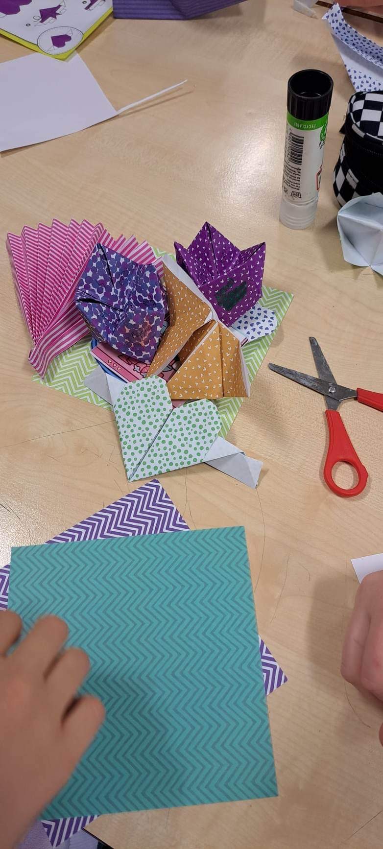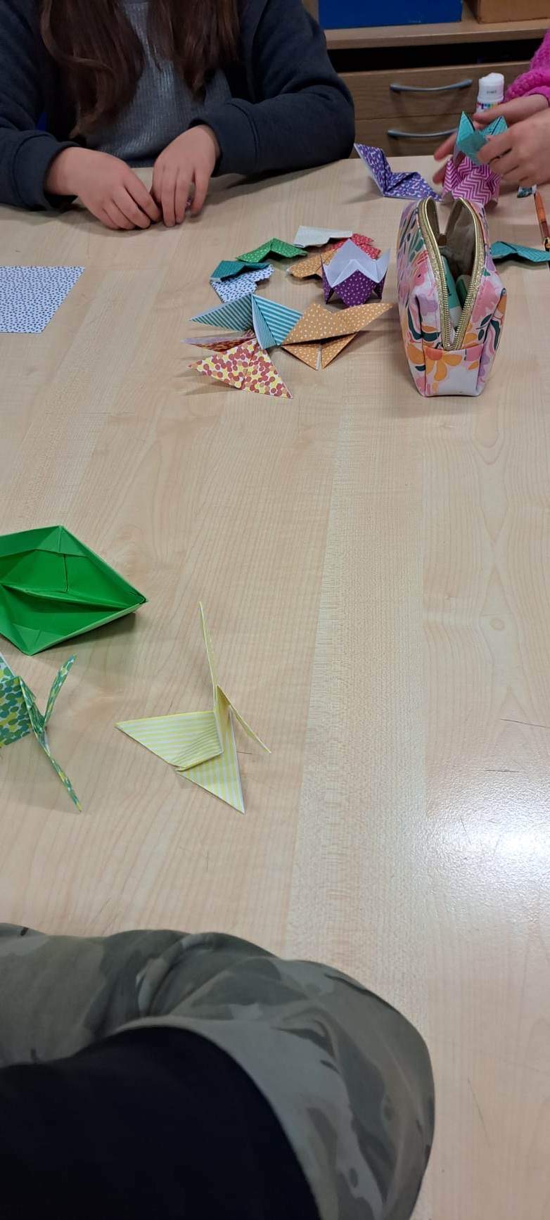 Część uczestników klubu robiła origami (Origami – sztuka składania papieru, pochodząca z Chin, rozwinięta w Japonii i dlatego uważa się ją za tradycyjną sztukę japońską.)