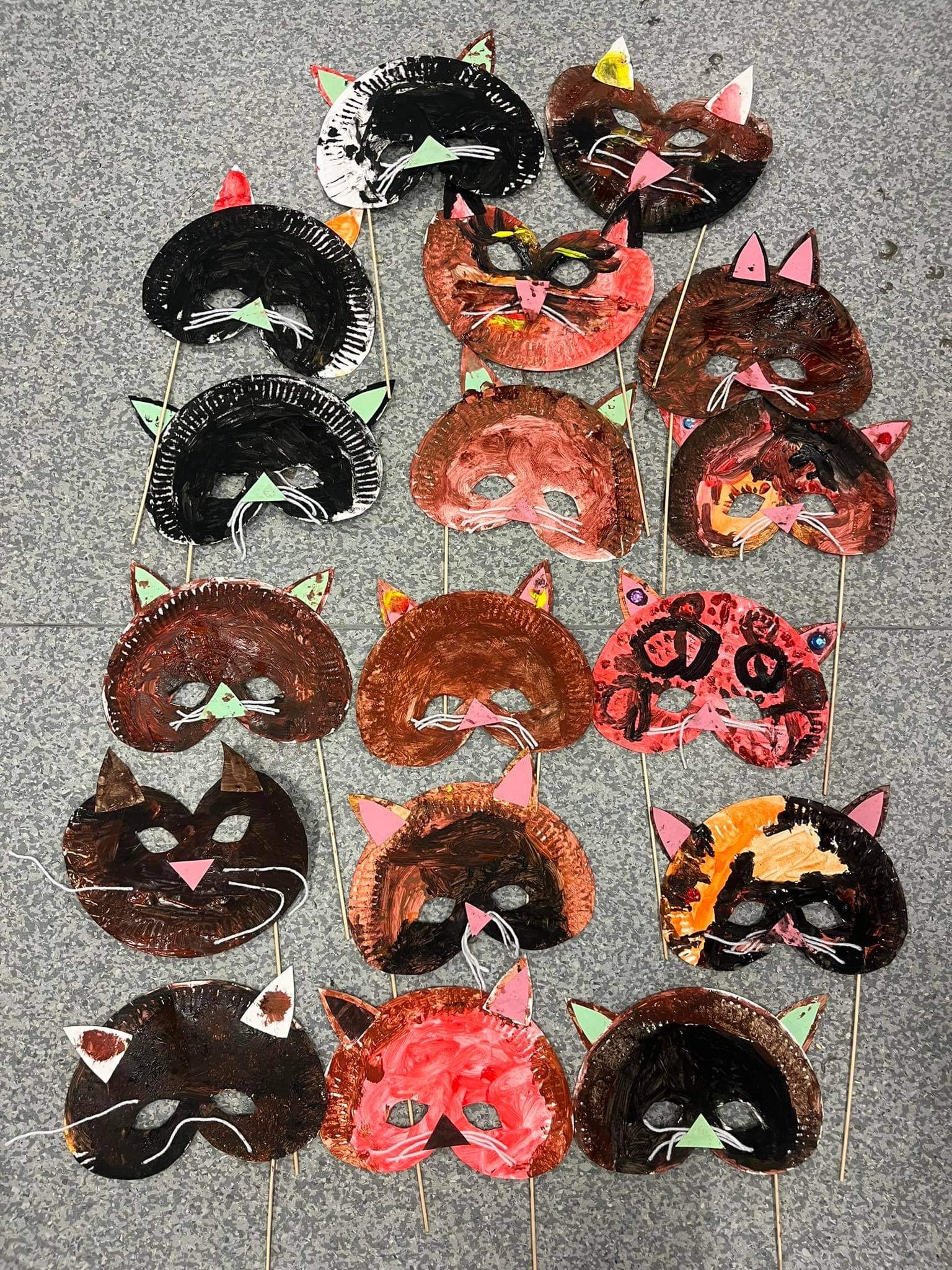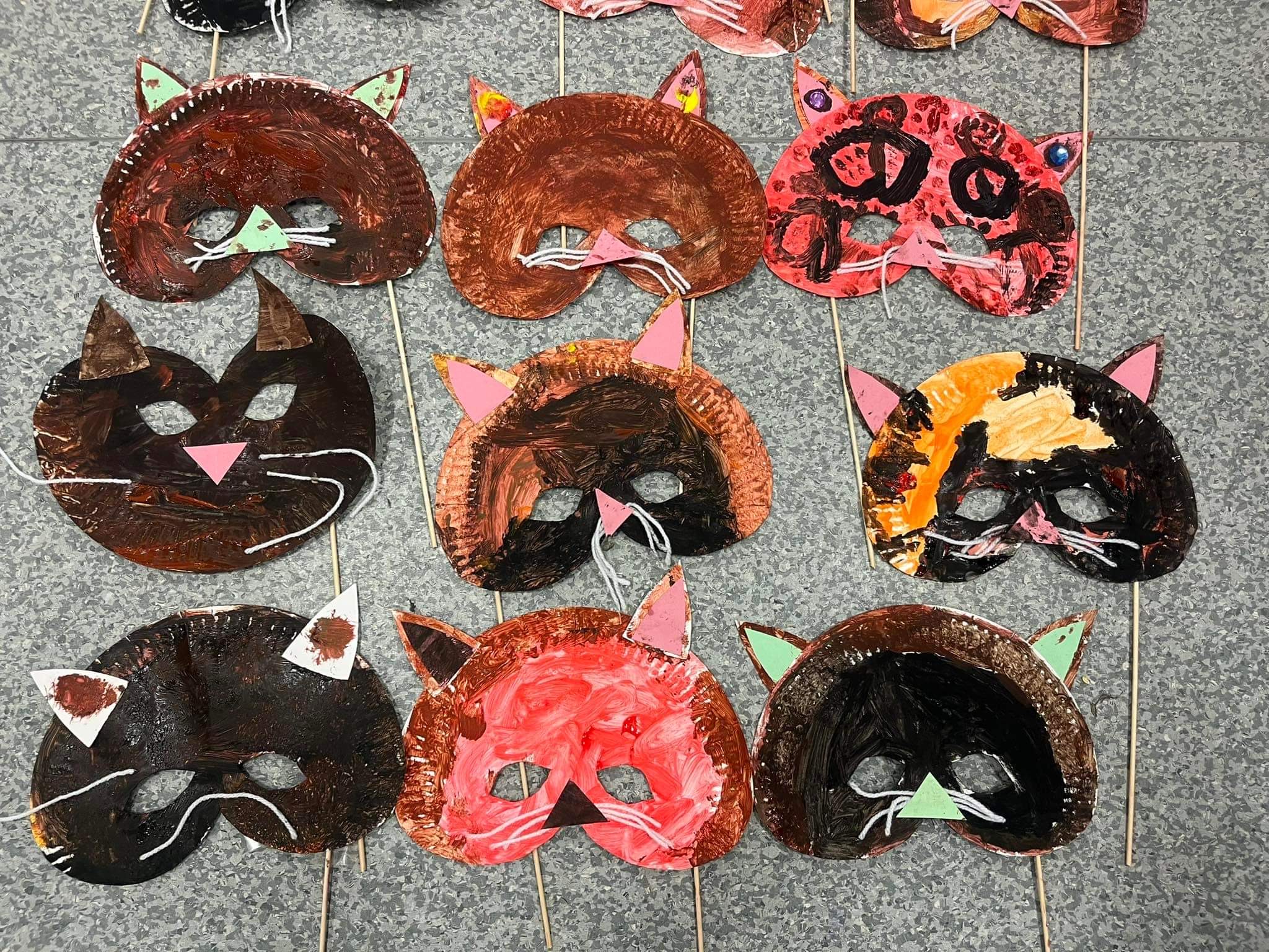 Maski Karnawałowe wykonane przez dzieci z najmłodszej grupy plastycznej
