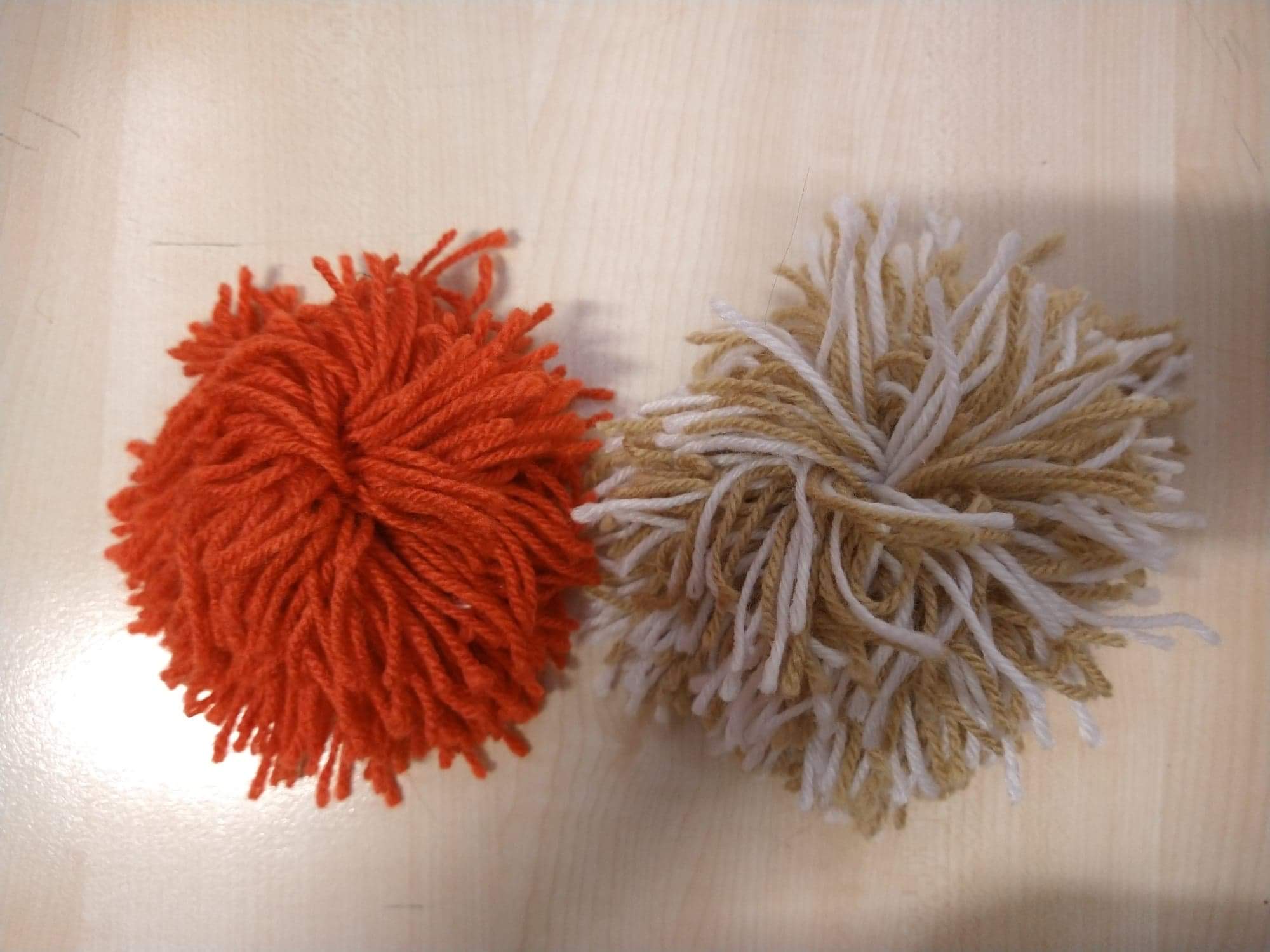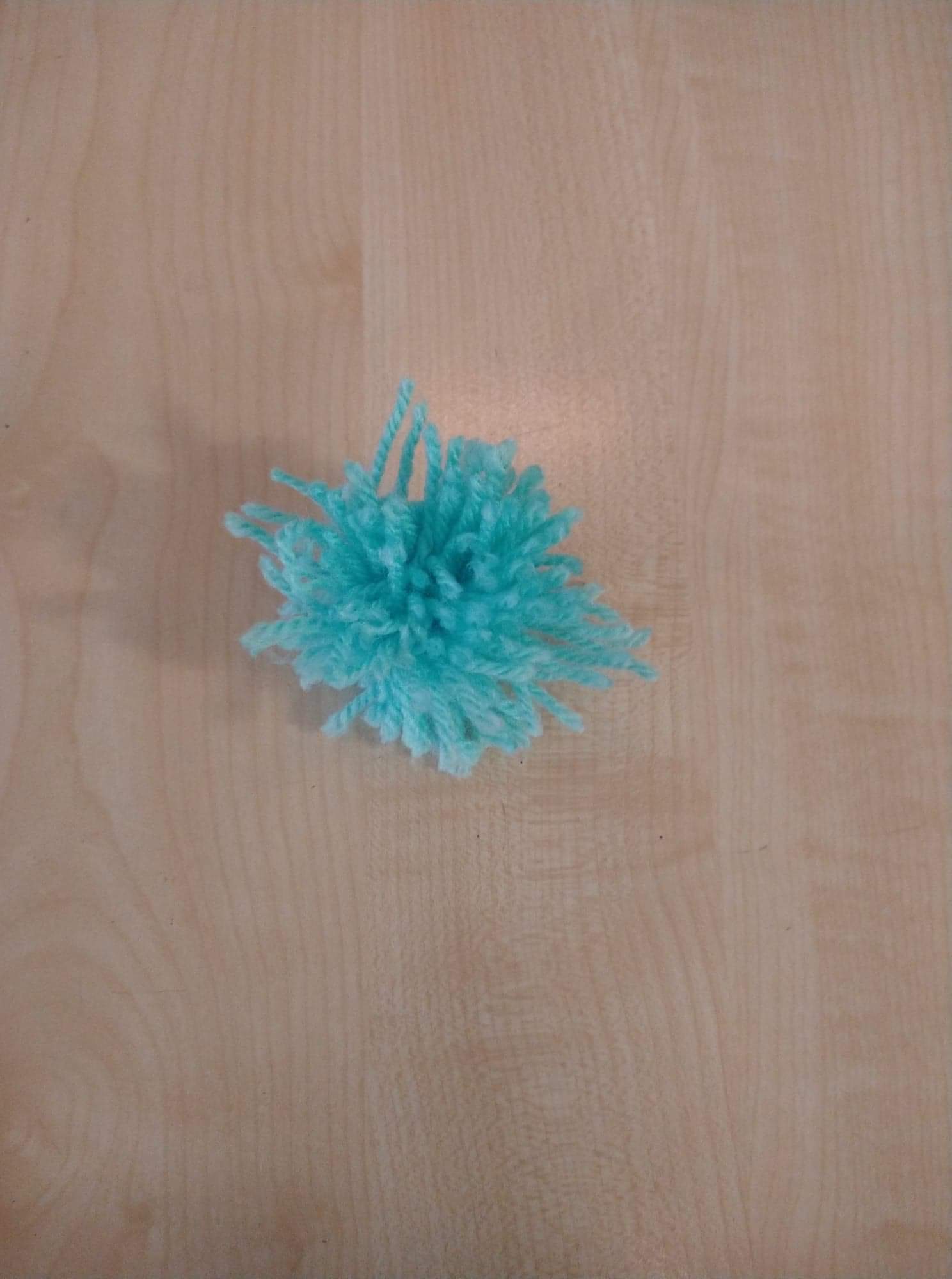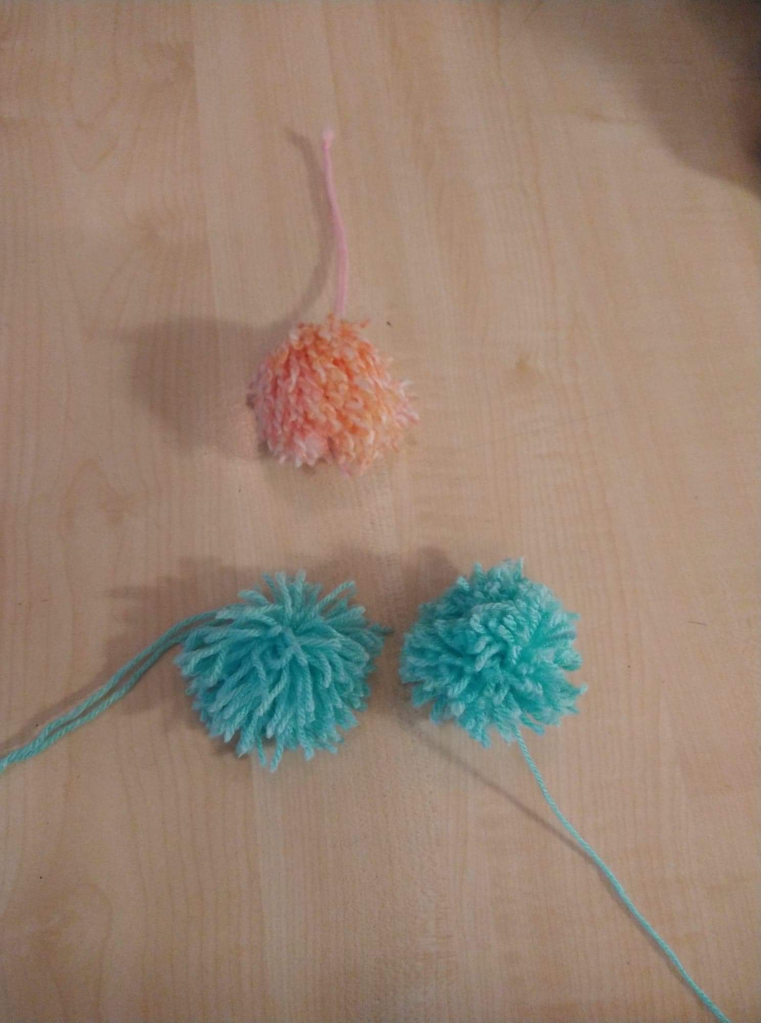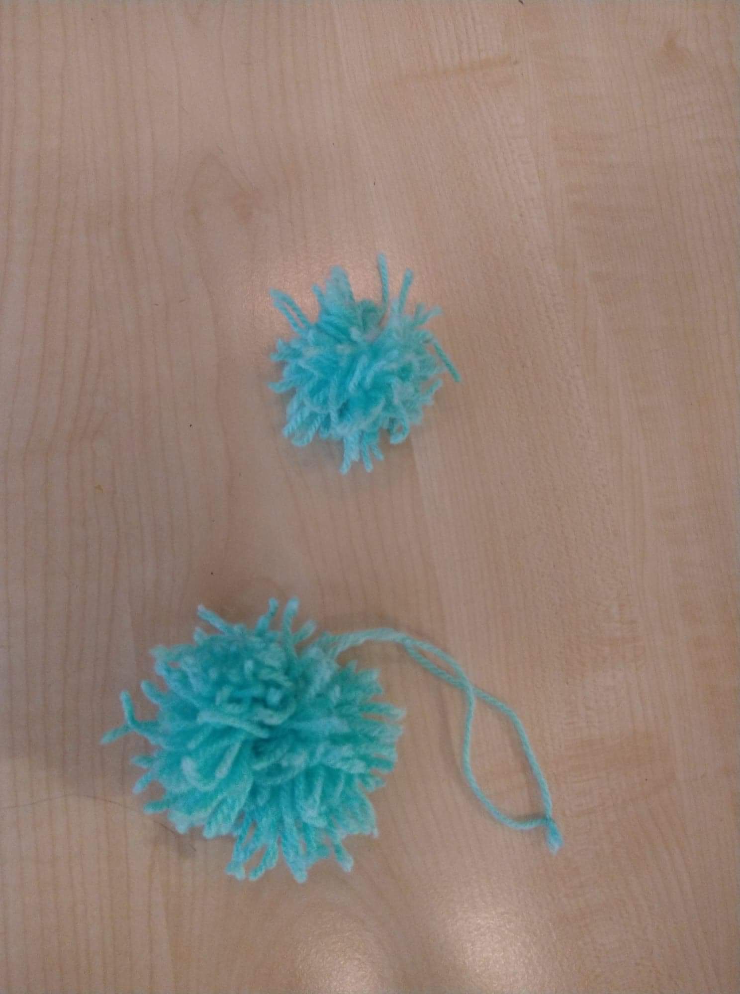 W styczniu na zajęciach grupy „Złote ołówki” pompony wykorzystując włóczkę.