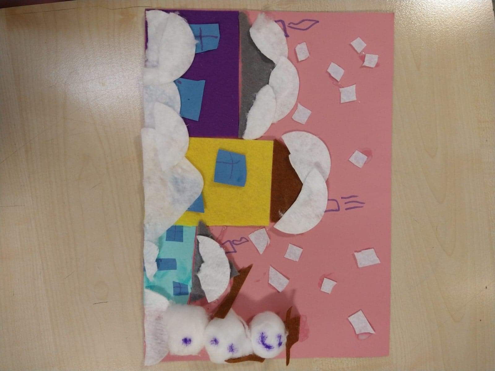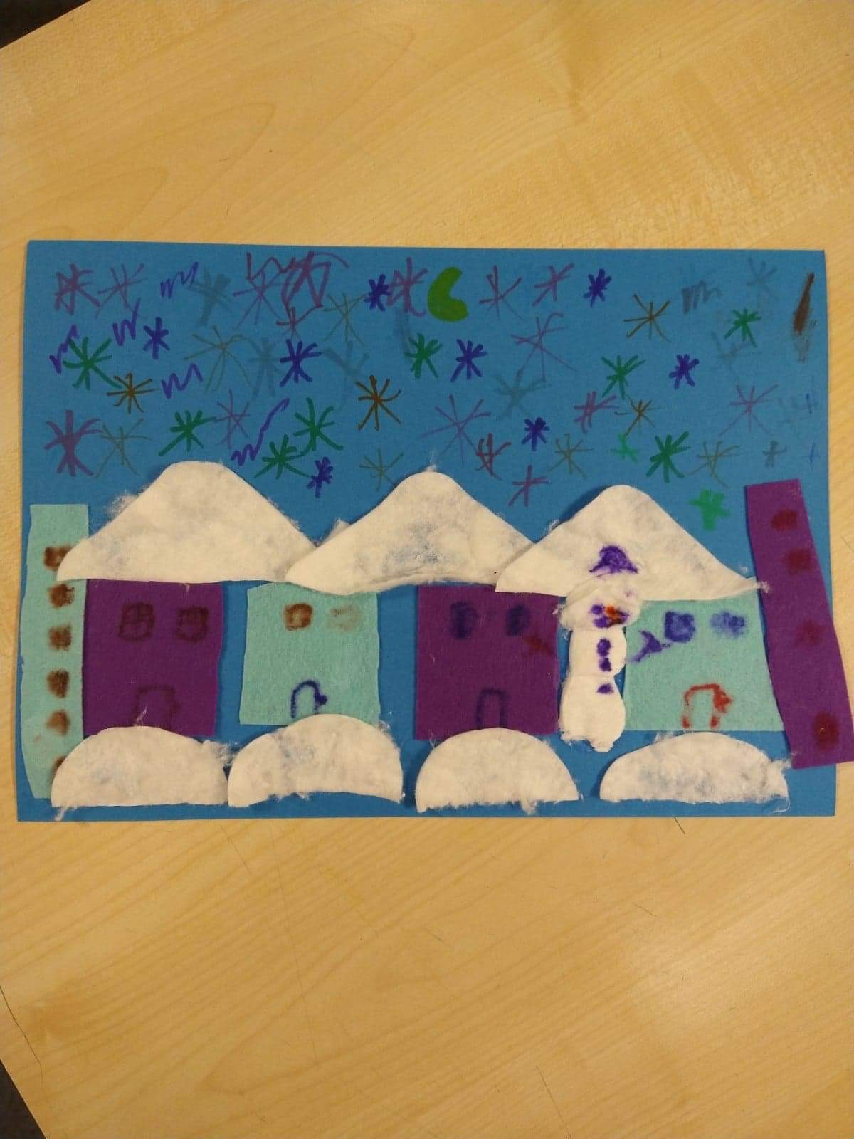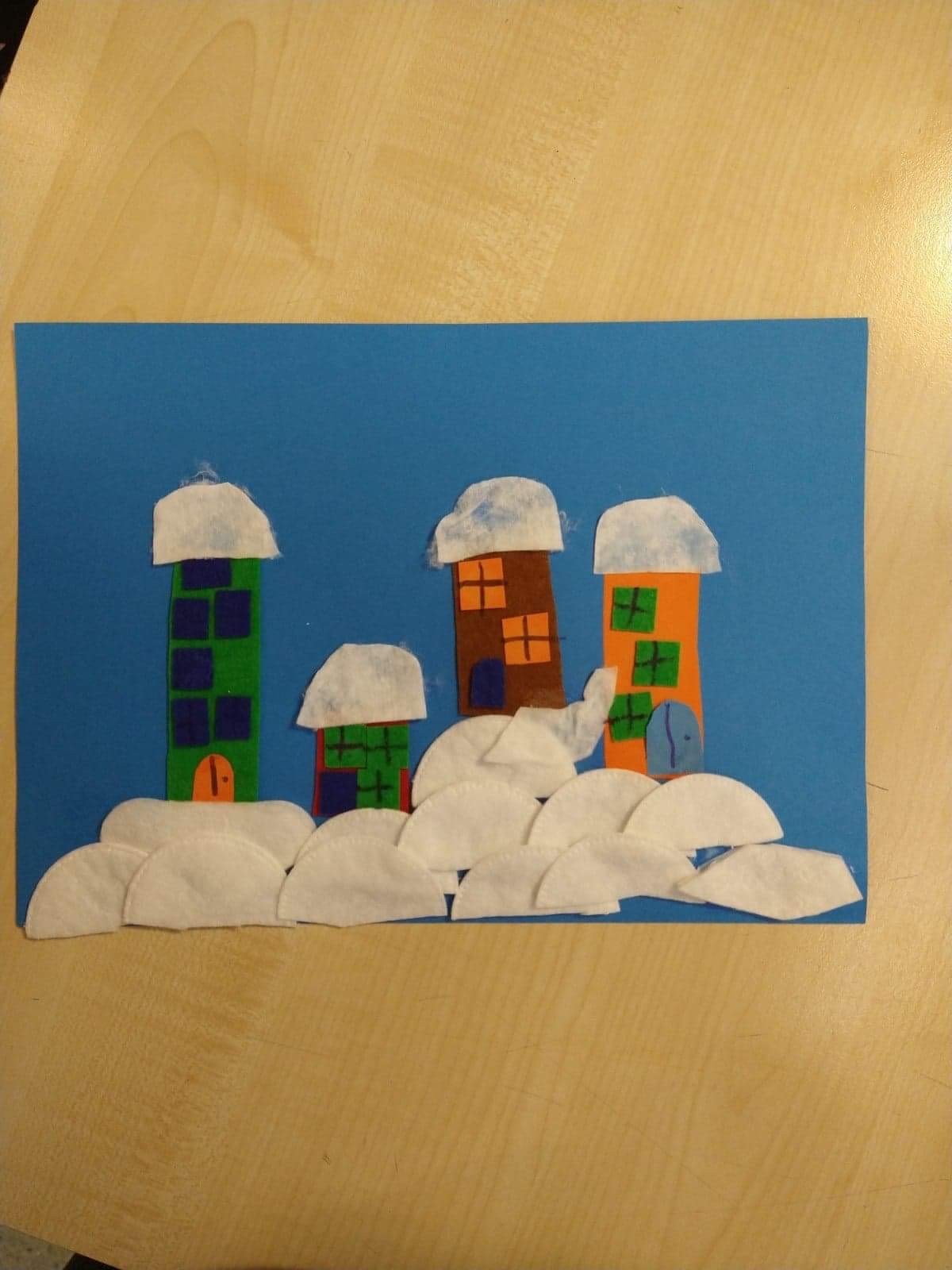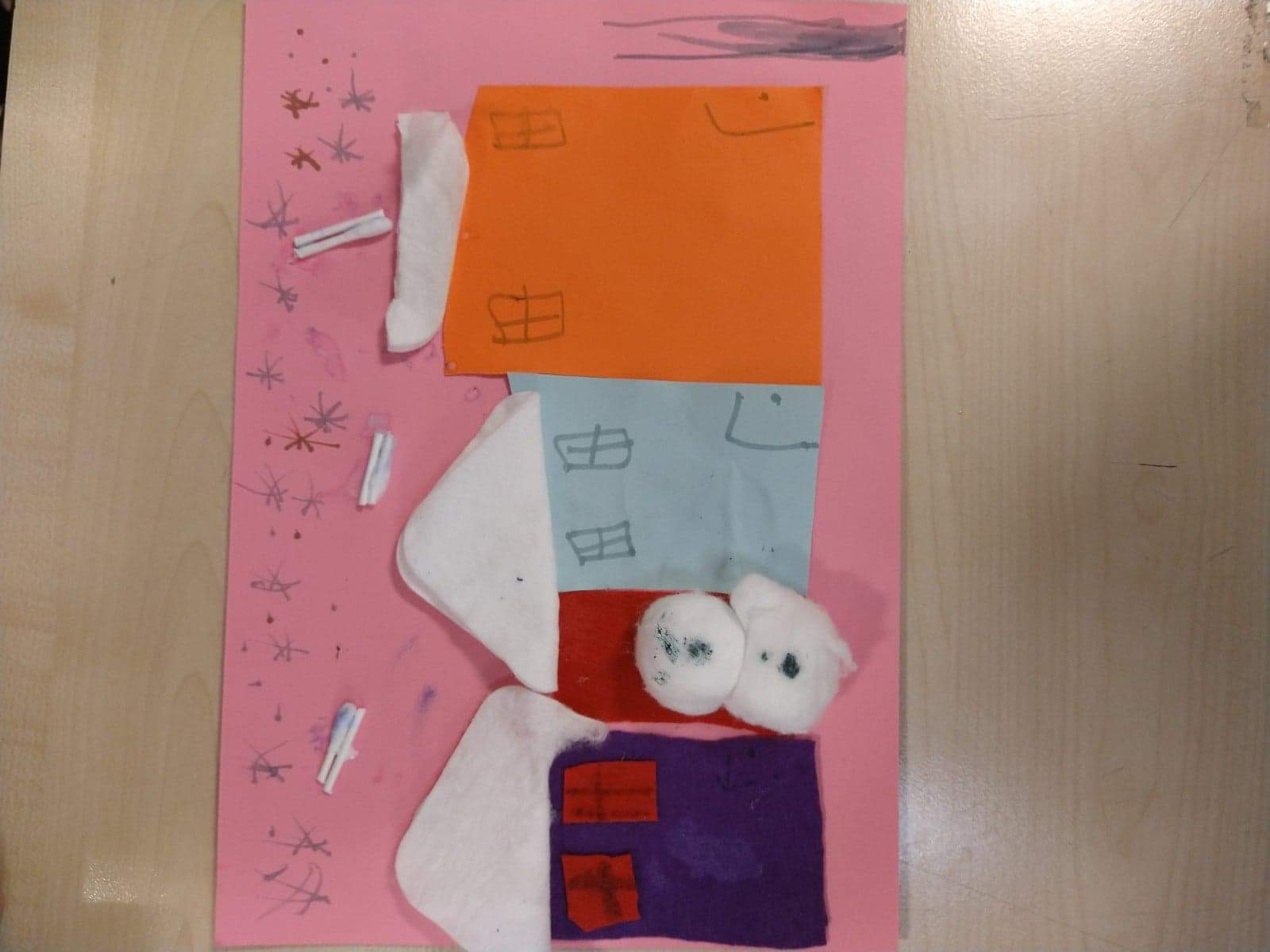 Grupa „Złote Ołówki” w styczniu wykonała piękne prace zimowe domki korzystając z papieru kolorowego filcu, waty i płatków kosmetycznych.