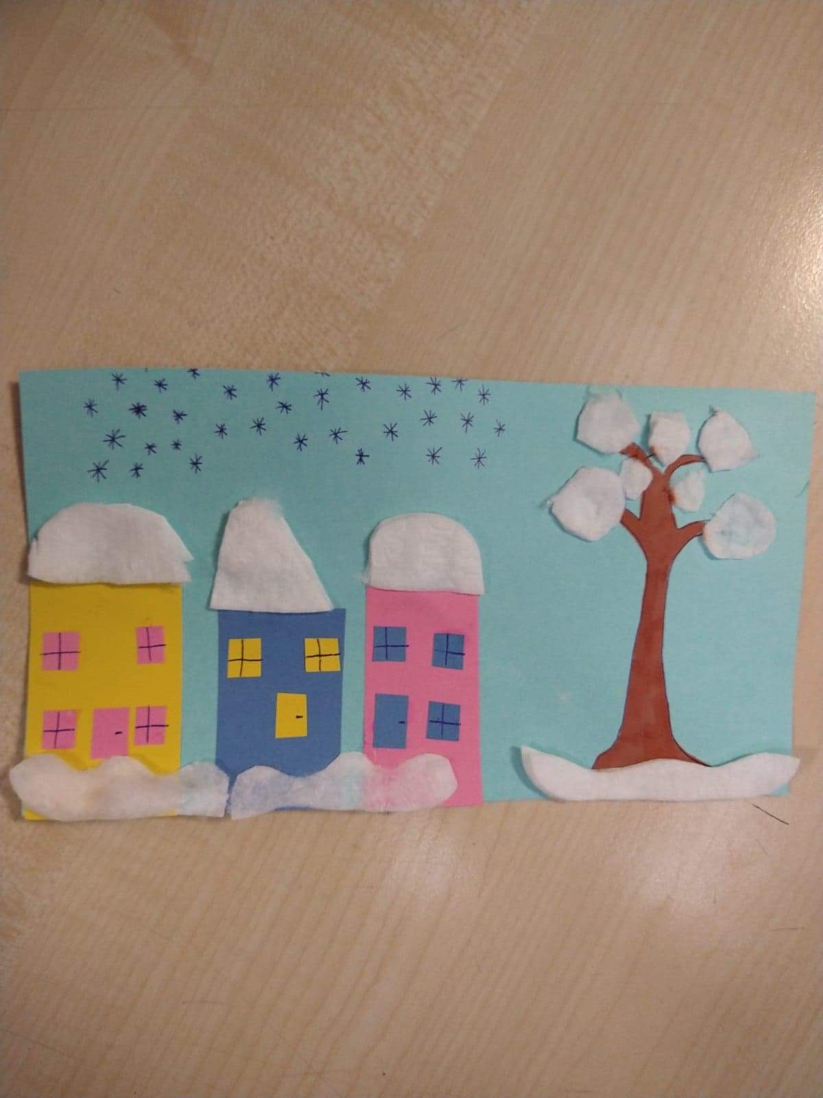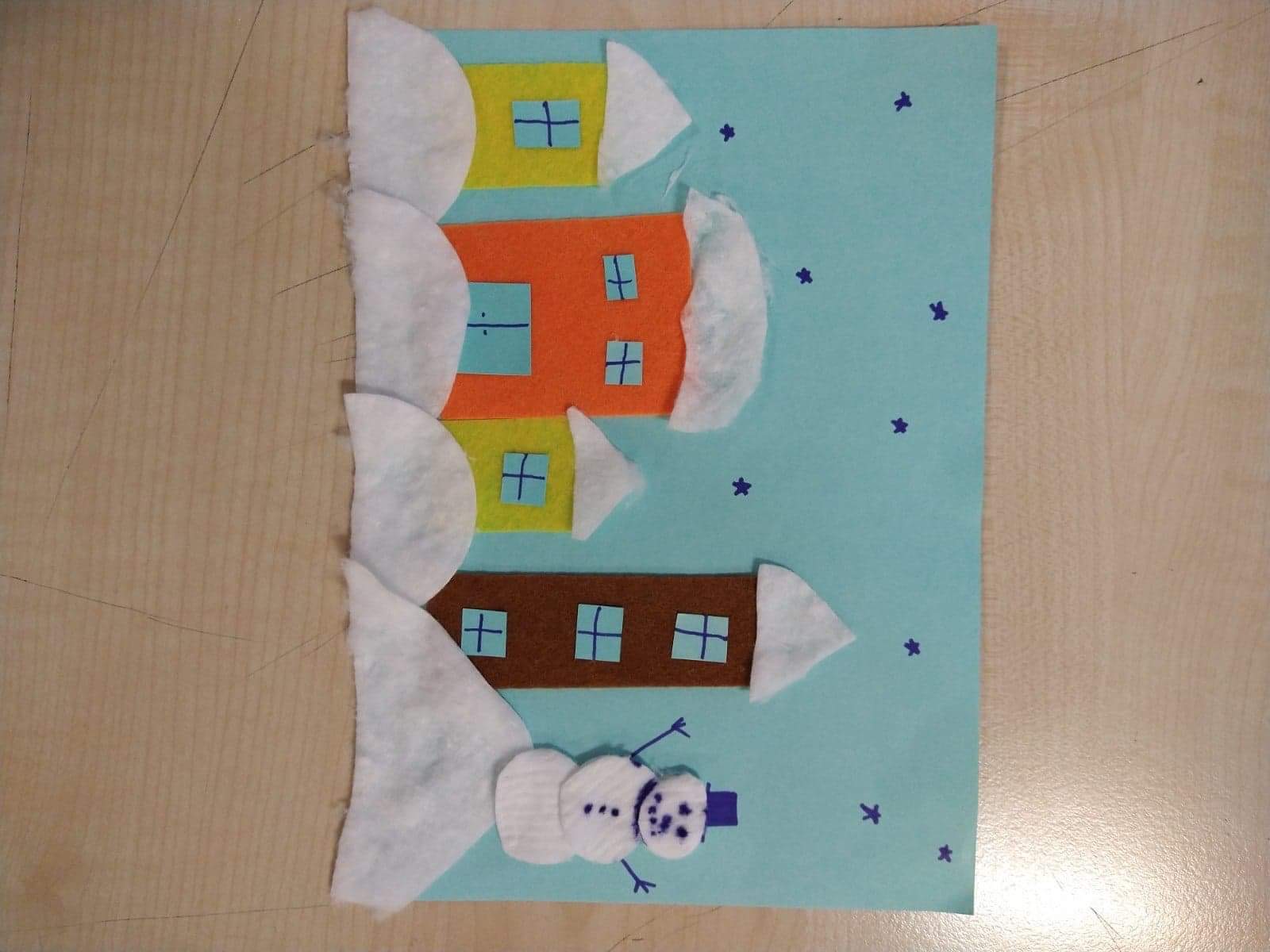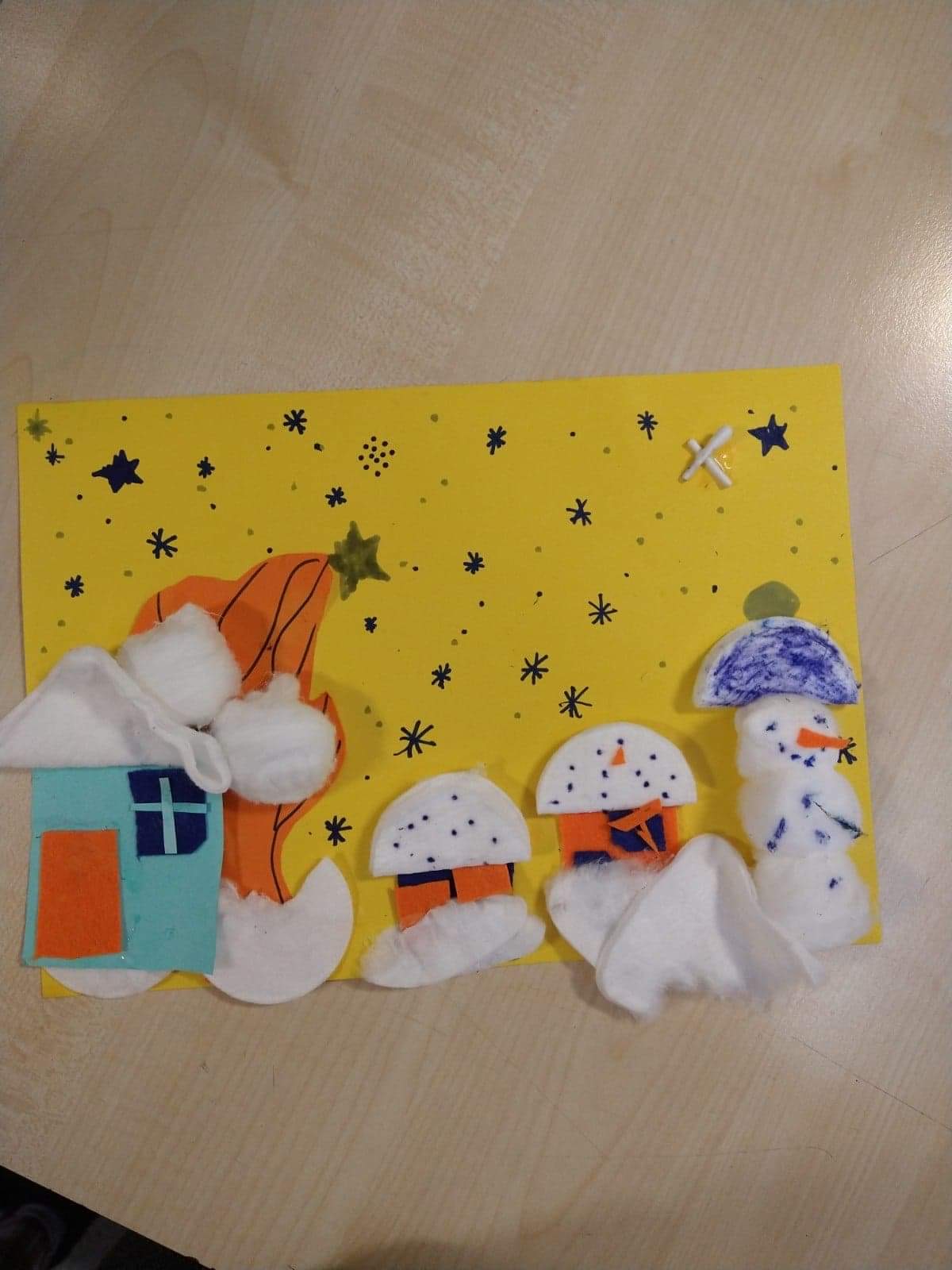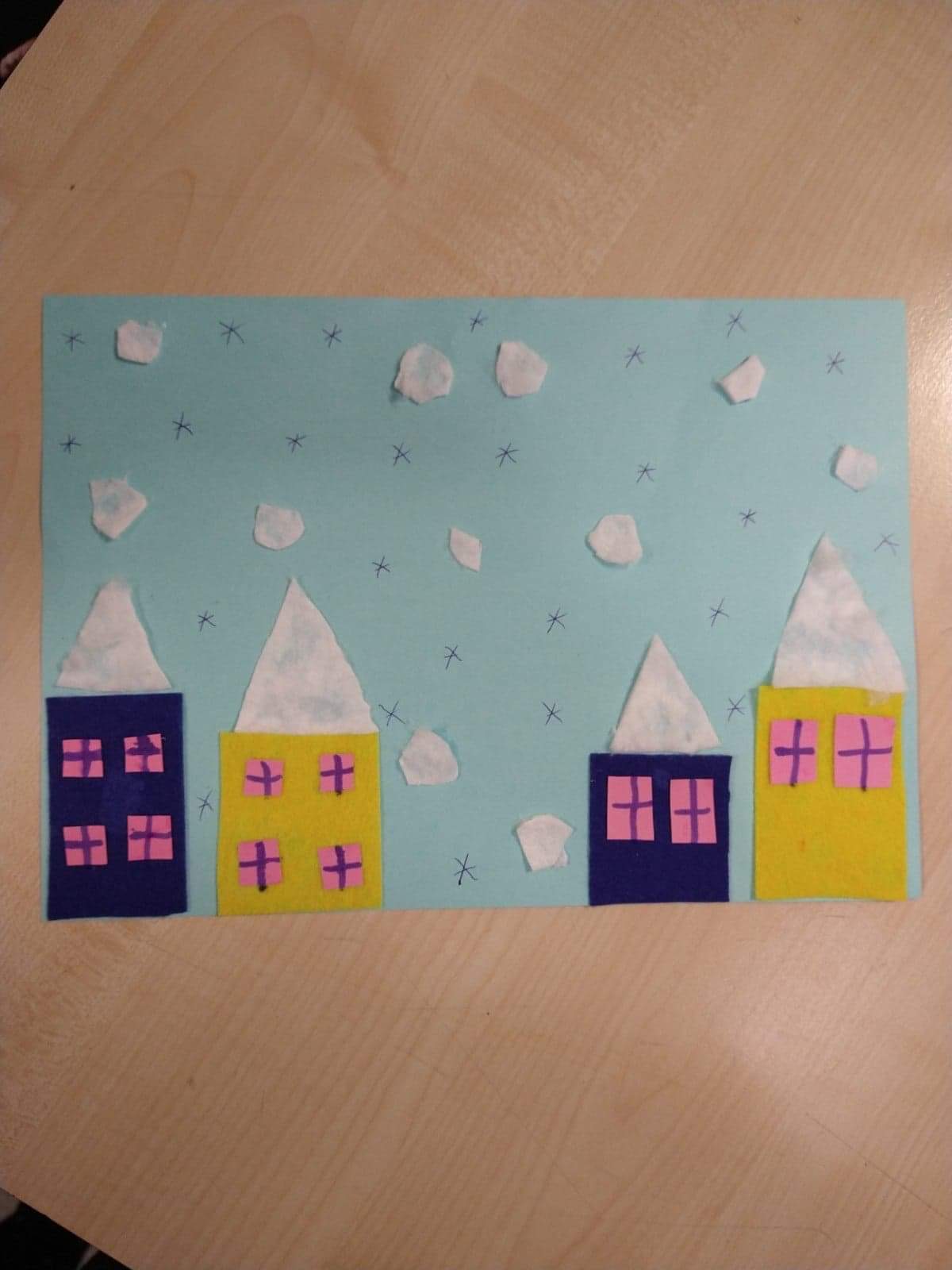 Grupa „Złote Ołówki” w styczniu wykonała piękne prace zimowe domki korzystając z papieru kolorowego filcu, waty i płatków kosmetycznych.