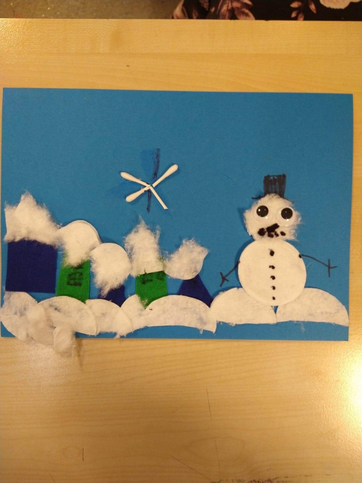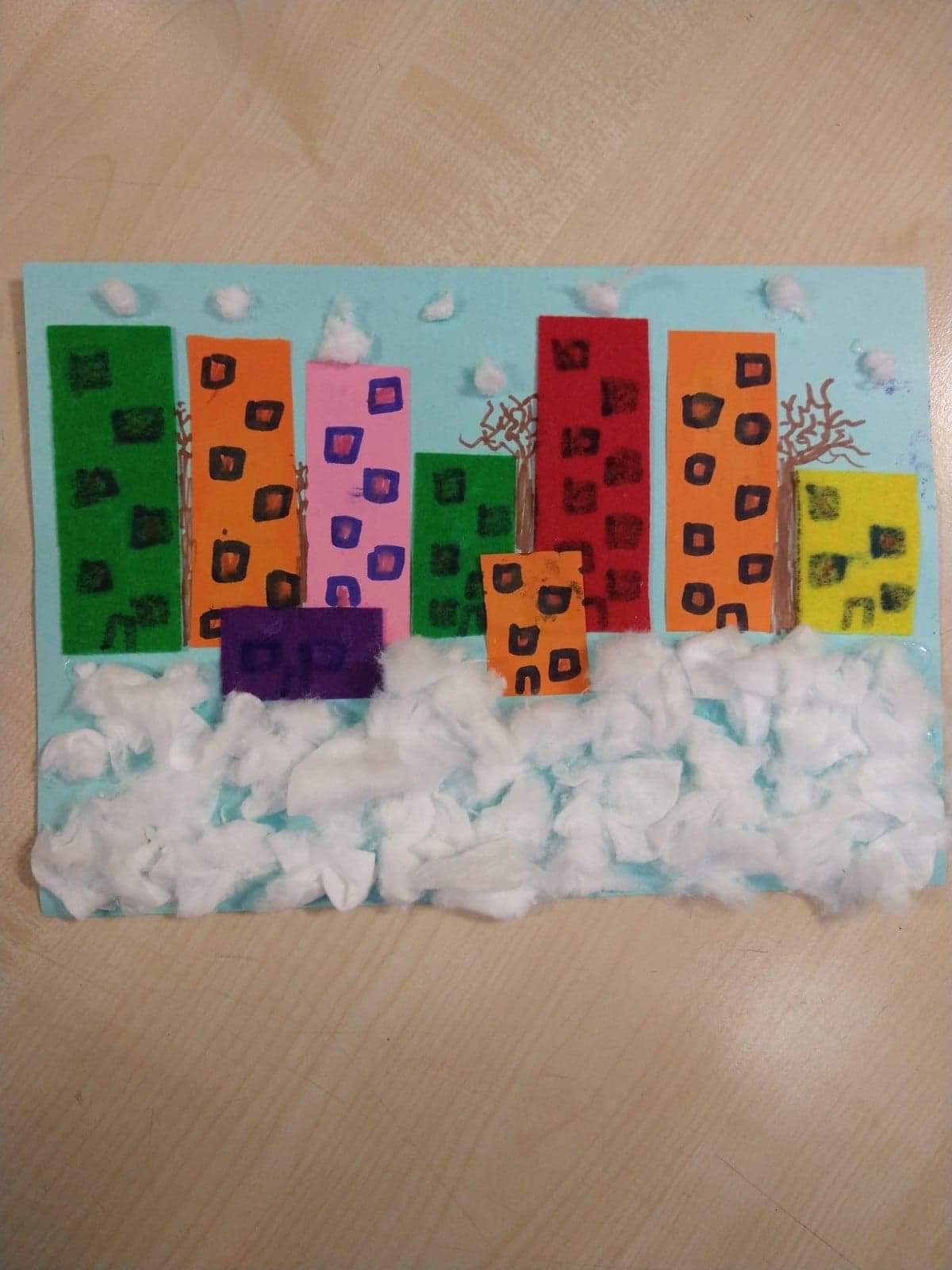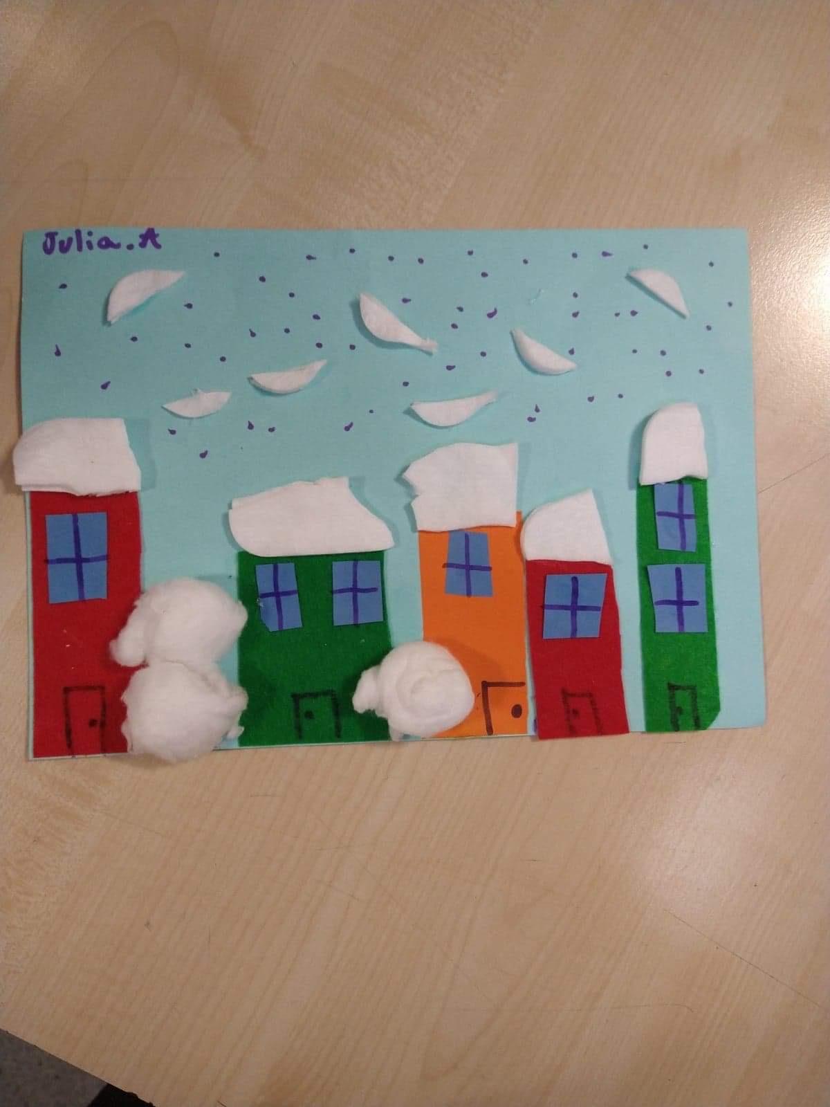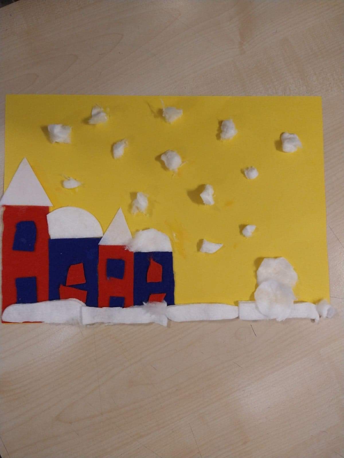 Grupa „Złote Ołówki” w styczniu wykonała piękne prace zimowe domki korzystając z papieru kolorowego filcu, waty i płatków kosmetycznych.