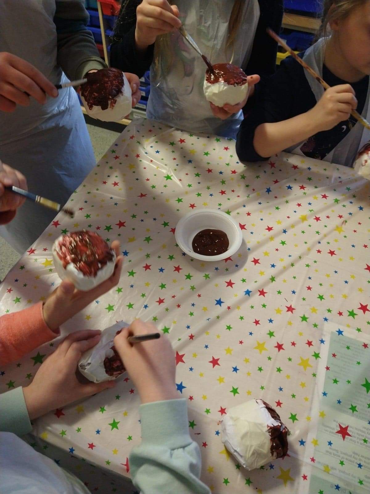 Tłusty Czwartek zawitał w grupie ” Złote ołówki”. Uczniowie wykonali apetyczne pączki wykorzystując papier, taśmę malarska, cukier I farbe🍩🍩🍩🙂