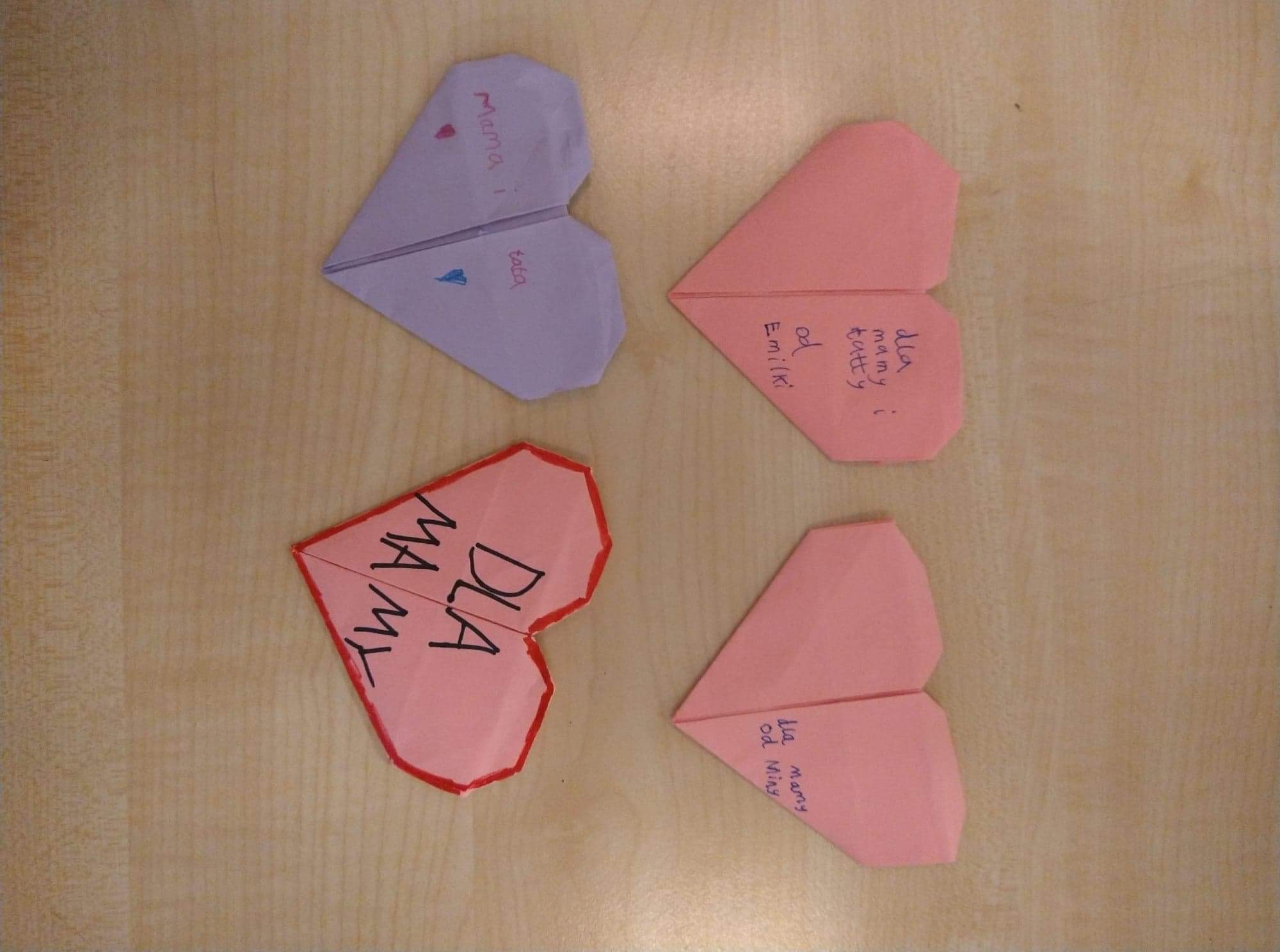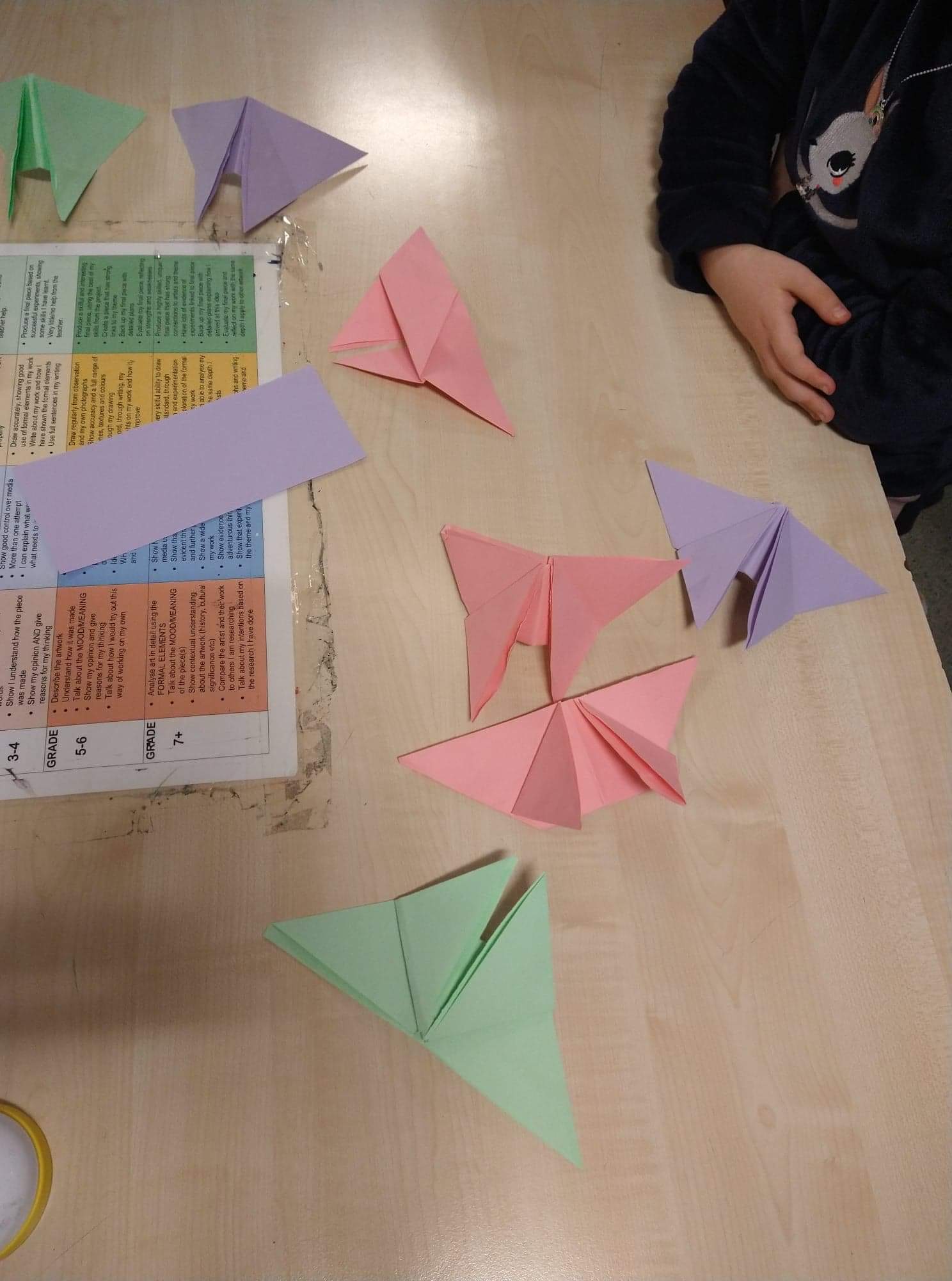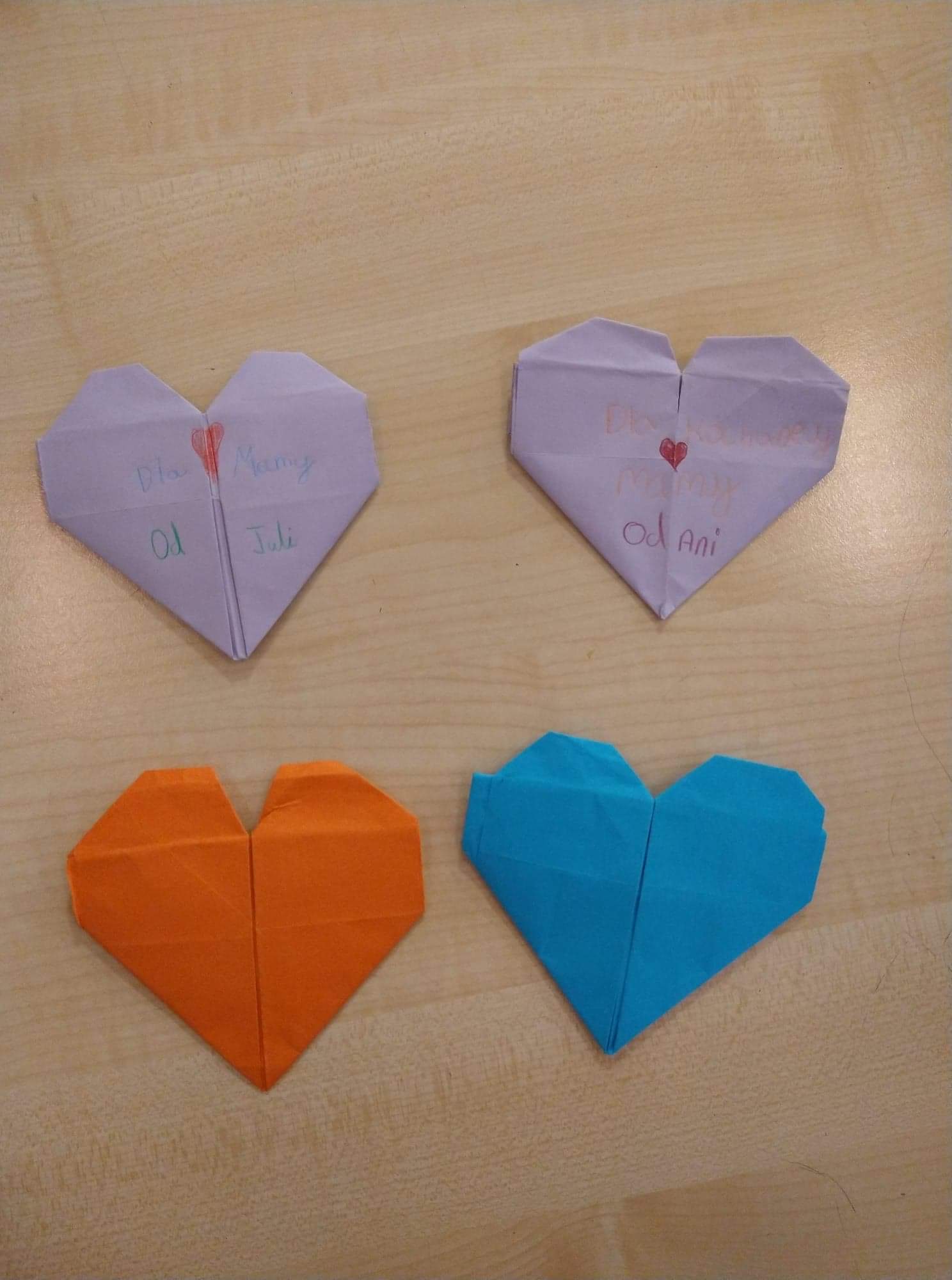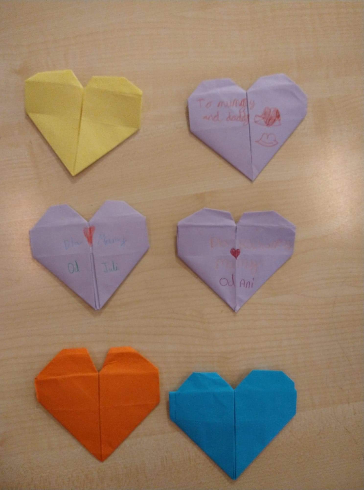 Grupa „Złote Ołówki” z okazji Walentynek wykonała serduszka i motylki metoda origami.
