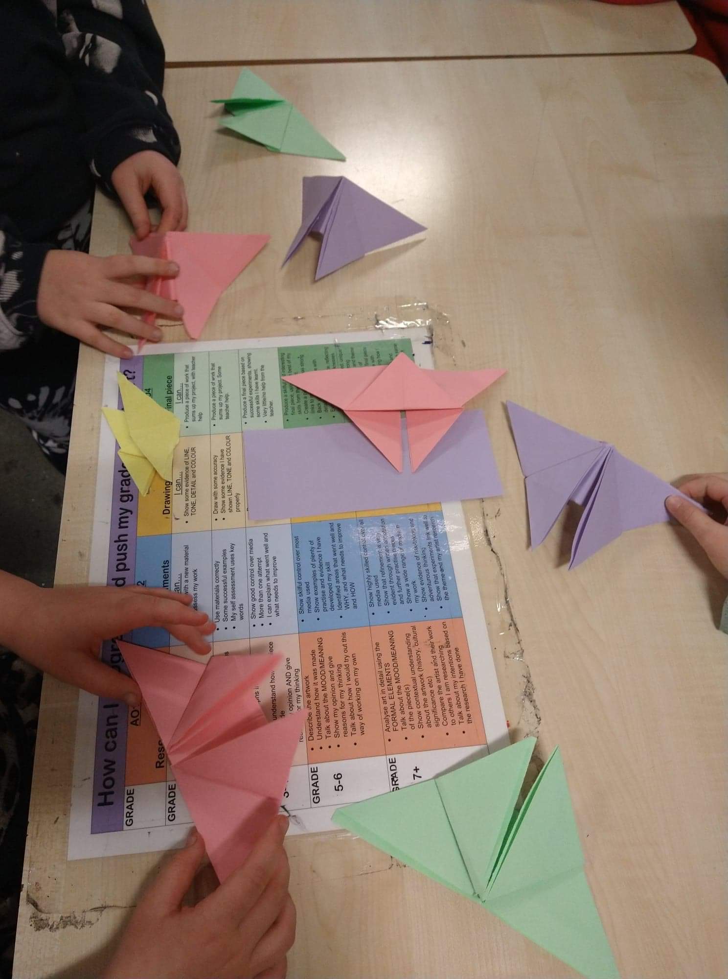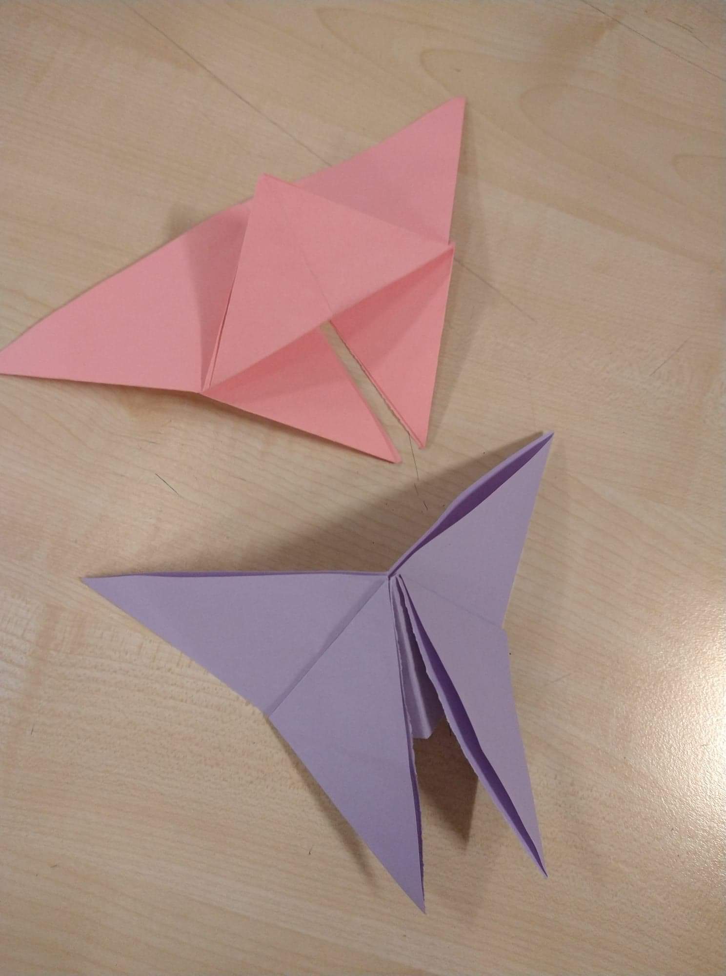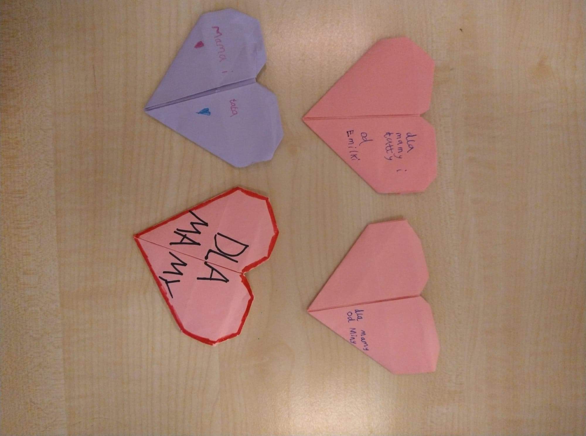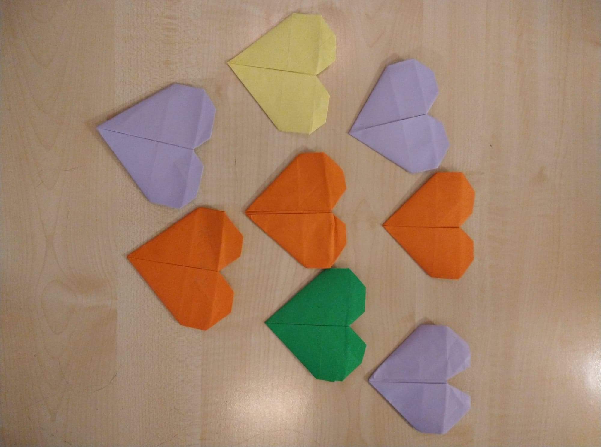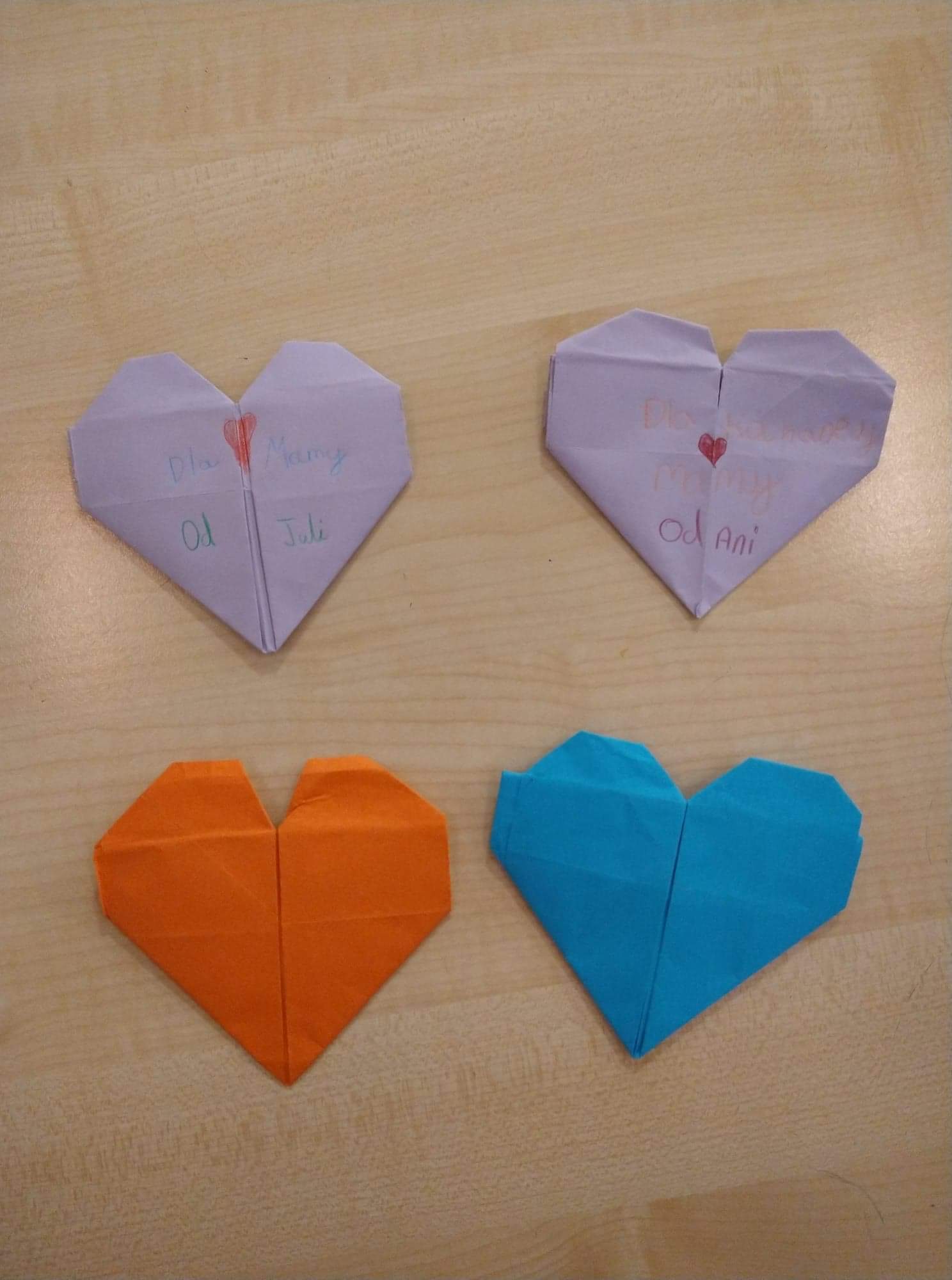 Grupa „Złote Ołówki” z okazji Walentynek wykonała serduszka i motylki metoda origami.
