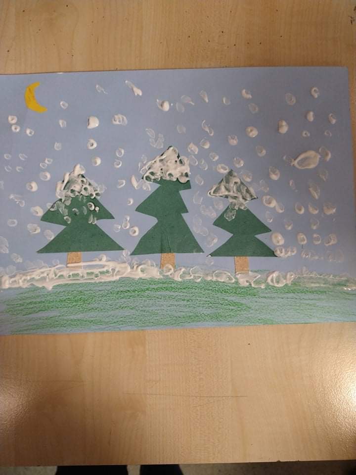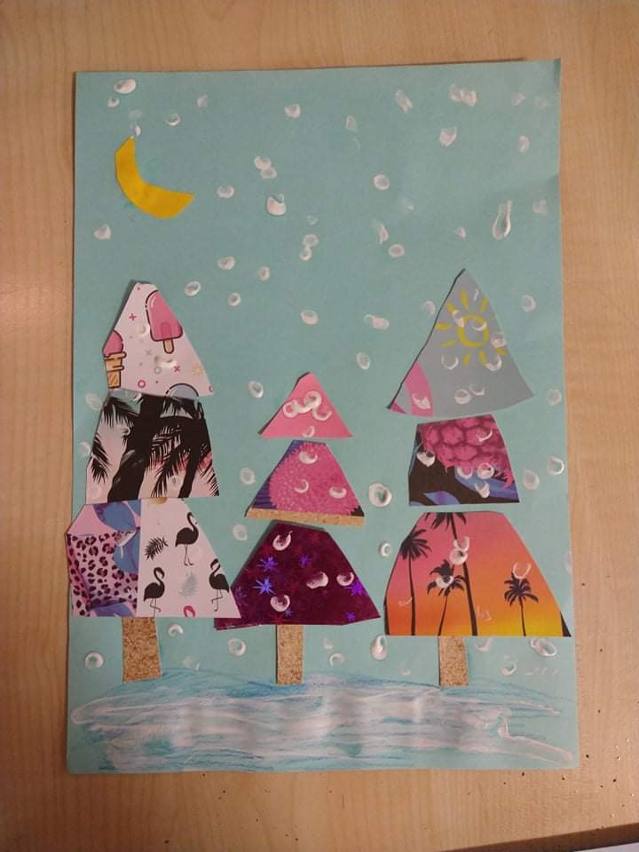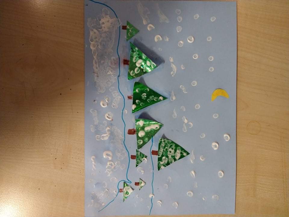 ” Złote olowki” wywoluja zime. Zimowy kolaż.