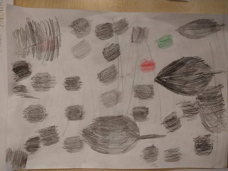 ” Złote ołówki” Frotaz- technika rysunkowa, polegająca na pocieraniu grafitem kartki papieru położonej na fakturze powierzchni różnych materiałów, w celu uzyskania dokładnego odwzorowania ich struktury w naszym przypadku lisci i monet🍁🍂🍀💰