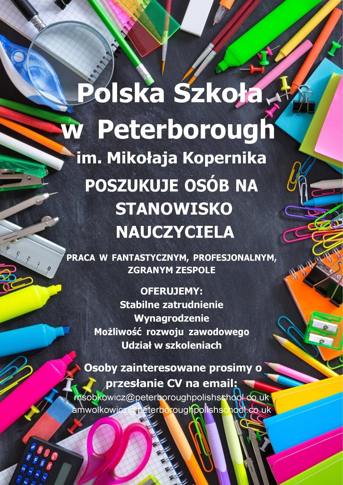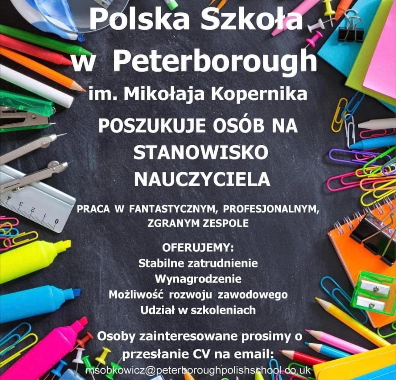 ‼️‼️‼️Osoby zainteresowane prosimy o przesłanie CV na adres e-mail: msobkowicz@peterboroughpolishschool.co.uk‼️‼️