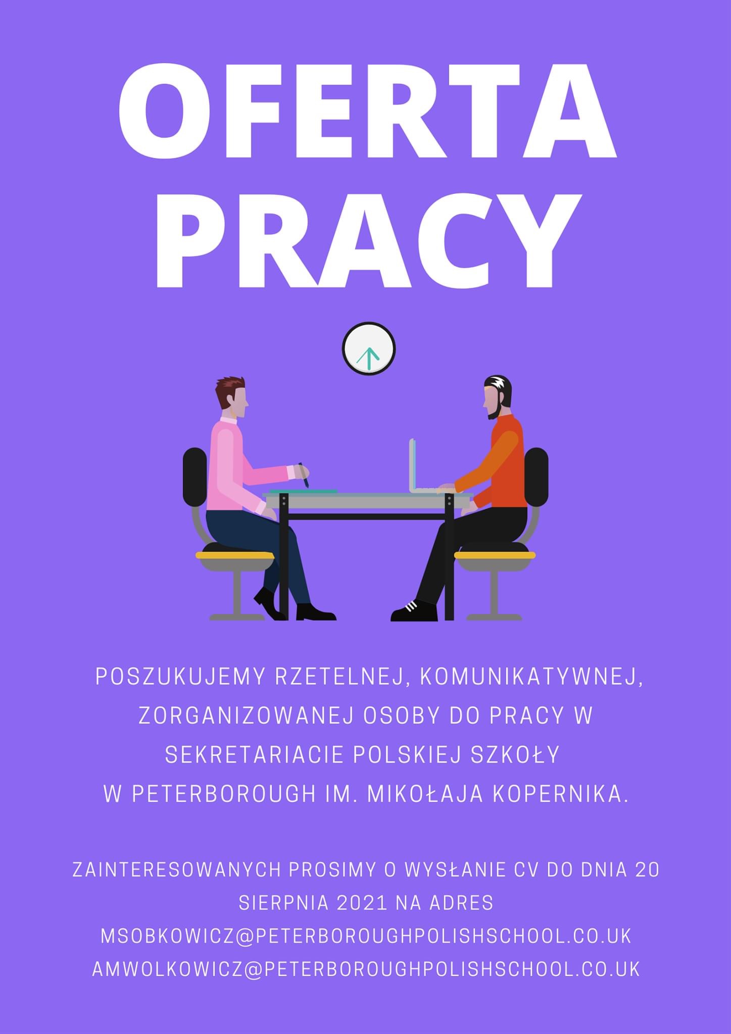 Zainteresowanych prosimy o wysłanie CV do dnia 20 sierpnia 2021 na adres: msobkowicz@peterboroughpolishschool.co.uk amwolkowicz@peterboroughpolishschool.co.uk
