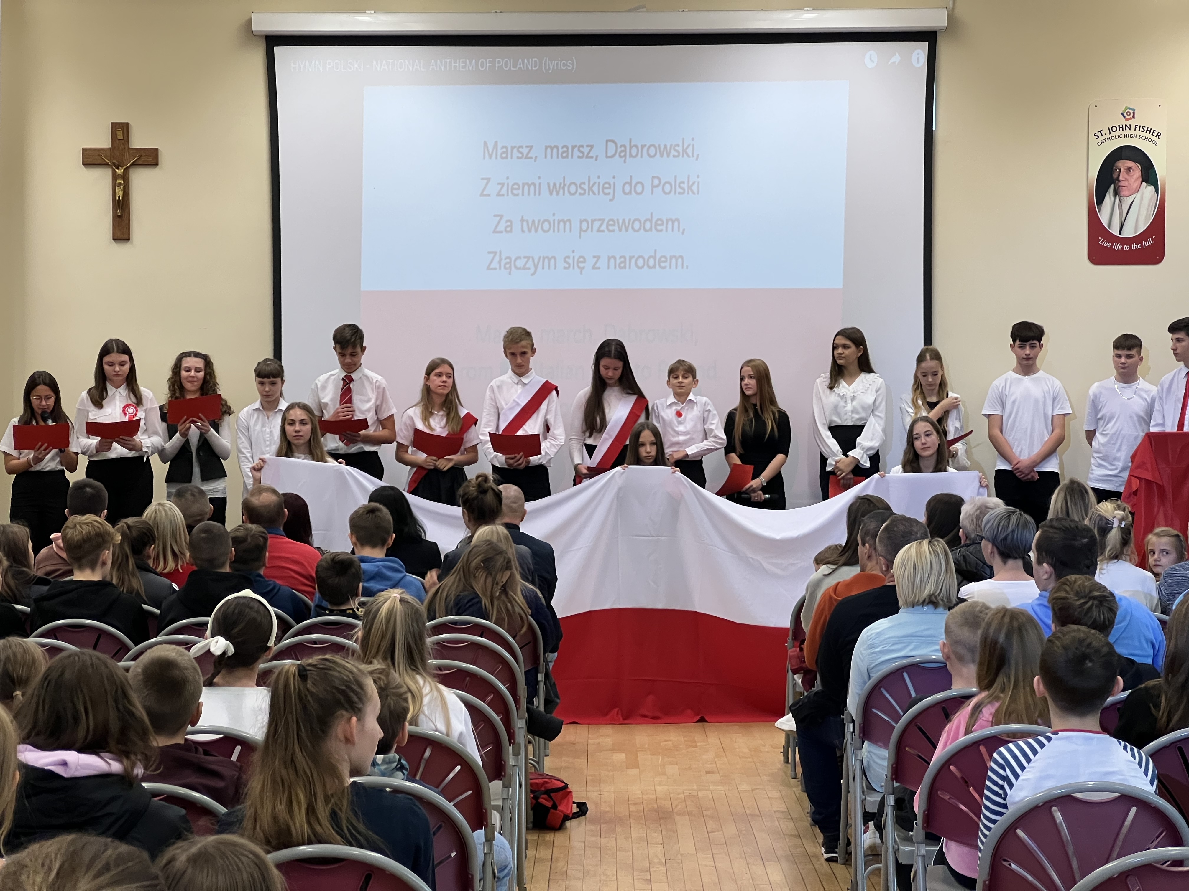 Dziś, 12 listopada 2022, uczniowie klas 9 i 10 pod opieką pani Kasi Niemkiewicz-Borowicz, pani Iwony Drummond oraz pani Bernardetty Chmielewskiej przygotowali wspaniały apel z okazji rocznicy Odzyskania Niepodległości.