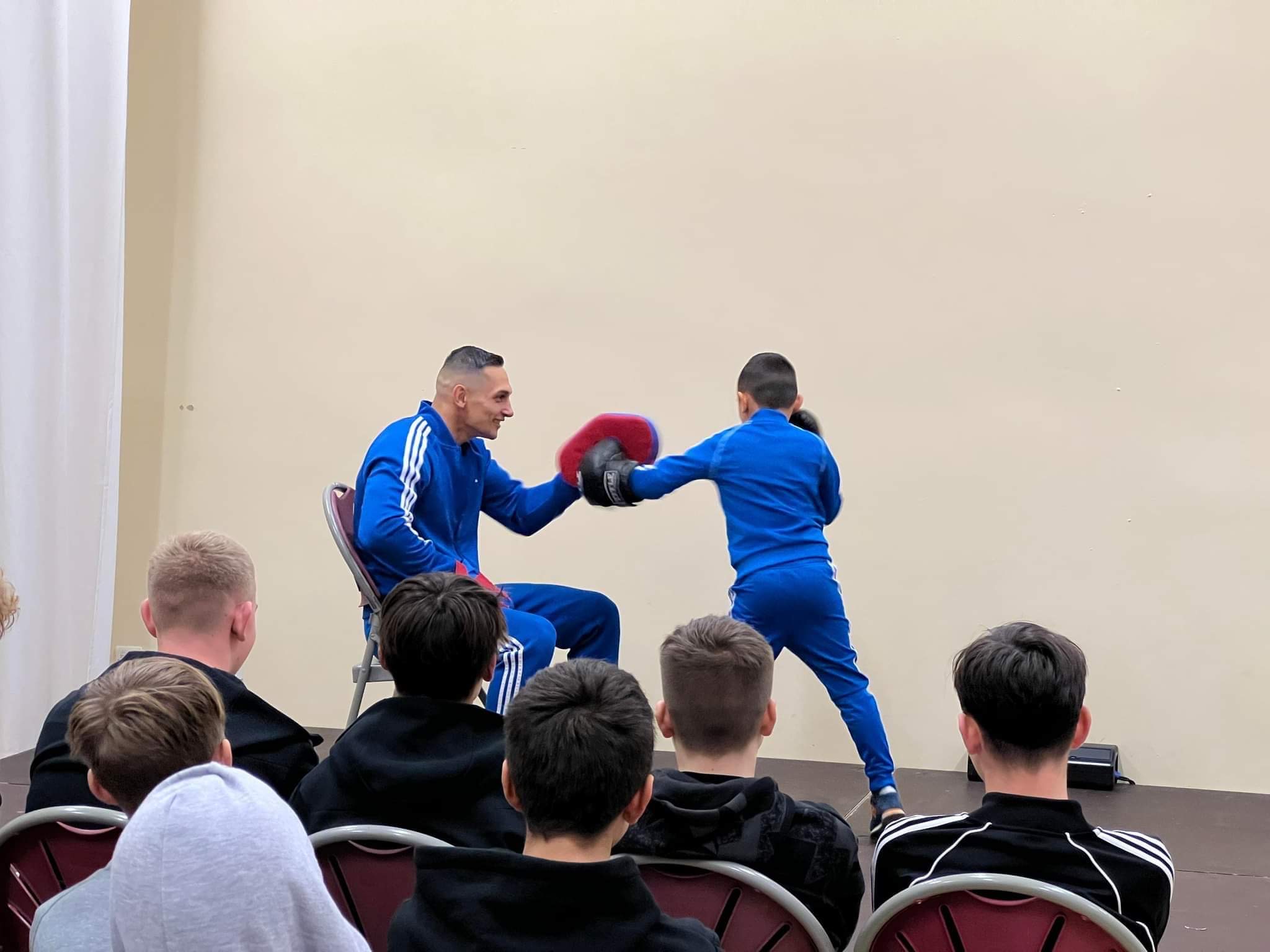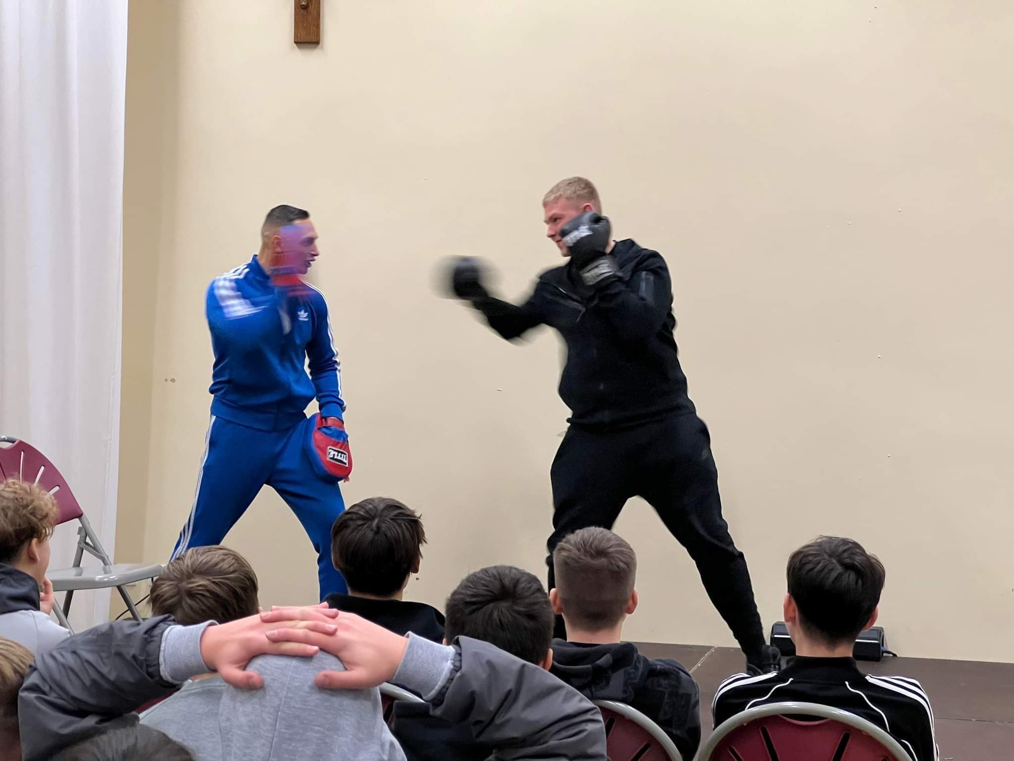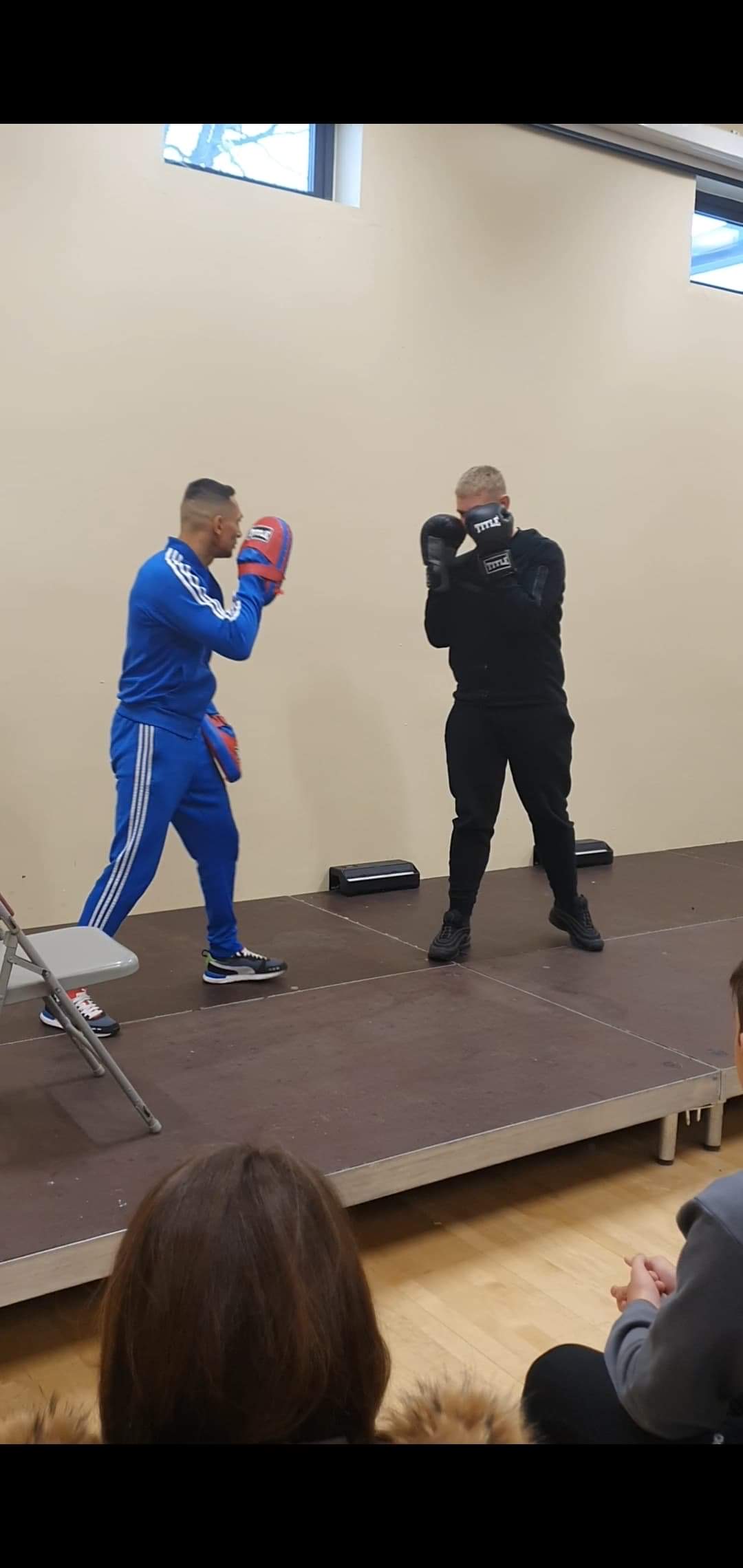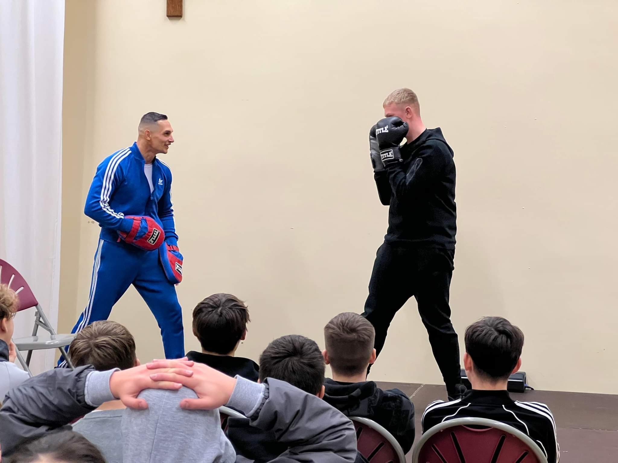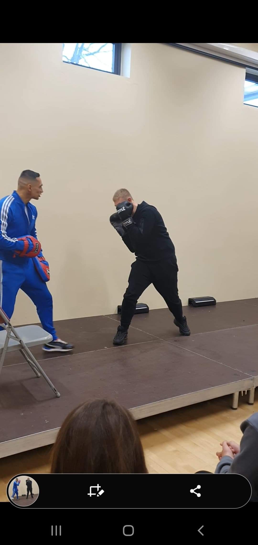 19 listopada 2022 roku 10 i 9 klasy miały zaszczyt gościc Łukasza Olszowskiego i jego synka Oliviera. Łukasz jest trenerem personalnym a jego dyscyplina sportowa to Kick boxing i muay thai 🥊. Rozpoczęliśmy wywiadem, który przeprowadziła pani Bernardetta Chmielewska z pomocą pań Katarzyny Niemkiewicz-Borowicz i Iwony Drummond. Następnie uczniowie mieli szansę na zadanie kilku pytań naszemu gościowi a potem już była wyczekana przez uczniów część czyli prezentacja dyscypliny. Łukasz wraz z synem zademonstrował podstawowe ruchy po czym uczniowie mogli założyć rekawice i spróbować „poboksowac” ze sportowcem. Emilka Targańska z klasy 10 zademostwowala nam swoją pasję Tang Soo Do i razem z gościem poćwiczyli uderzenia. Spotkanie zakończyło się sesją zdjęciową, którą możecie państwo zobaczyć poniżej. Jeszcze raz wielkie brawa dla naszego gościa i jego synka Oliviera , Emilki Targańskiej i wszystkich uczniów, ktorzy mieli możliwość zademonstrować swoje zdolności bokserskie.