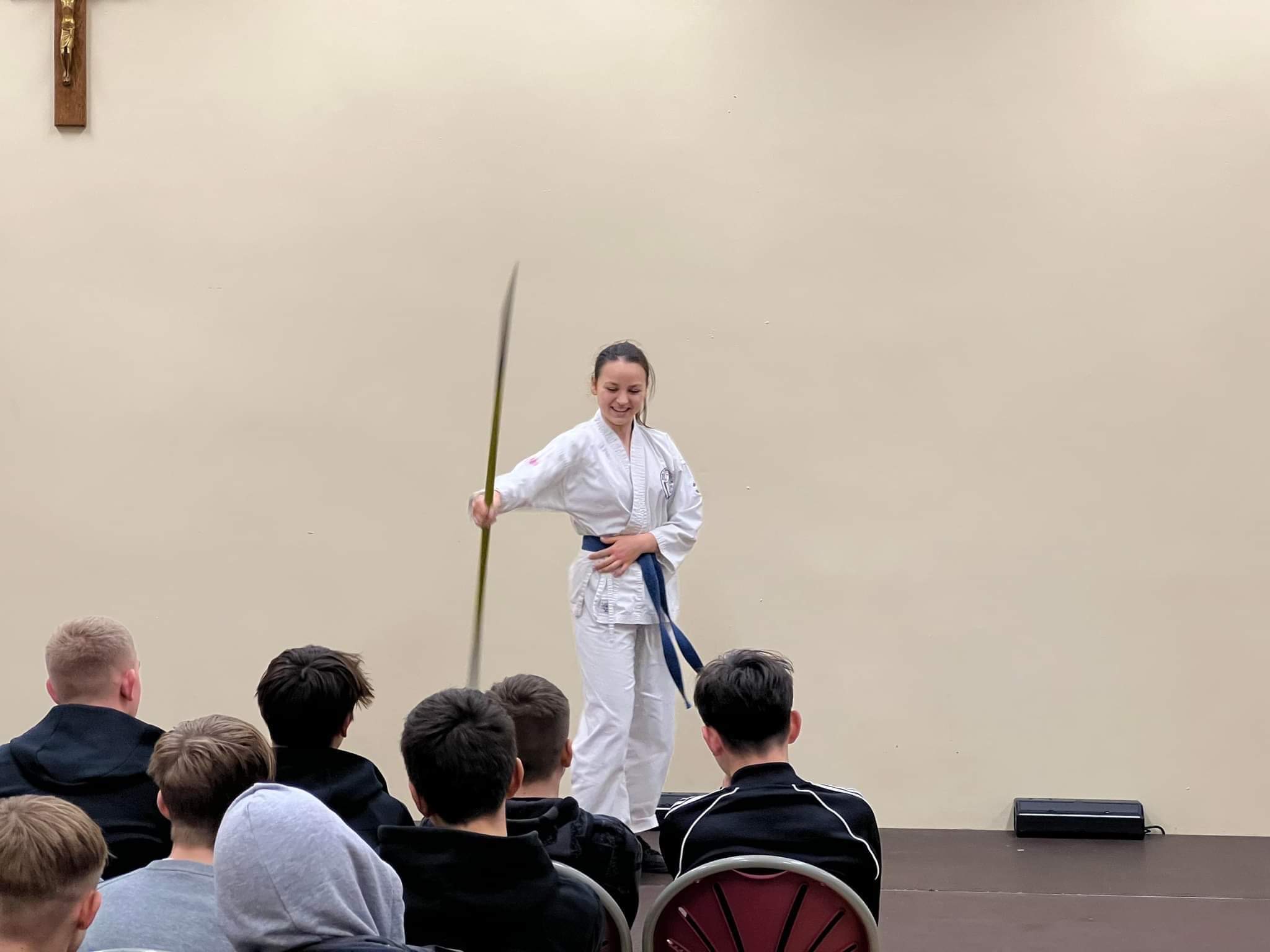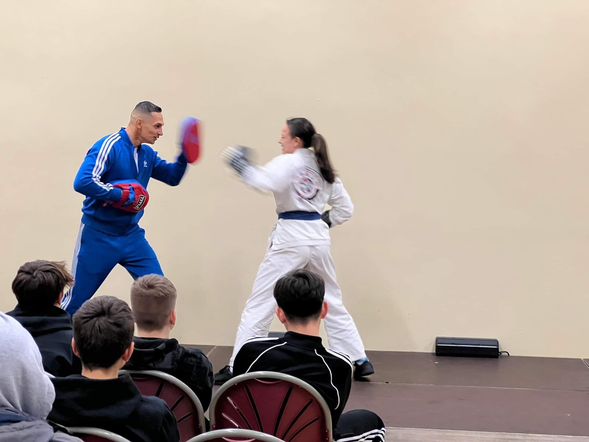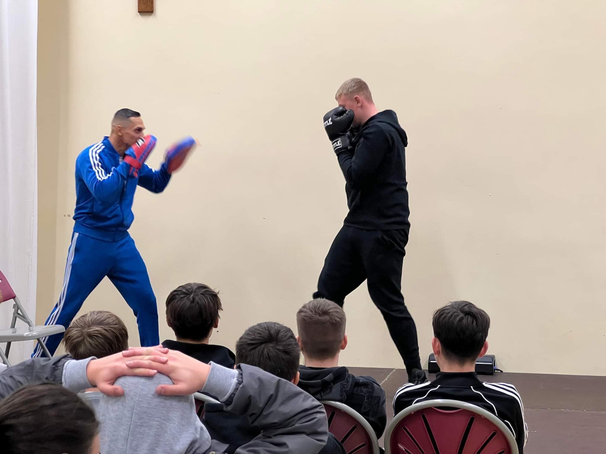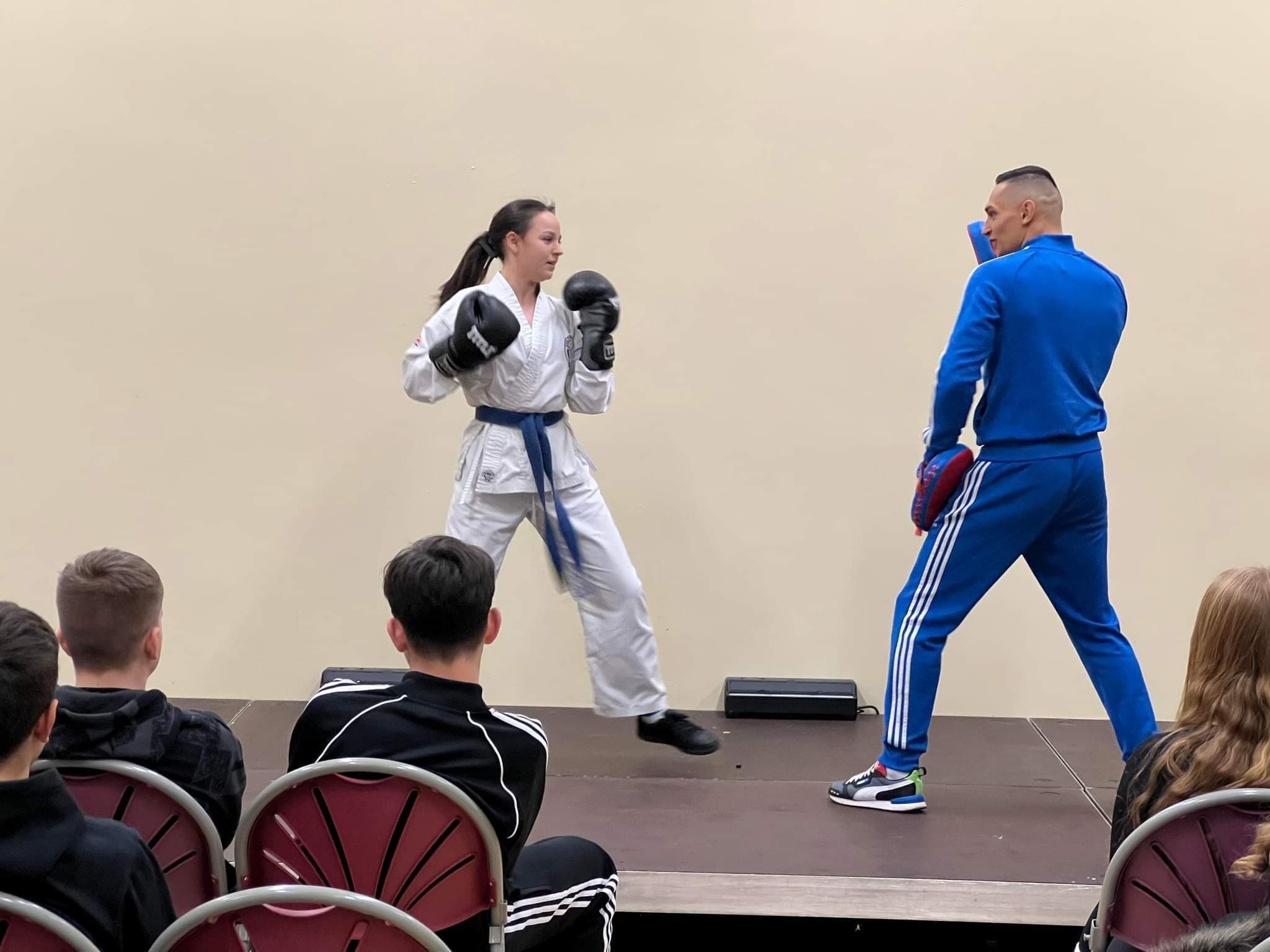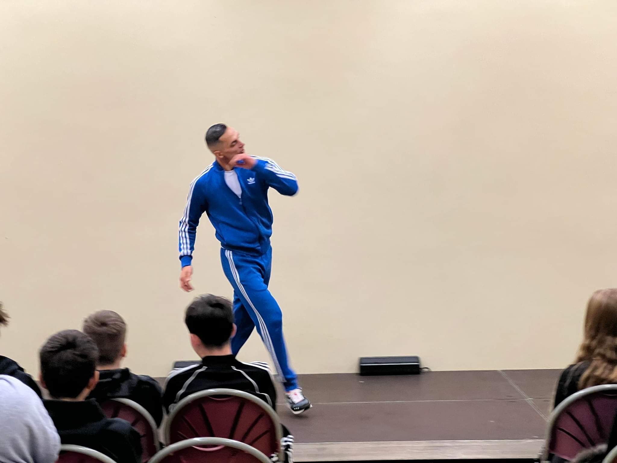 19 listopada 2022 roku 10 i 9 klasy miały zaszczyt gościc Łukasza Olszowskiego i jego synka Oliviera. Łukasz jest trenerem personalnym a jego dyscyplina sportowa to Kick boxing i muay thai 🥊. Rozpoczęliśmy wywiadem, który przeprowadziła pani Bernardetta Chmielewska z pomocą pań Katarzyny Niemkiewicz-Borowicz i Iwony Drummond. Następnie uczniowie mieli szansę na zadanie kilku pytań naszemu gościowi a potem już była wyczekana przez uczniów część czyli prezentacja dyscypliny. Łukasz wraz z synem zademonstrował podstawowe ruchy po czym uczniowie mogli założyć rekawice i spróbować „poboksowac” ze sportowcem. Emilka Targańska z klasy 10 zademostwowala nam swoją pasję Tang Soo Do i razem z gościem poćwiczyli uderzenia. Spotkanie zakończyło się sesją zdjęciową, którą możecie państwo zobaczyć poniżej. Jeszcze raz wielkie brawa dla naszego gościa i jego synka Oliviera , Emilki Targańskiej i wszystkich uczniów, ktorzy mieli możliwość zademonstrować swoje zdolności bokserskie.