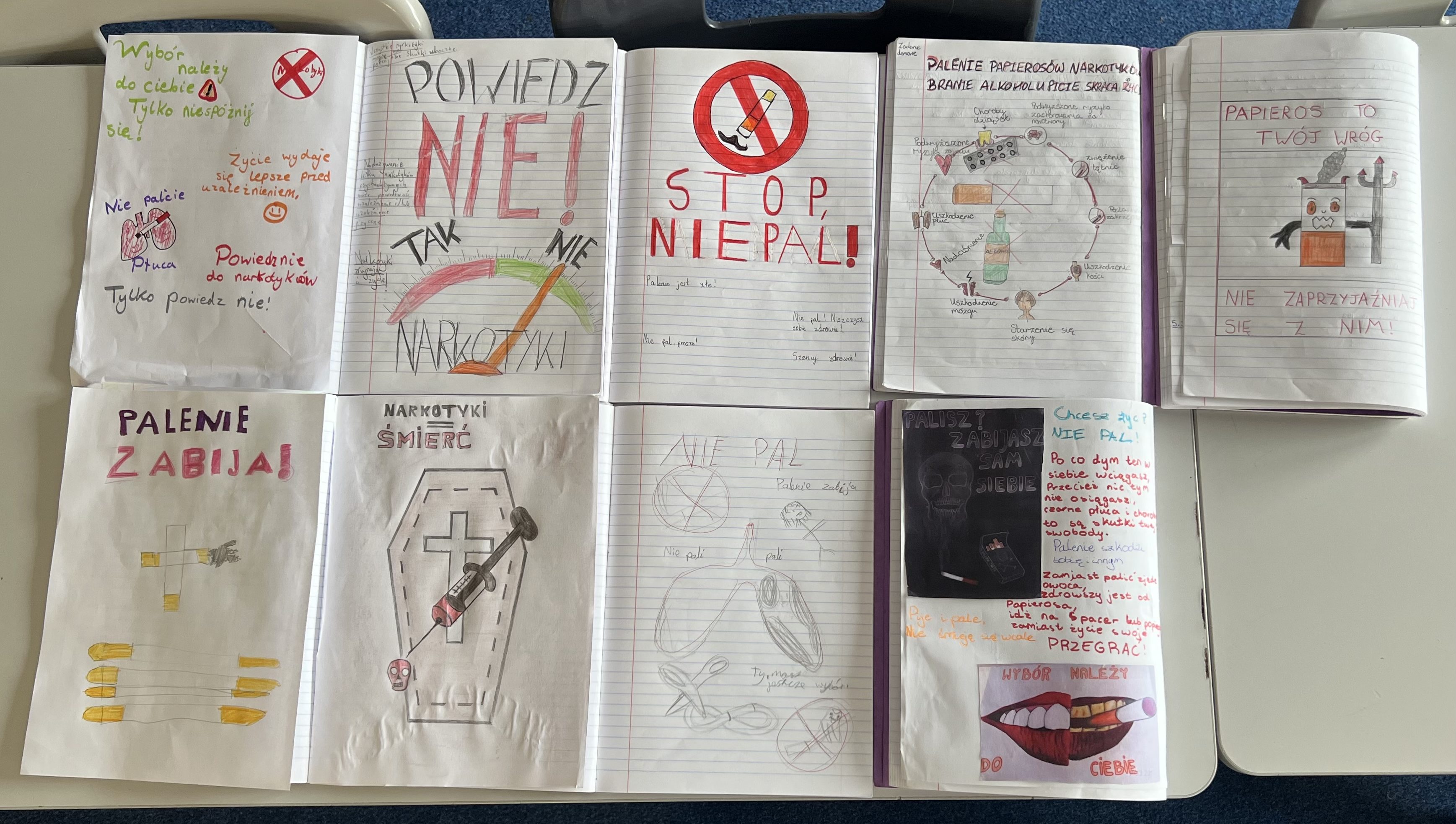 Po zajᶒciach poświᶒconych asertywności – Uczᶒ siᶒ mówić NIE! – uczniowie kl. 6A oraz kl. 6B Wykonali plakaty, ktόre powinny uświadomić ich kolegom i koleżankom zgubne nastᶒpstwa eksperymentόw z narkotykami, dopalaczami, alkoholem lub papierosami!