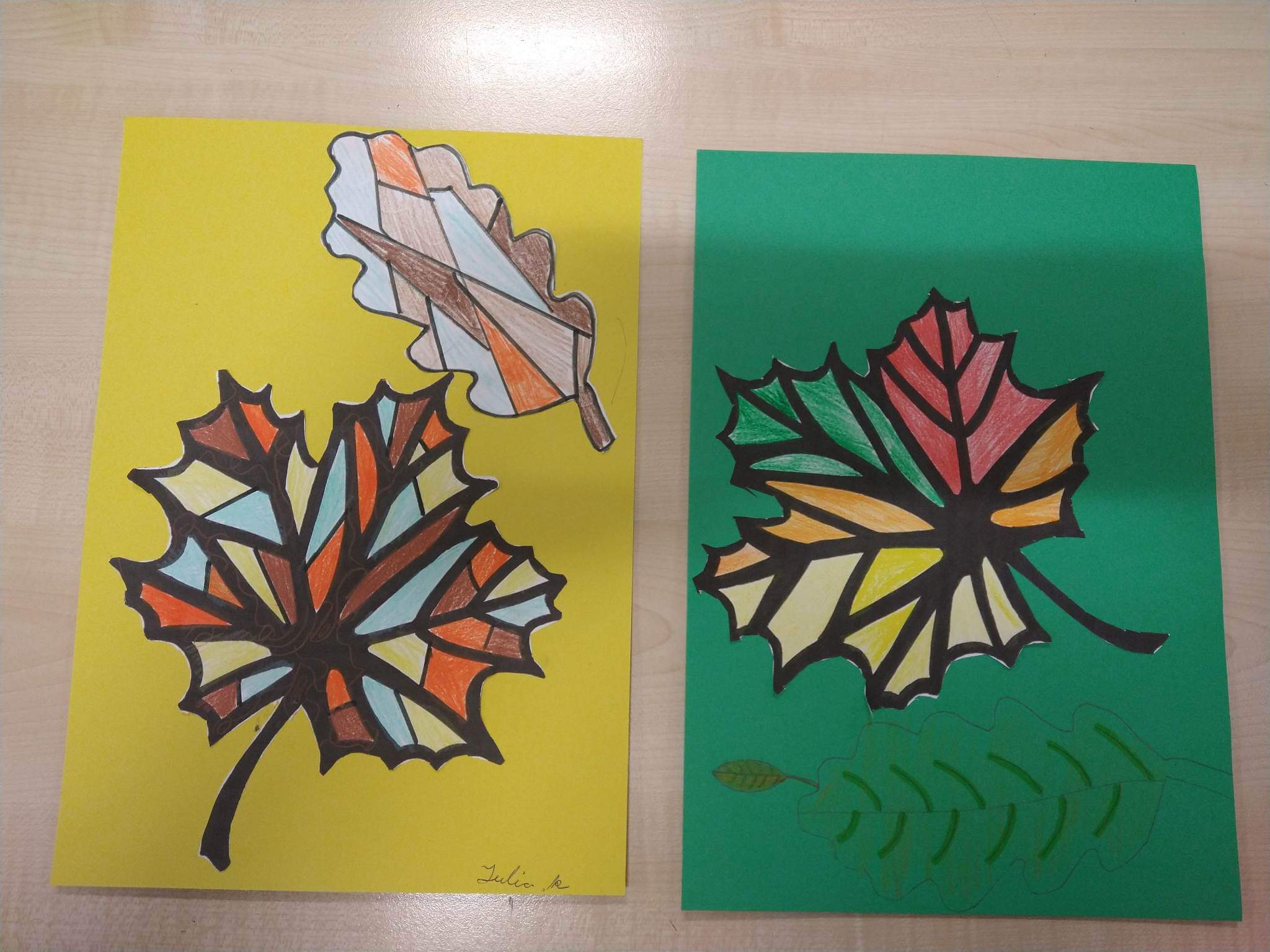 Najstarsza grupa plastyczna Kolorowe papugi wykonała piᶒkne, barwne jesienne liście.