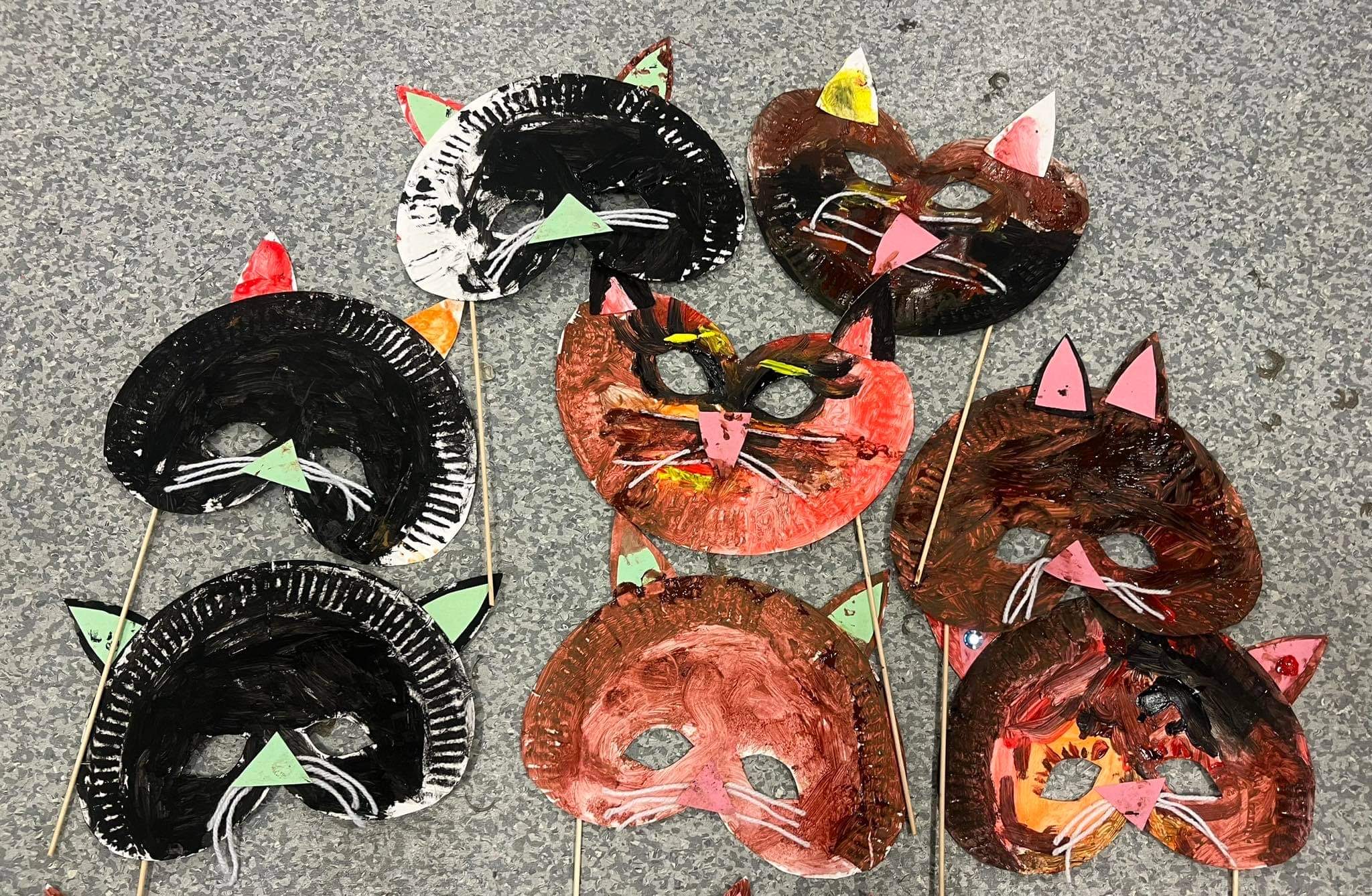 Maski Karnawałowe wykonane przez dzieci z najmłodszej grupy plastycznej