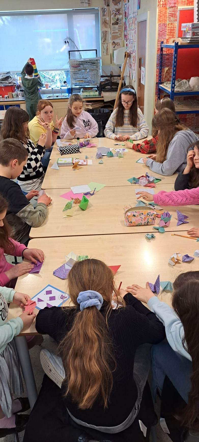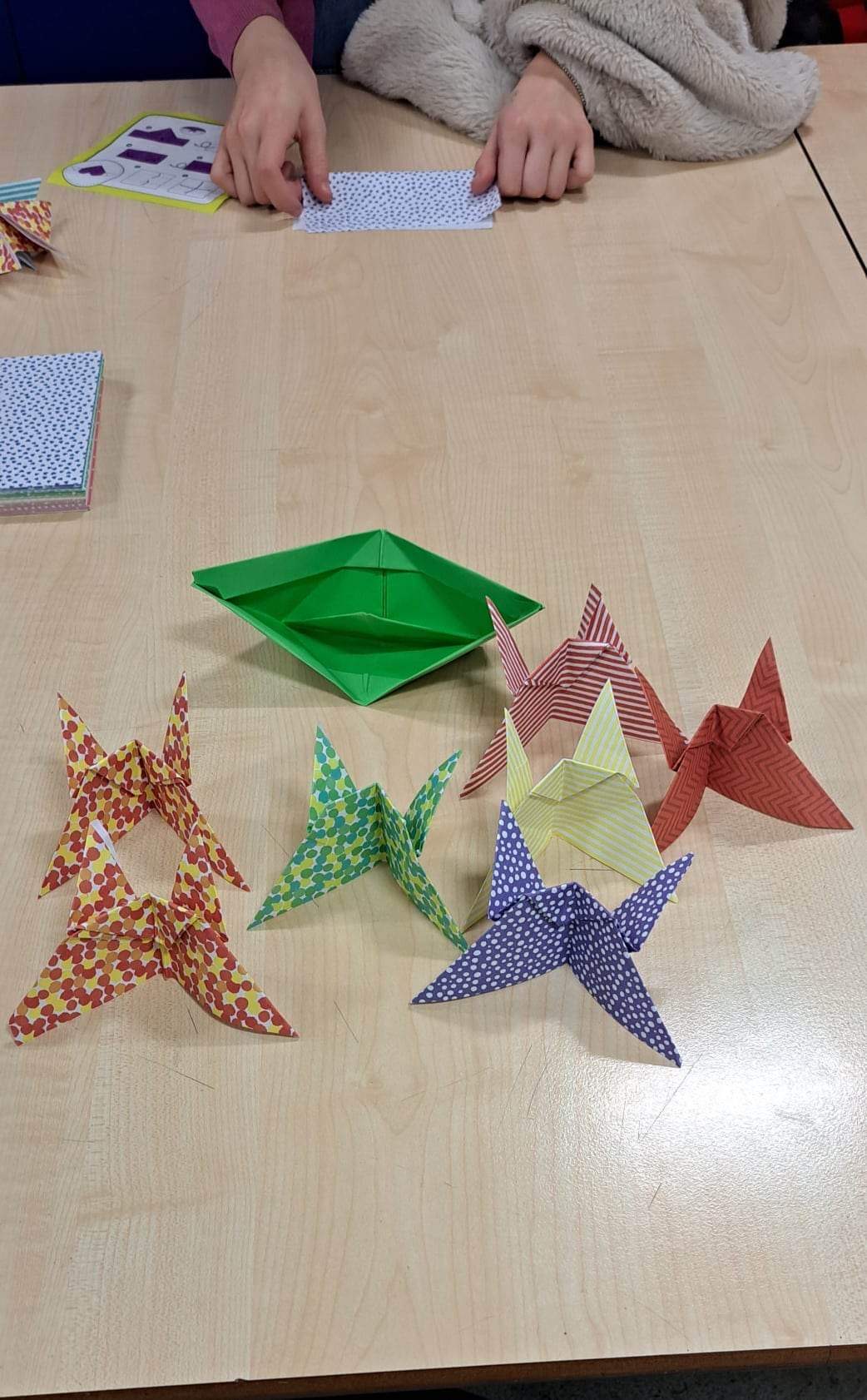 Część uczestników klubu robiła origami (Origami – sztuka składania papieru, pochodząca z Chin, rozwinięta w Japonii i dlatego uważa się ją za tradycyjną sztukę japońską.)