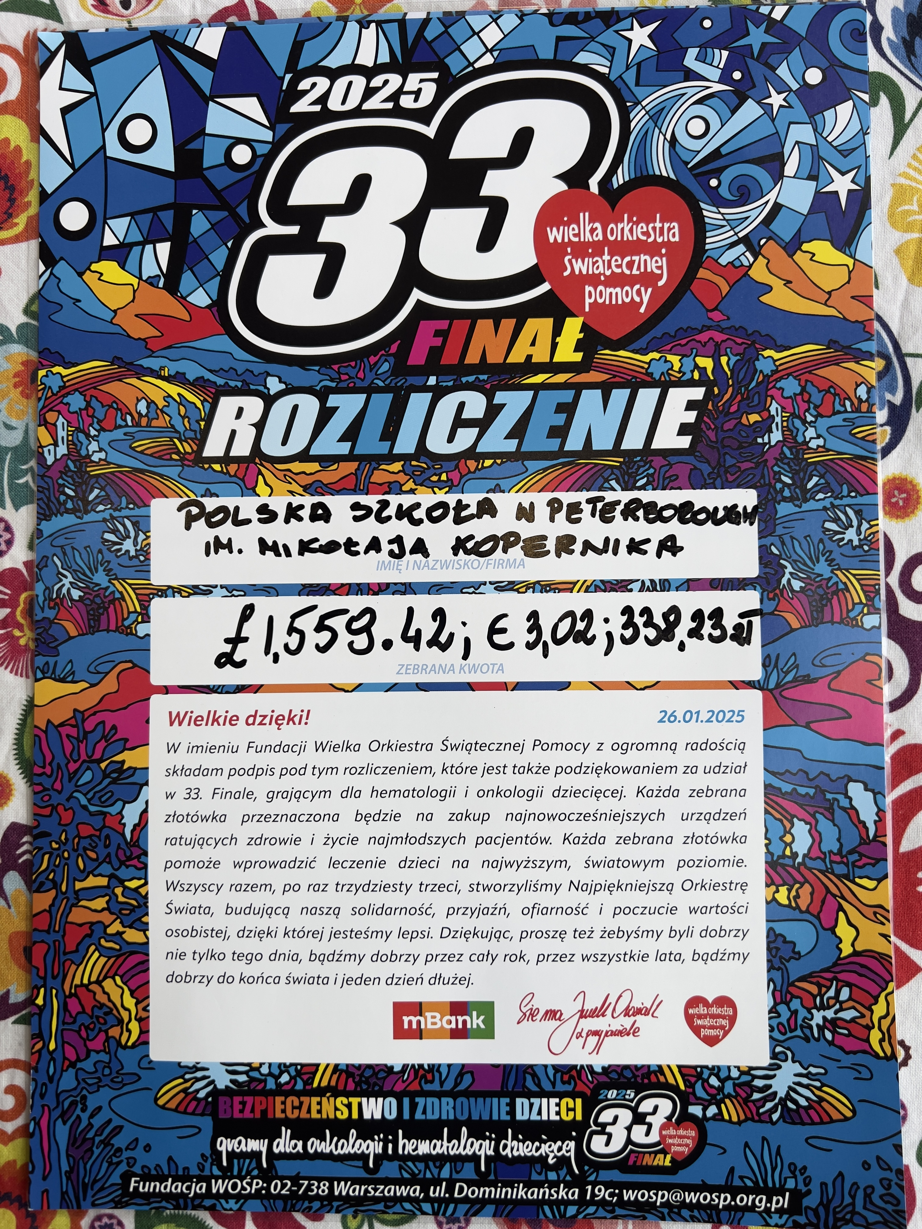 🎉❤️ Oficjalne rozliczenie 33. Finału WOŚP w naszej szkole! ❤️🎉