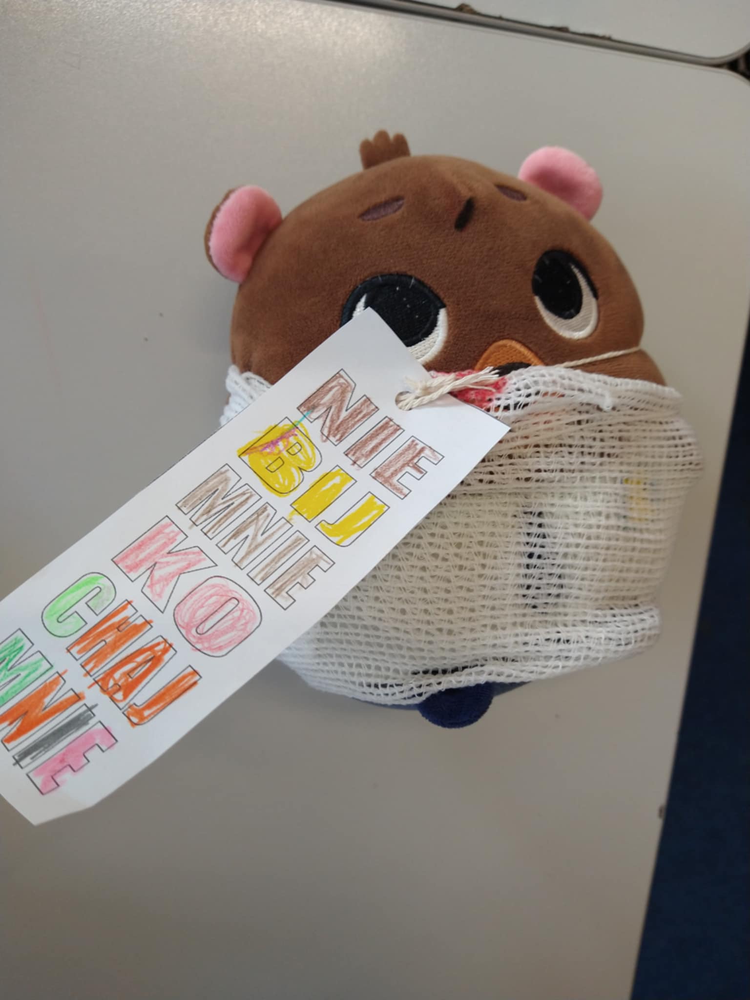 Klasa 3a i klasa anglojęzyczna najmłodsza grała dla WOŚP i dołączyła do akcji #HistoriaMisia „Nie bij mnie – kochaj mnie! ”