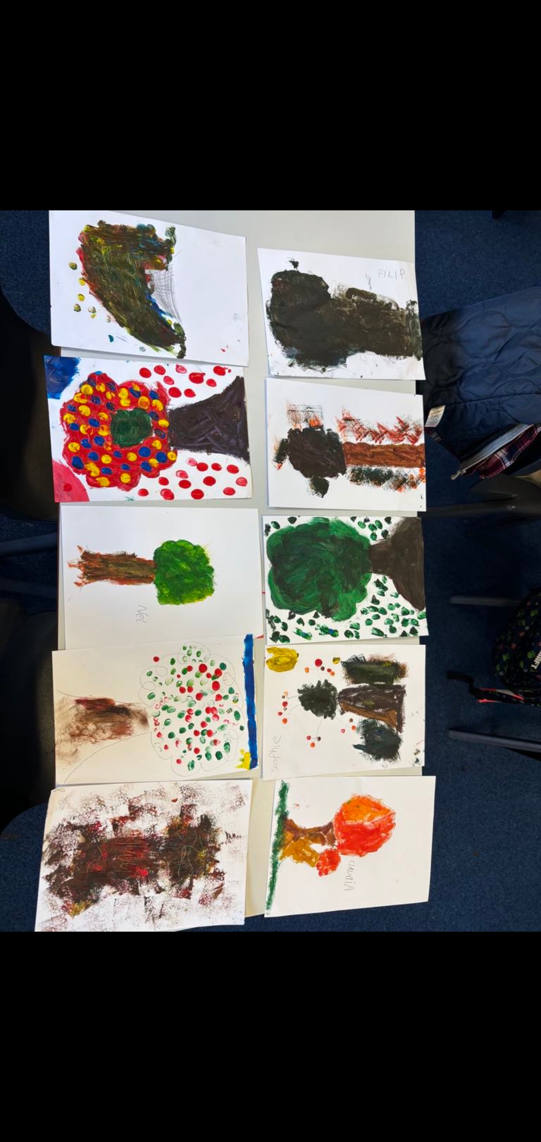Podczas dzisiejszych zajęć uczniowie klasy 2A dowiedzieli się, jak powstają kolory. Mieszały żółty, czerwony i niebieski, odkrywając, jakie barwy można uzyskać. Następnie, za pomocą różnych technik (opuszkami palców, gąbką, pędzelkiem), malowaliśmy piękne jesienne drzewa. Kreatywność w pełnym rozkwicie! 🍂🎨