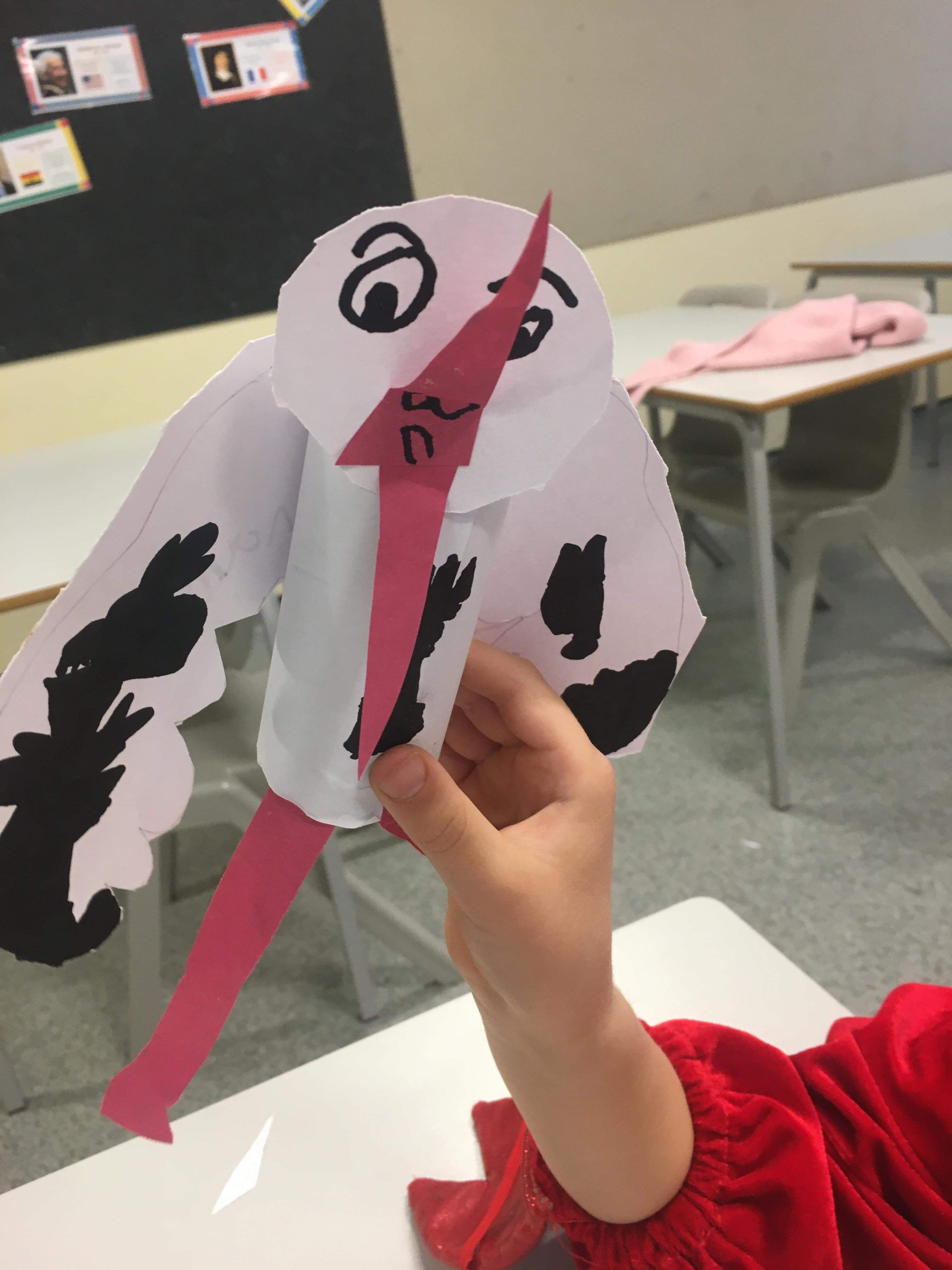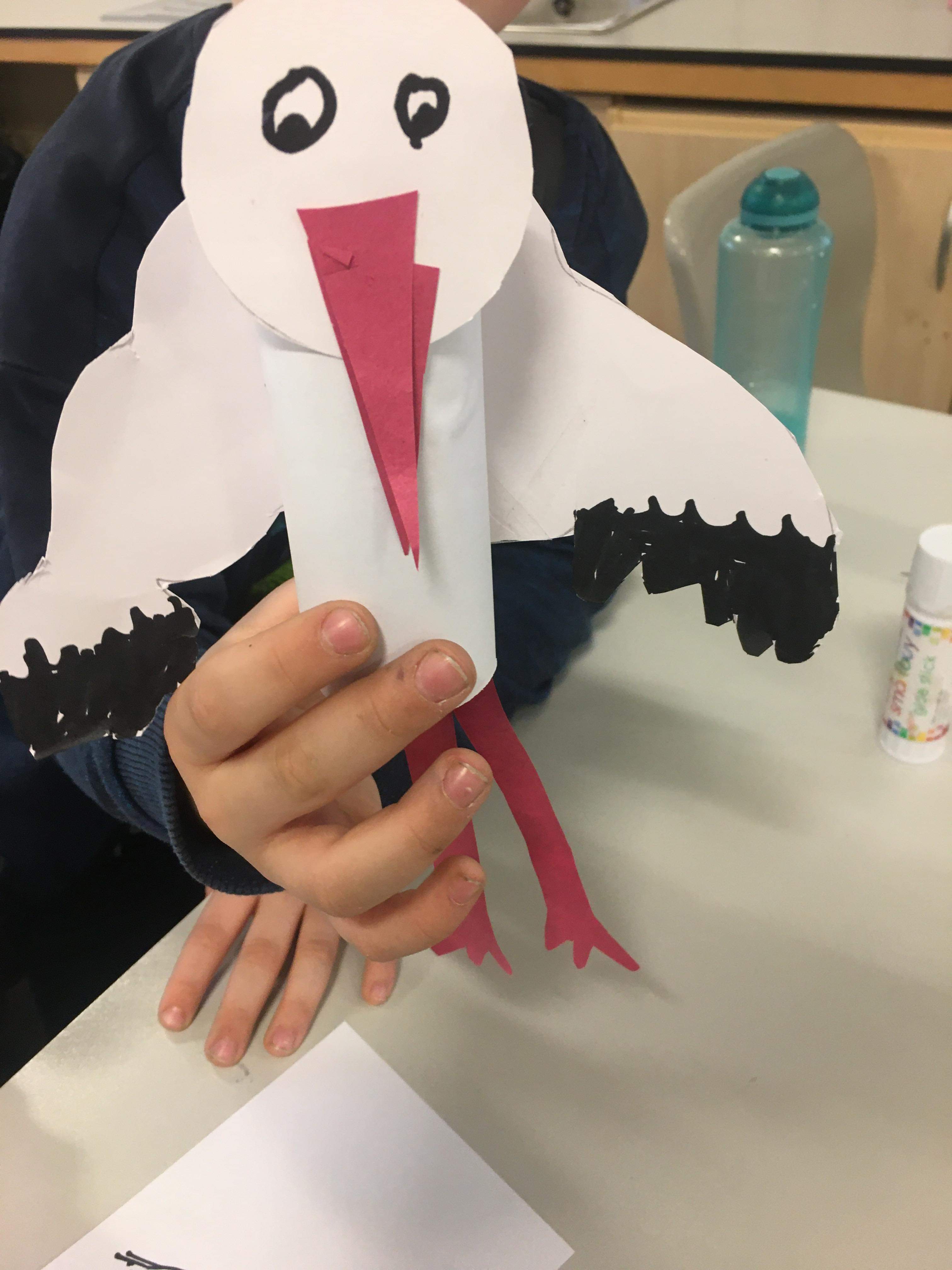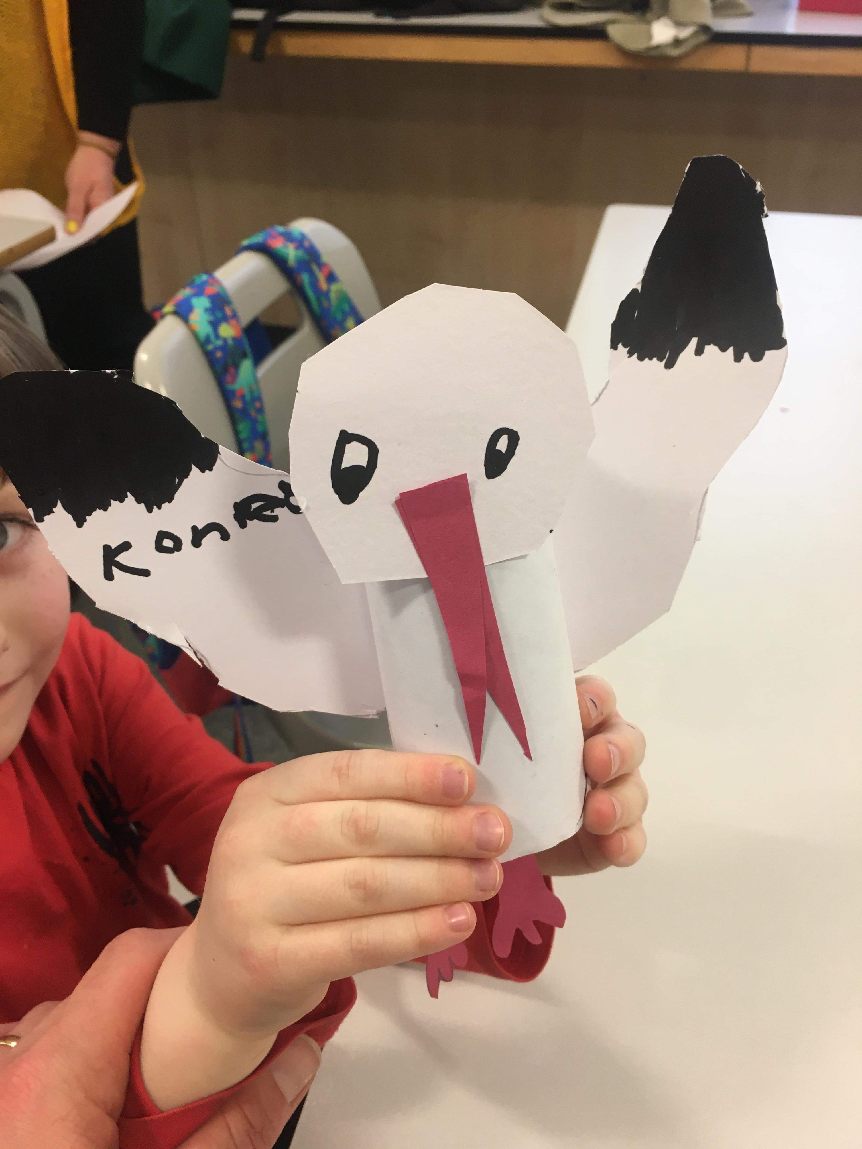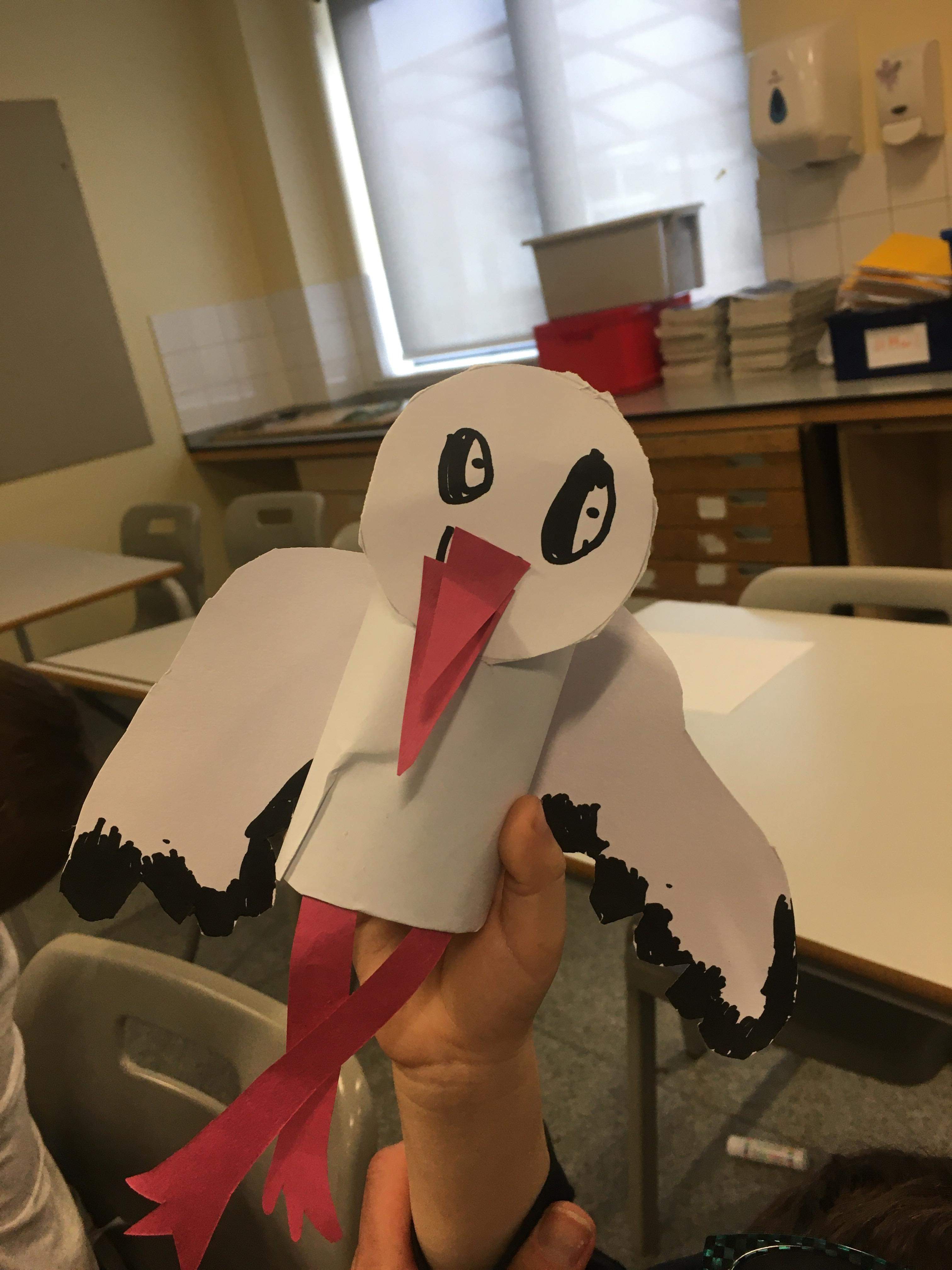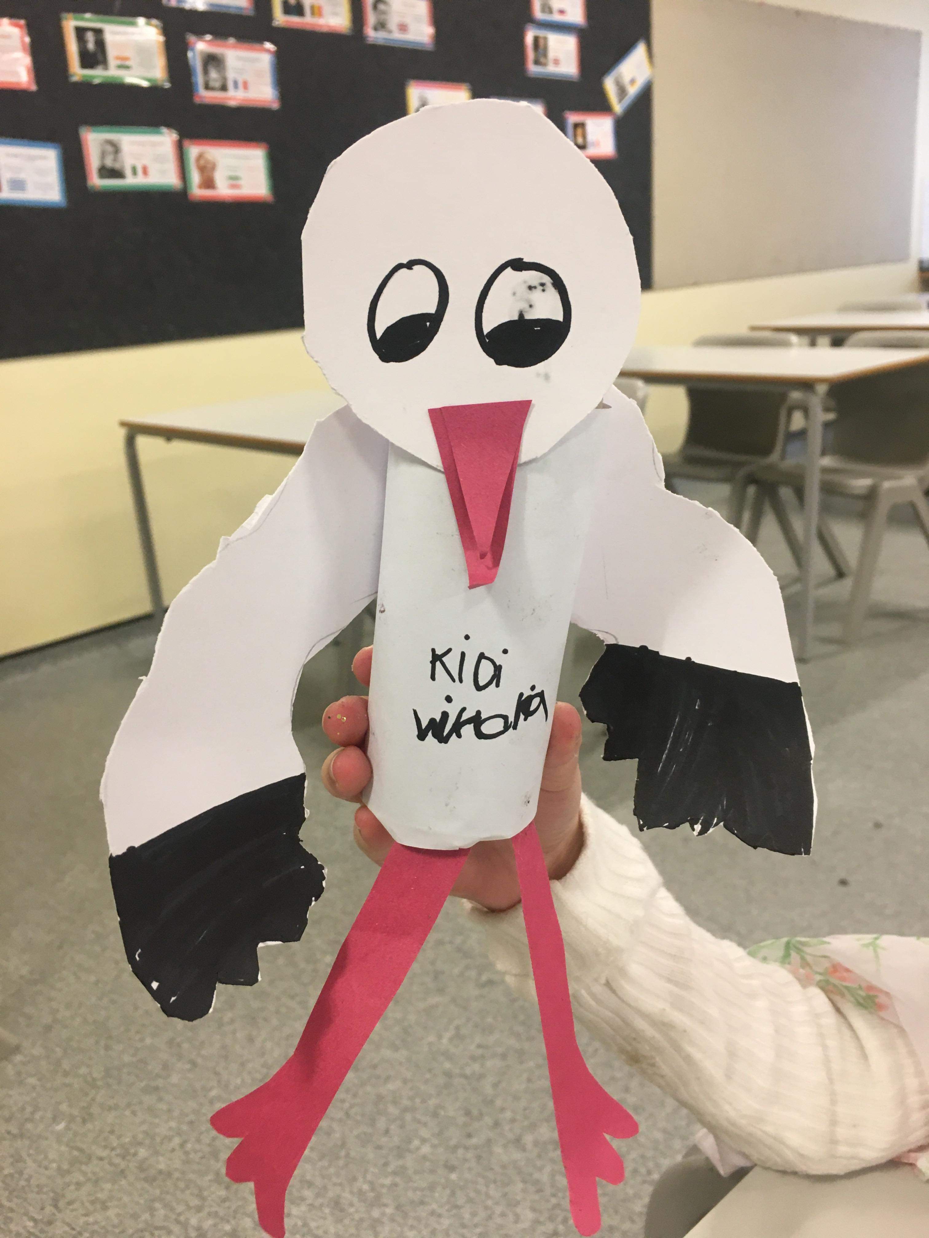 Na dzisiejszych zajeciach, nasza najmlodsza grupa plastyczna “Zmalujmy Cos” wykonala bociany z papieru 🙂