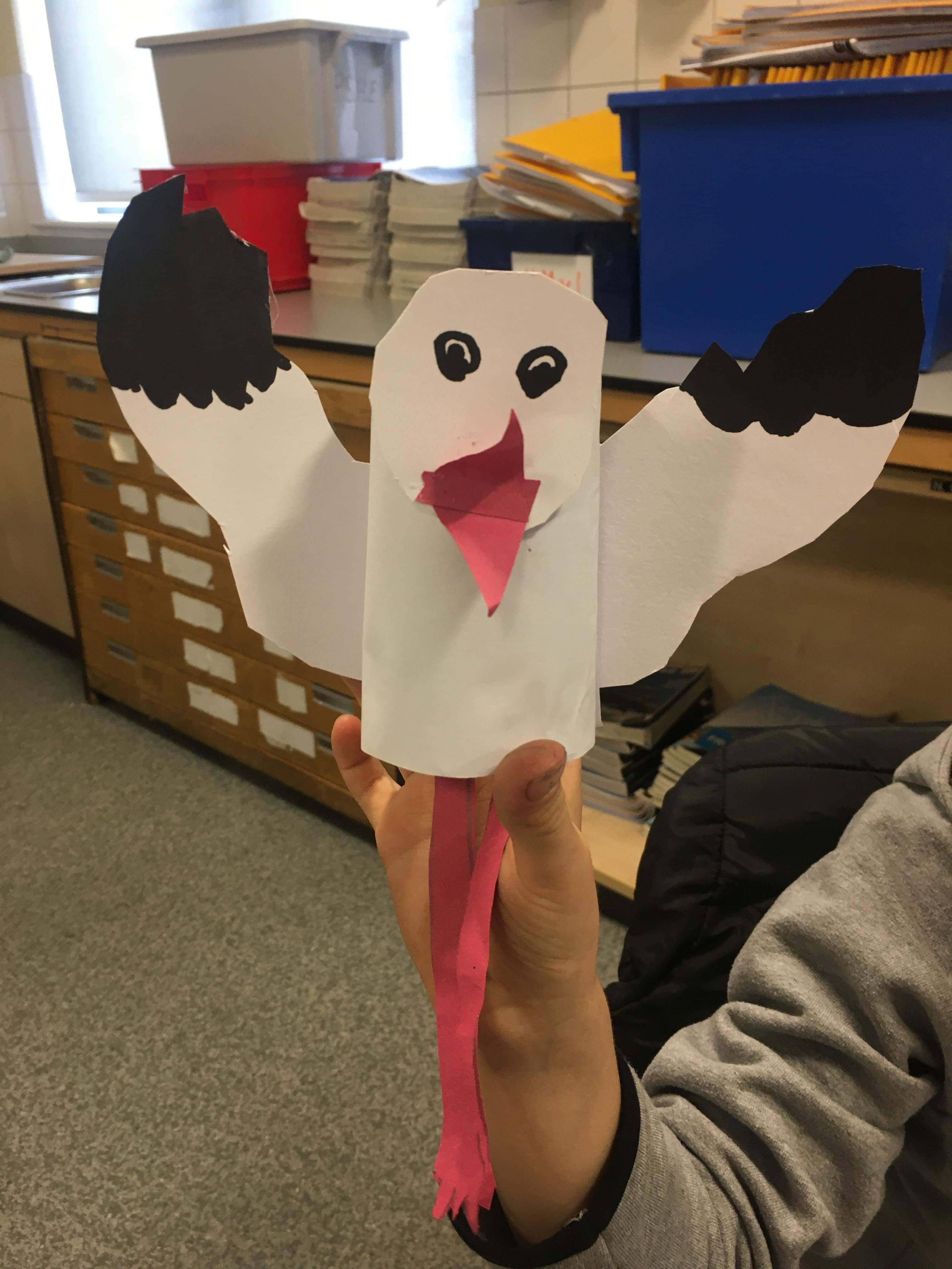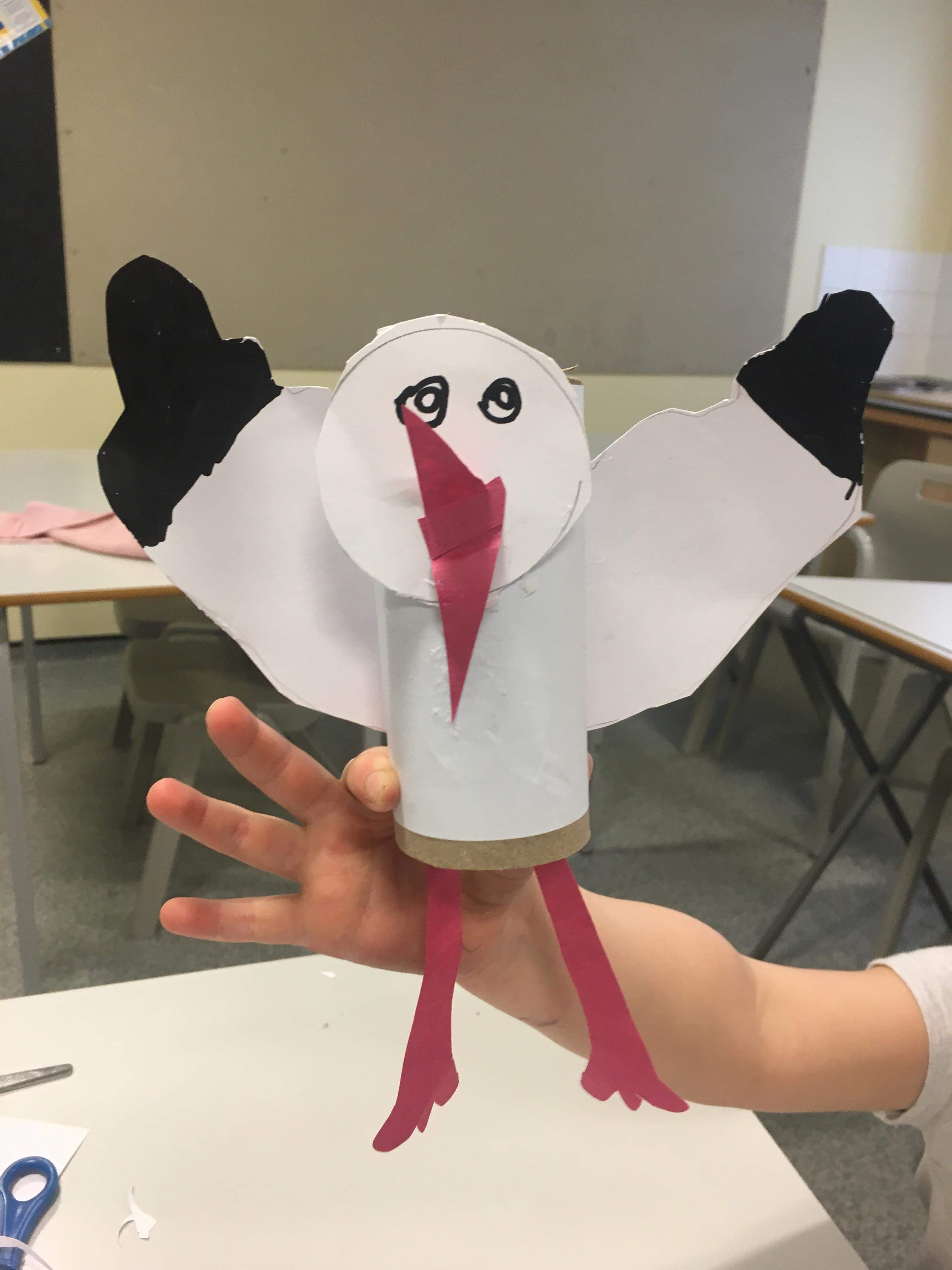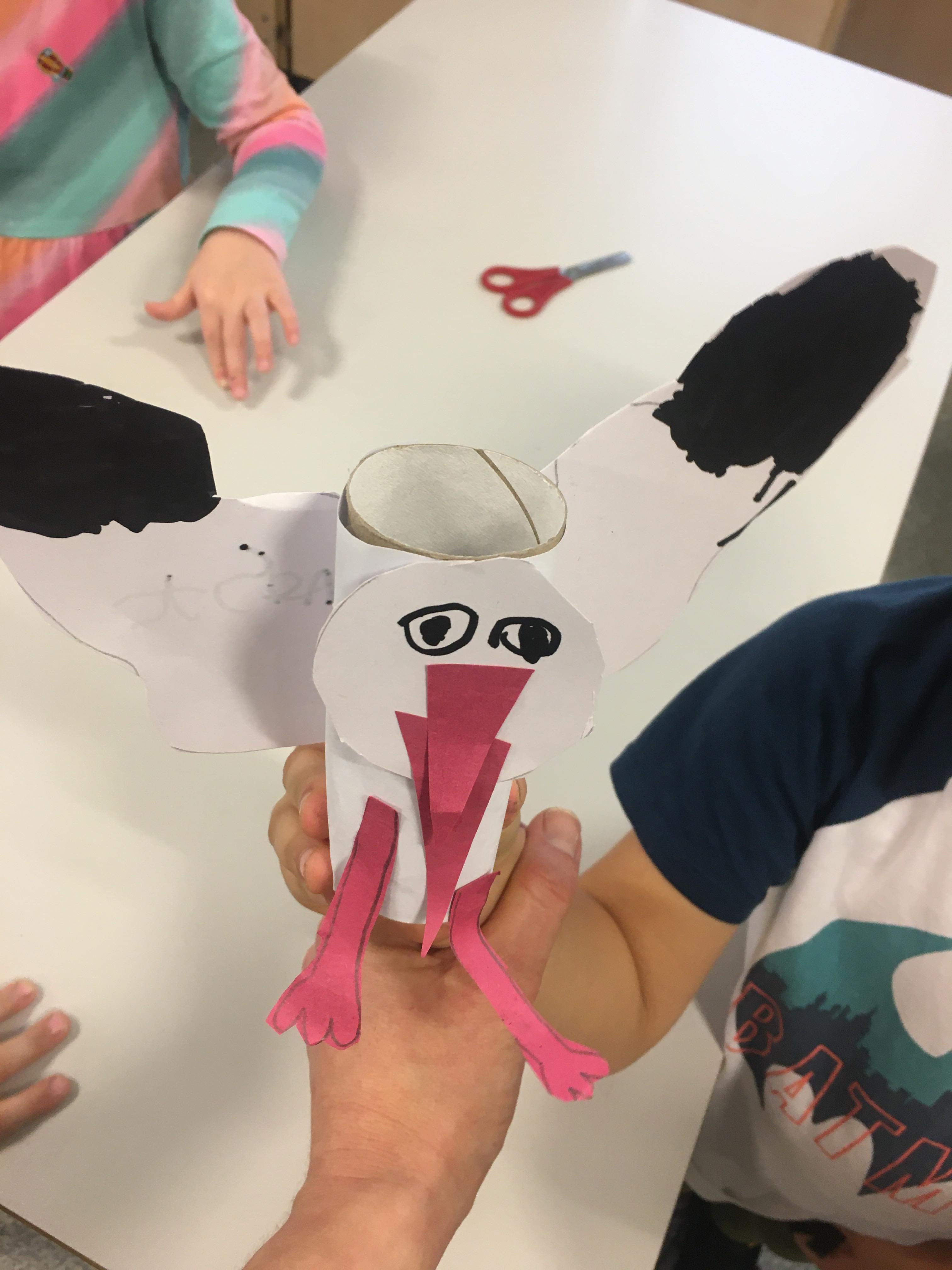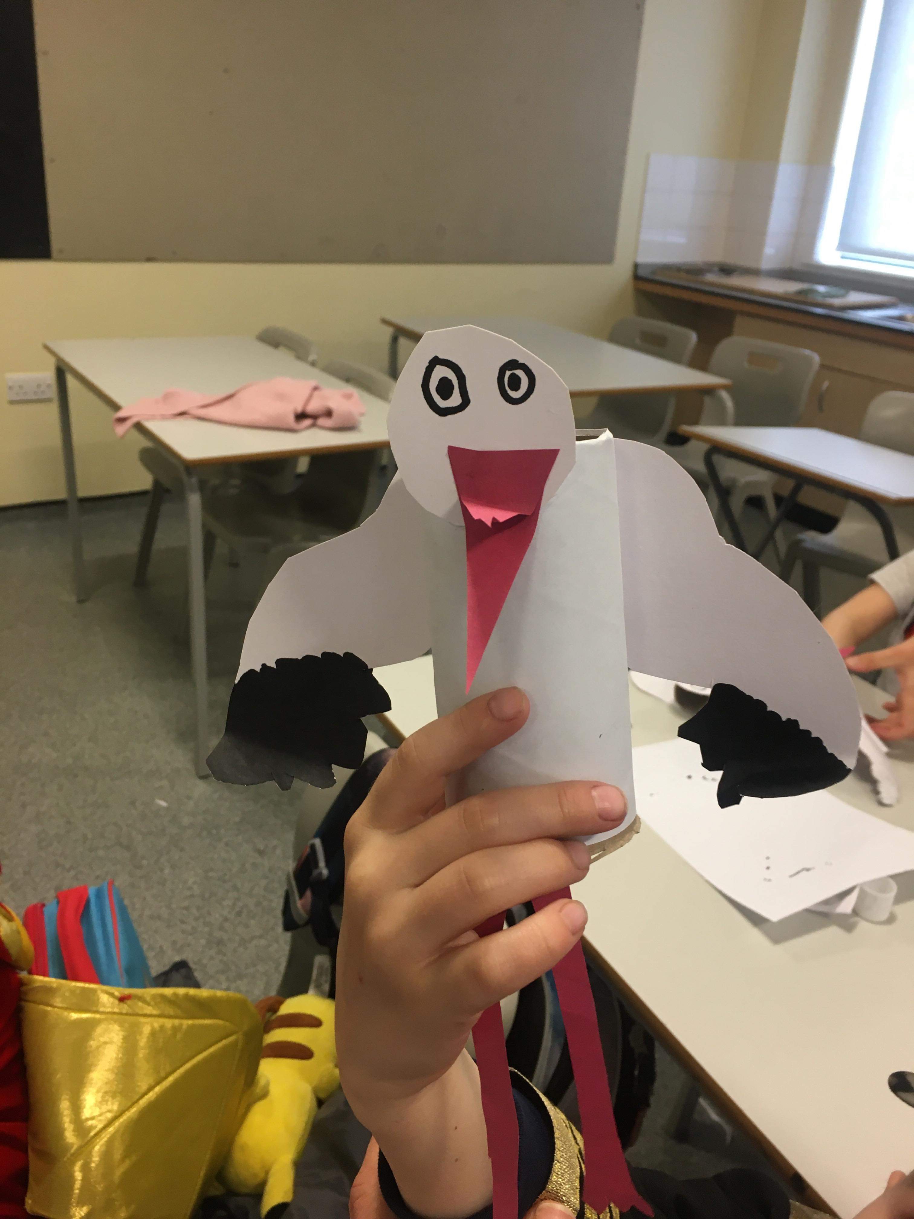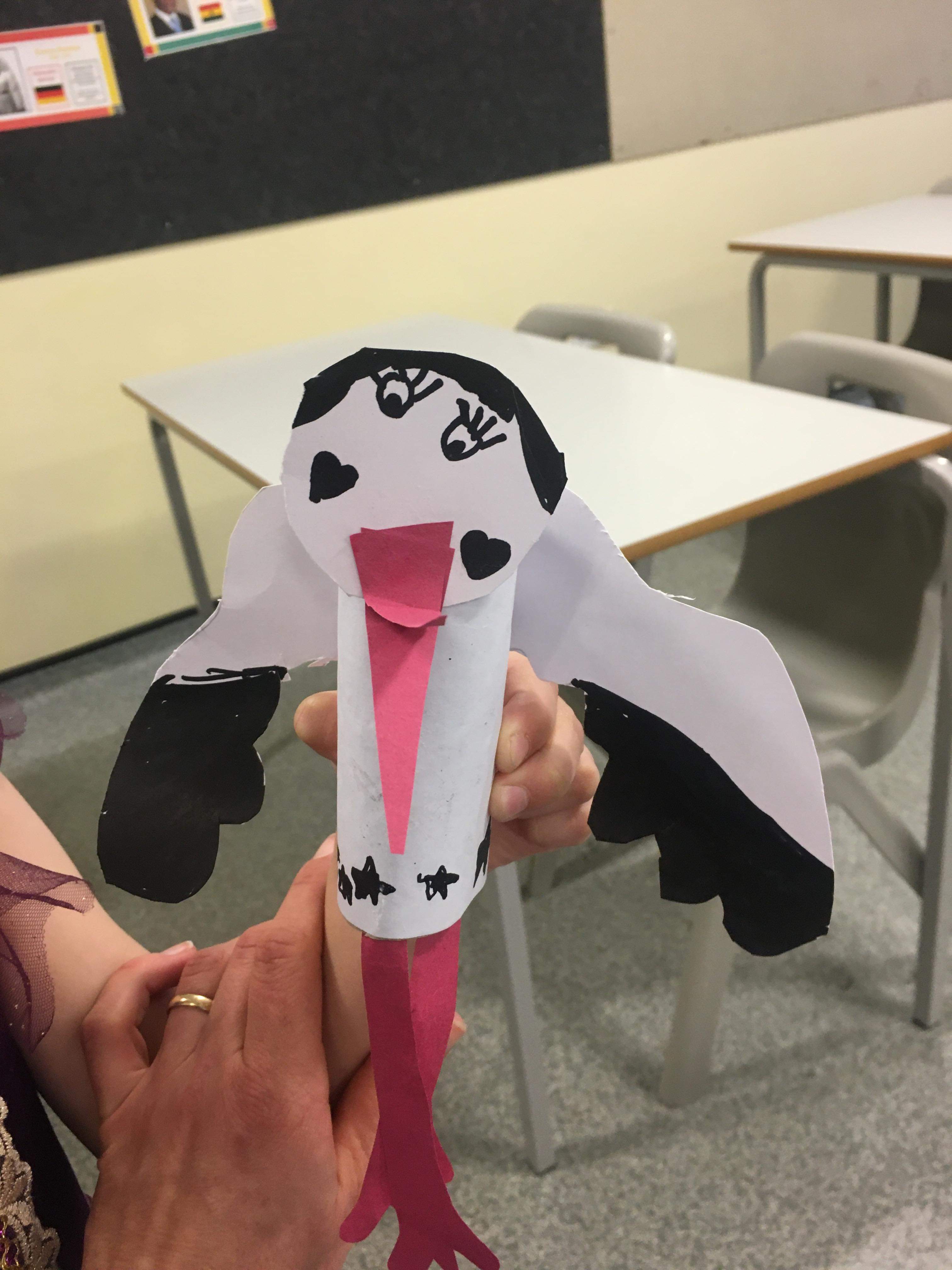 Na dzisiejszych zajeciach, nasza najmlodsza grupa plastyczna “Zmalujmy Cos” wykonala bociany z papieru 🙂