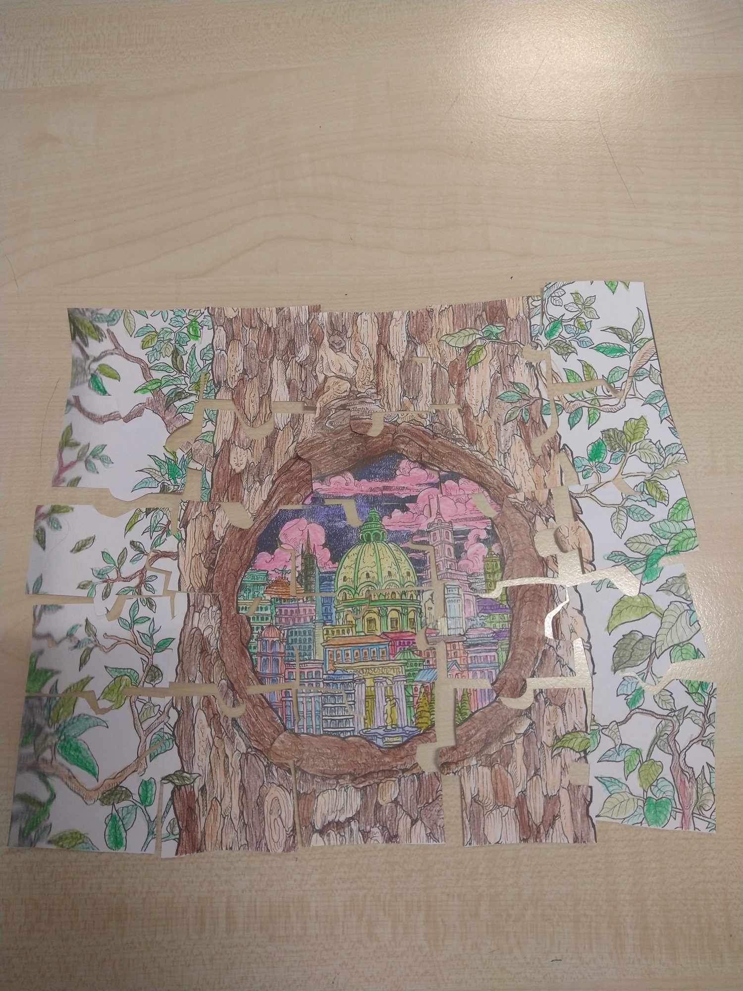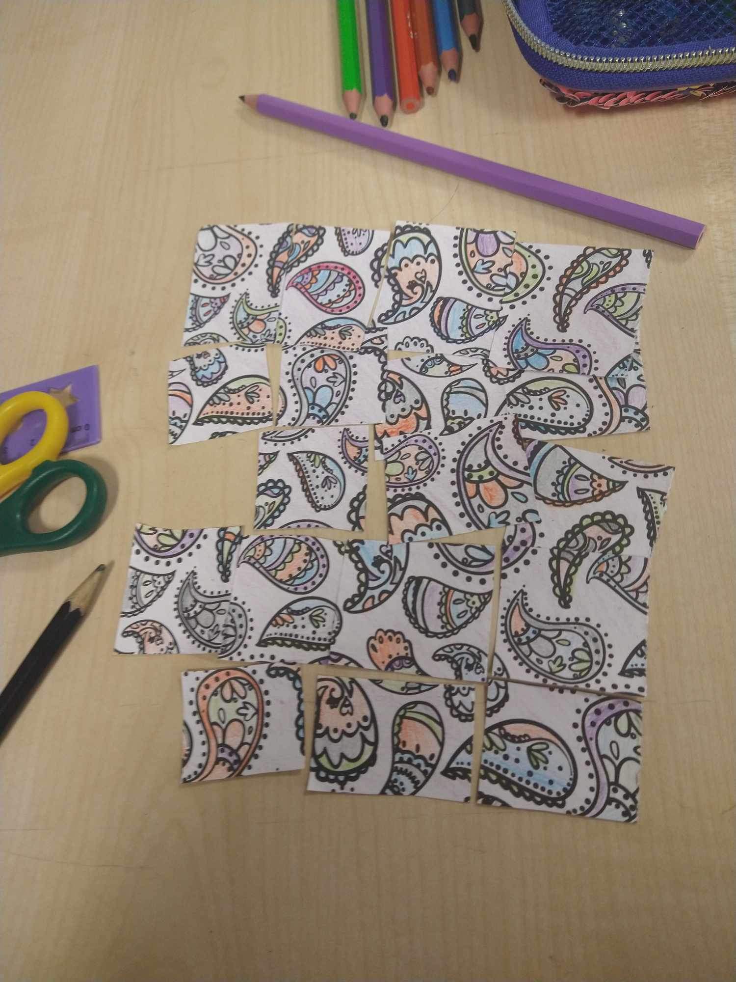Uczniowie na zajᶒciach plastyki nie tylko samodzielnie wykonali puzzle, ale je rόwnież ułożyli.