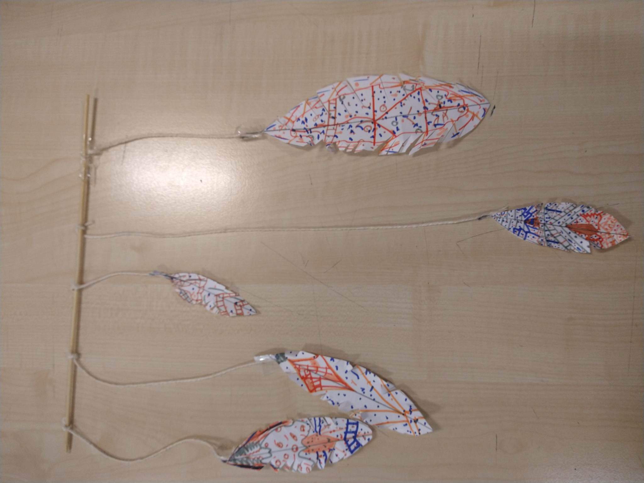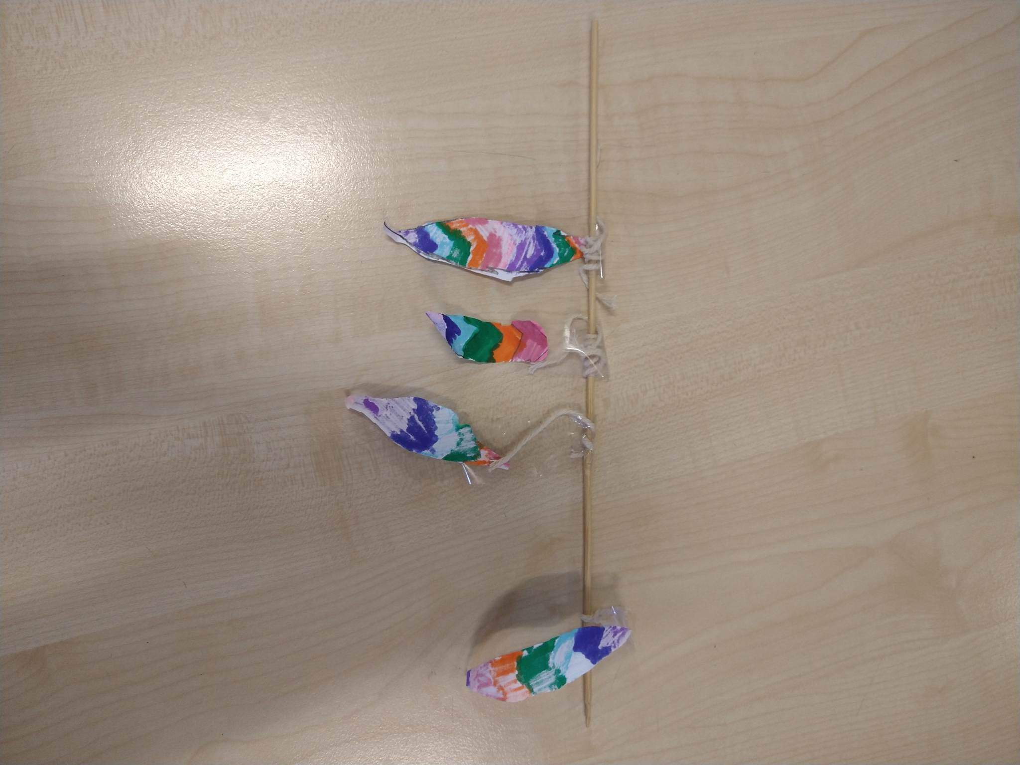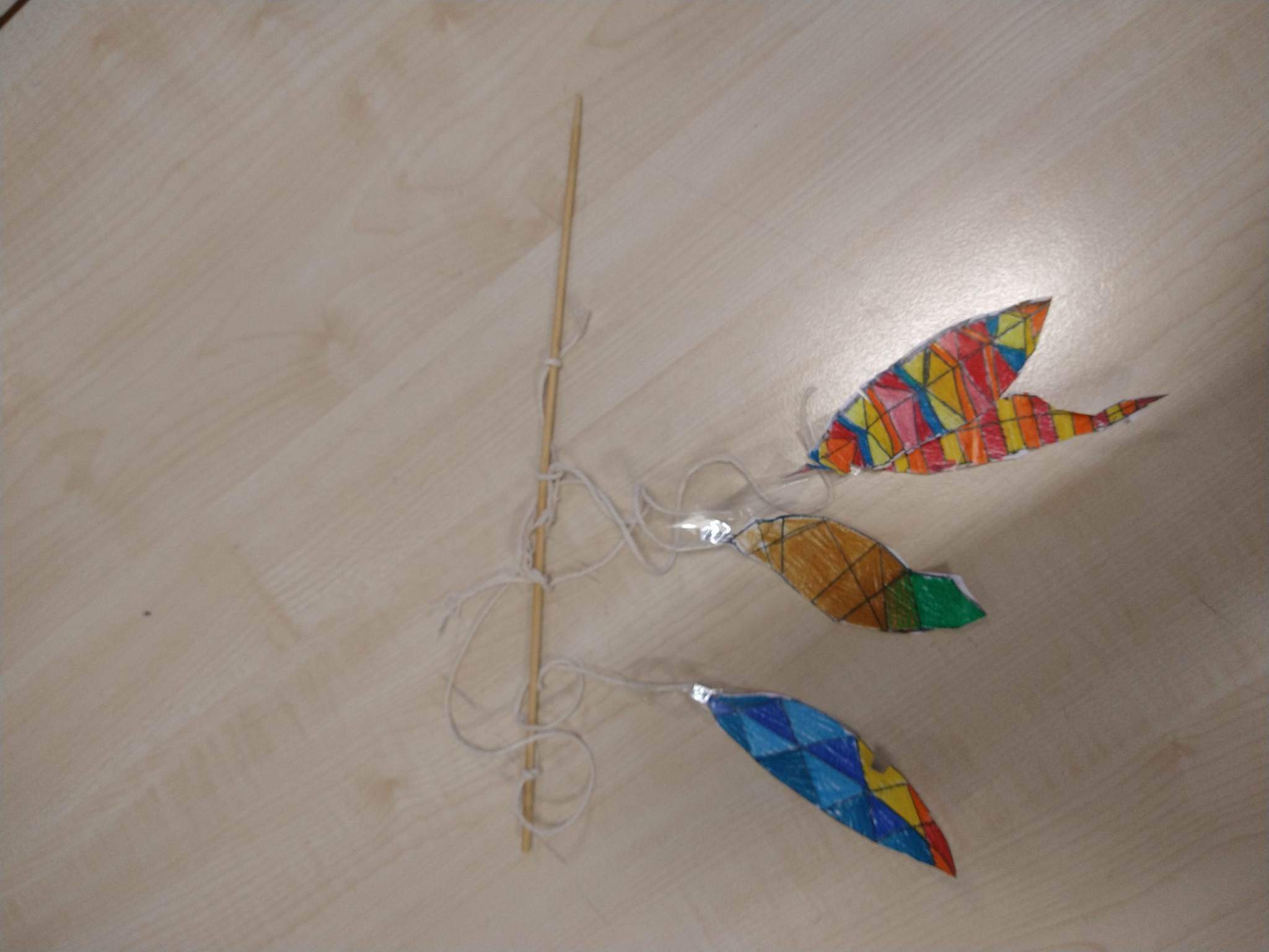 Delikatne, piᶒknie mieniące siᶒ piόrka zostały wykonane przed jesienną przerwą przez najstarszą grupᶒ plastyczną “Kolorowe papugi”.