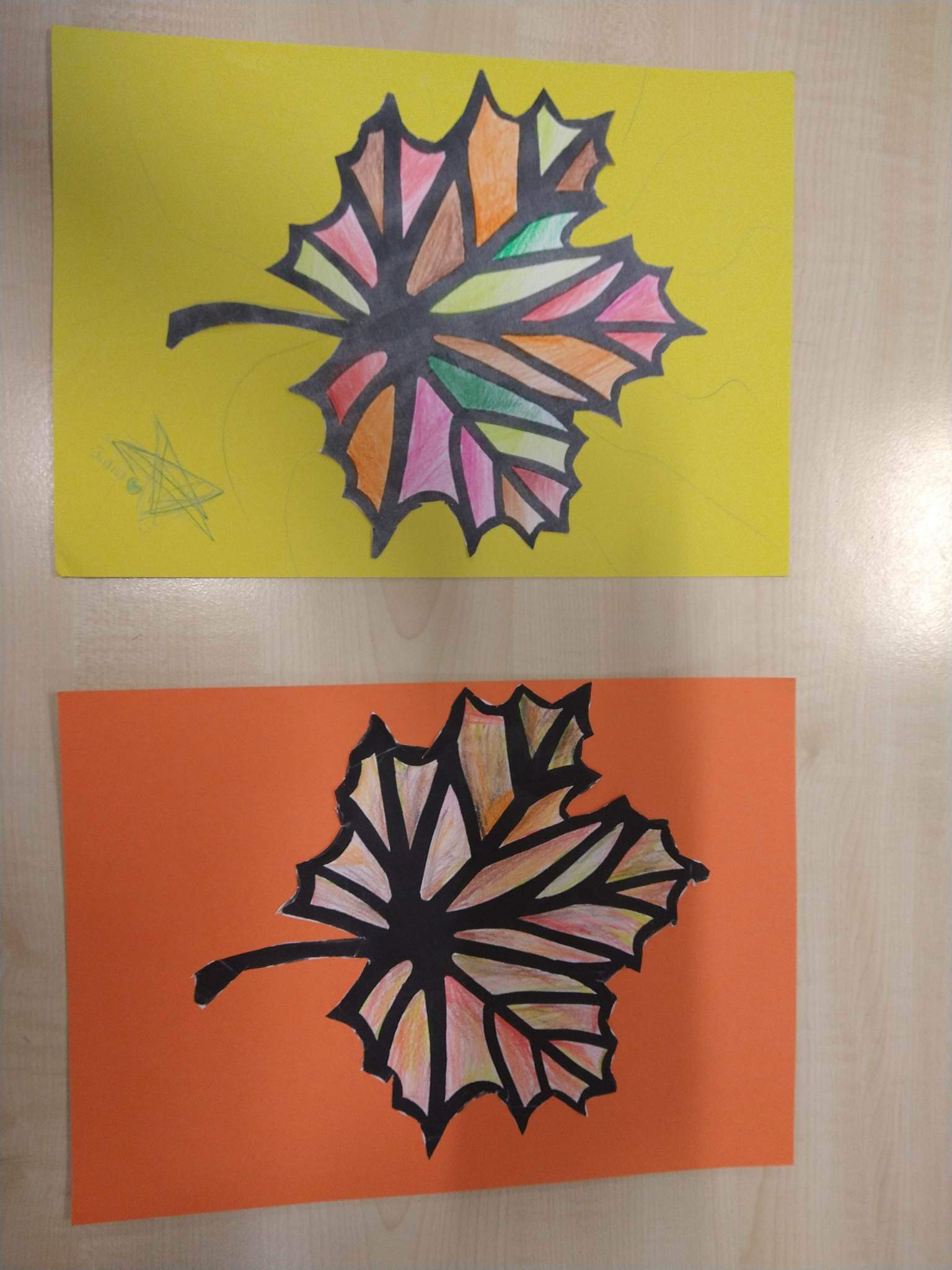 Najstarsza grupa plastyczna Kolorowe papugi wykonała piᶒkne, barwne jesienne liście.