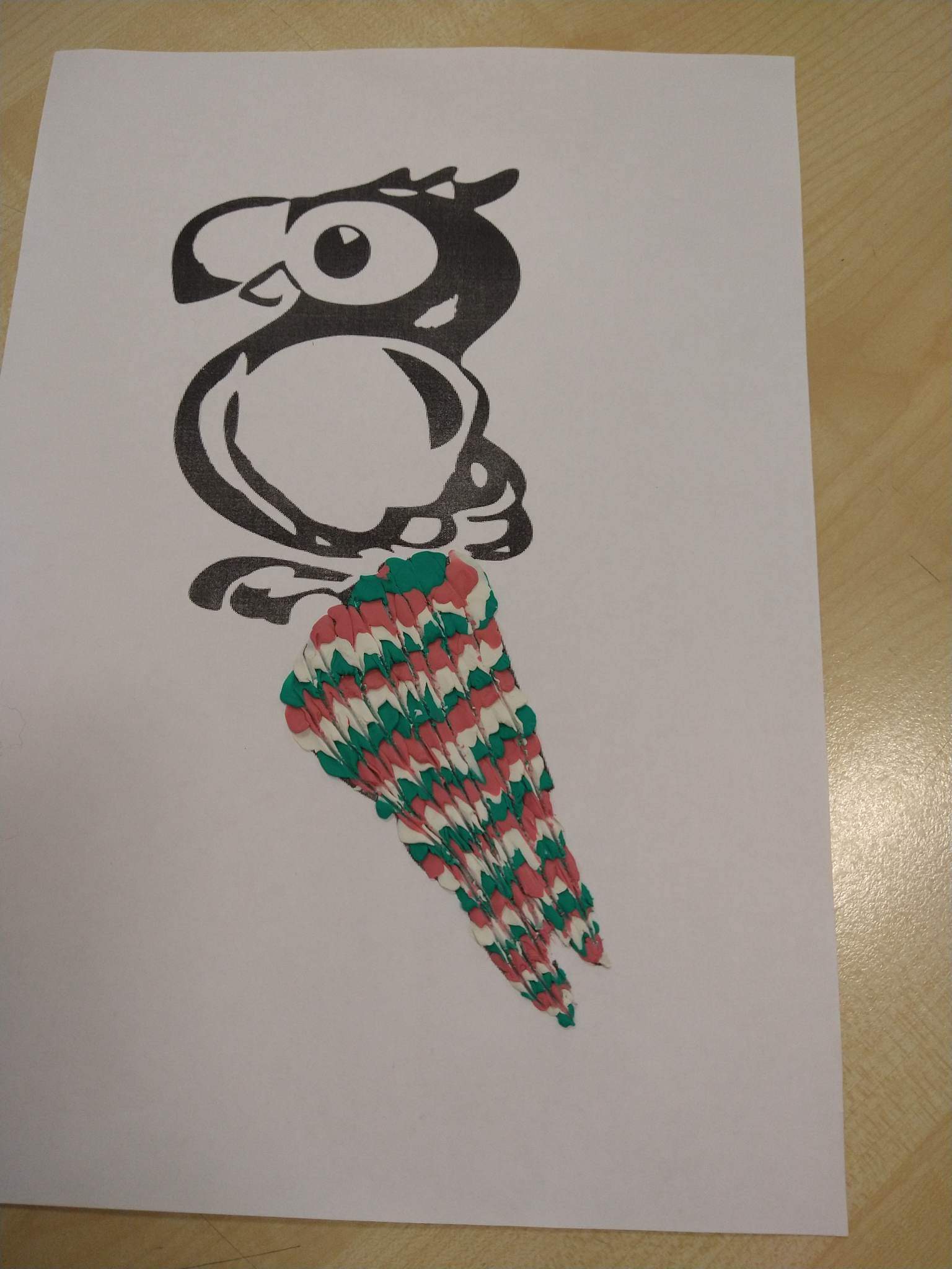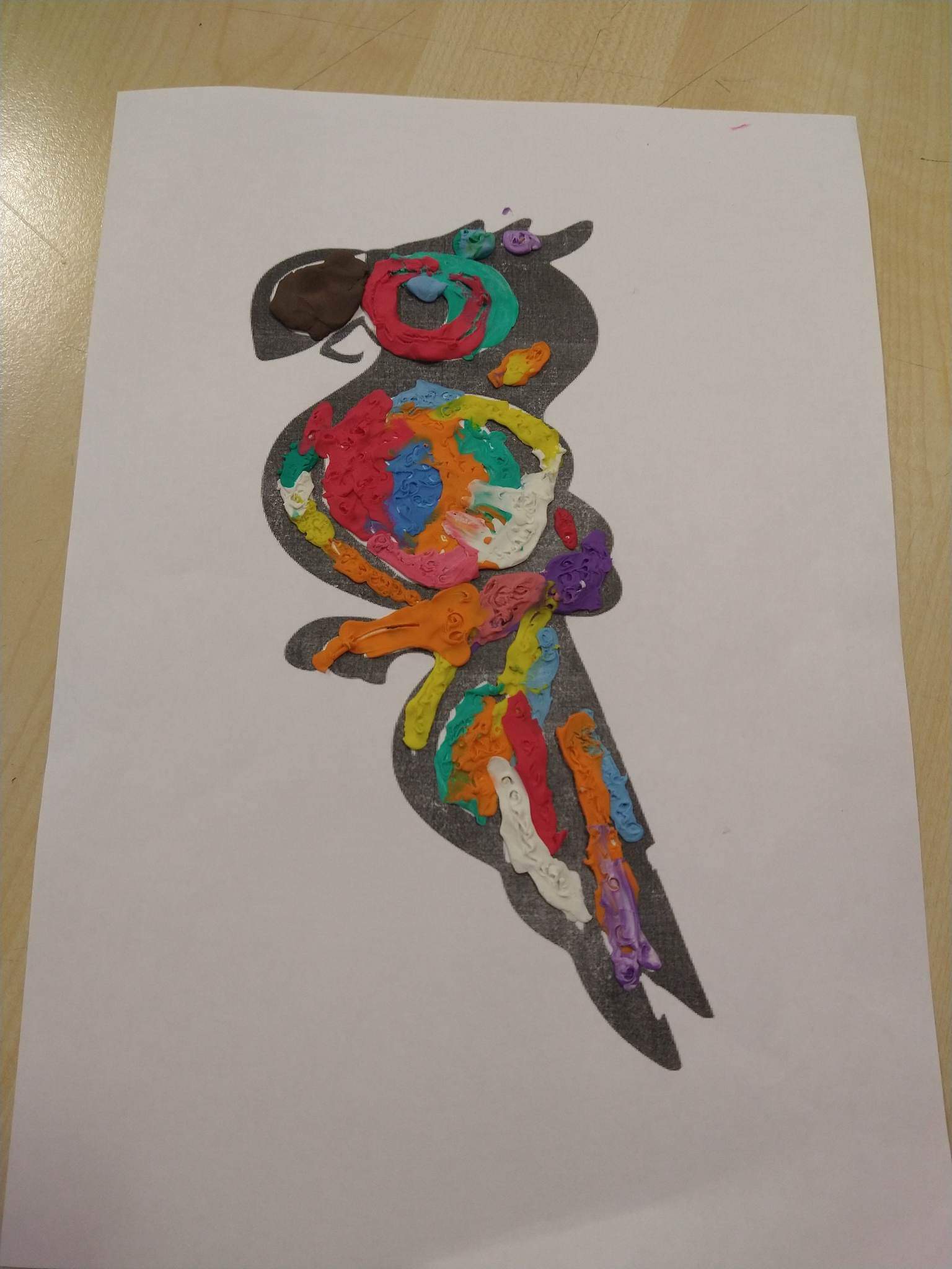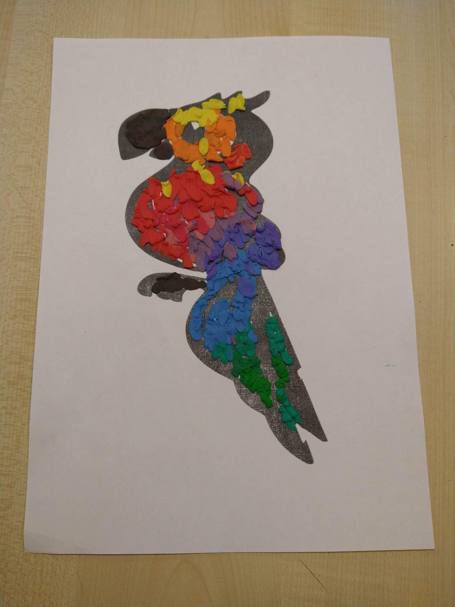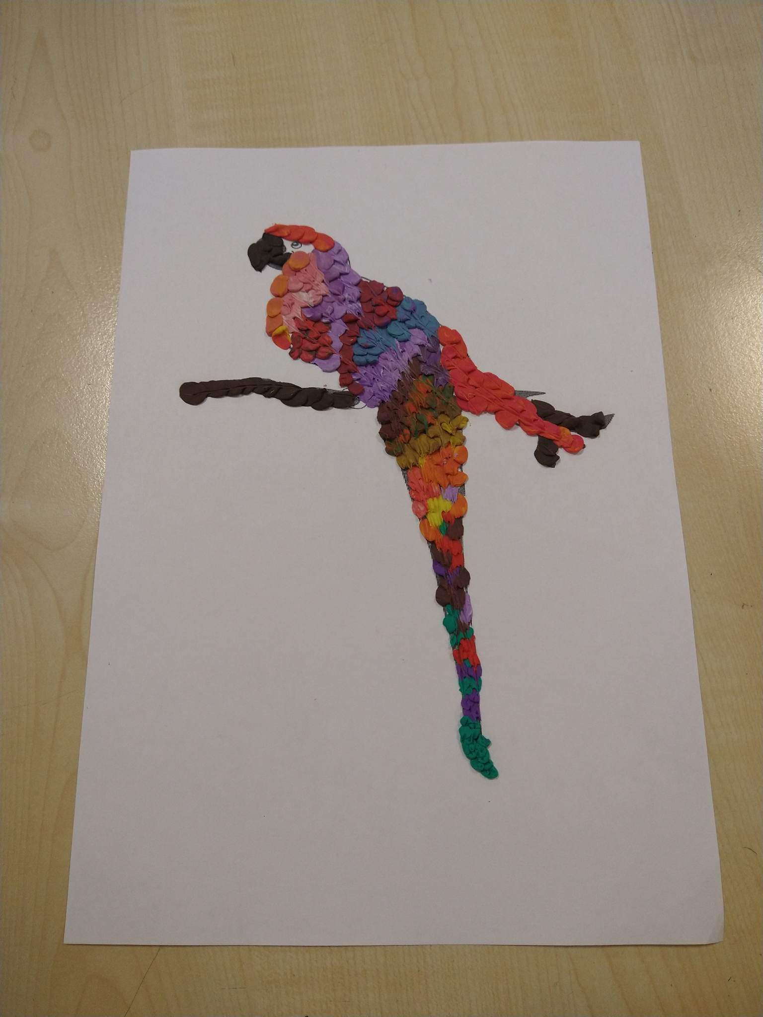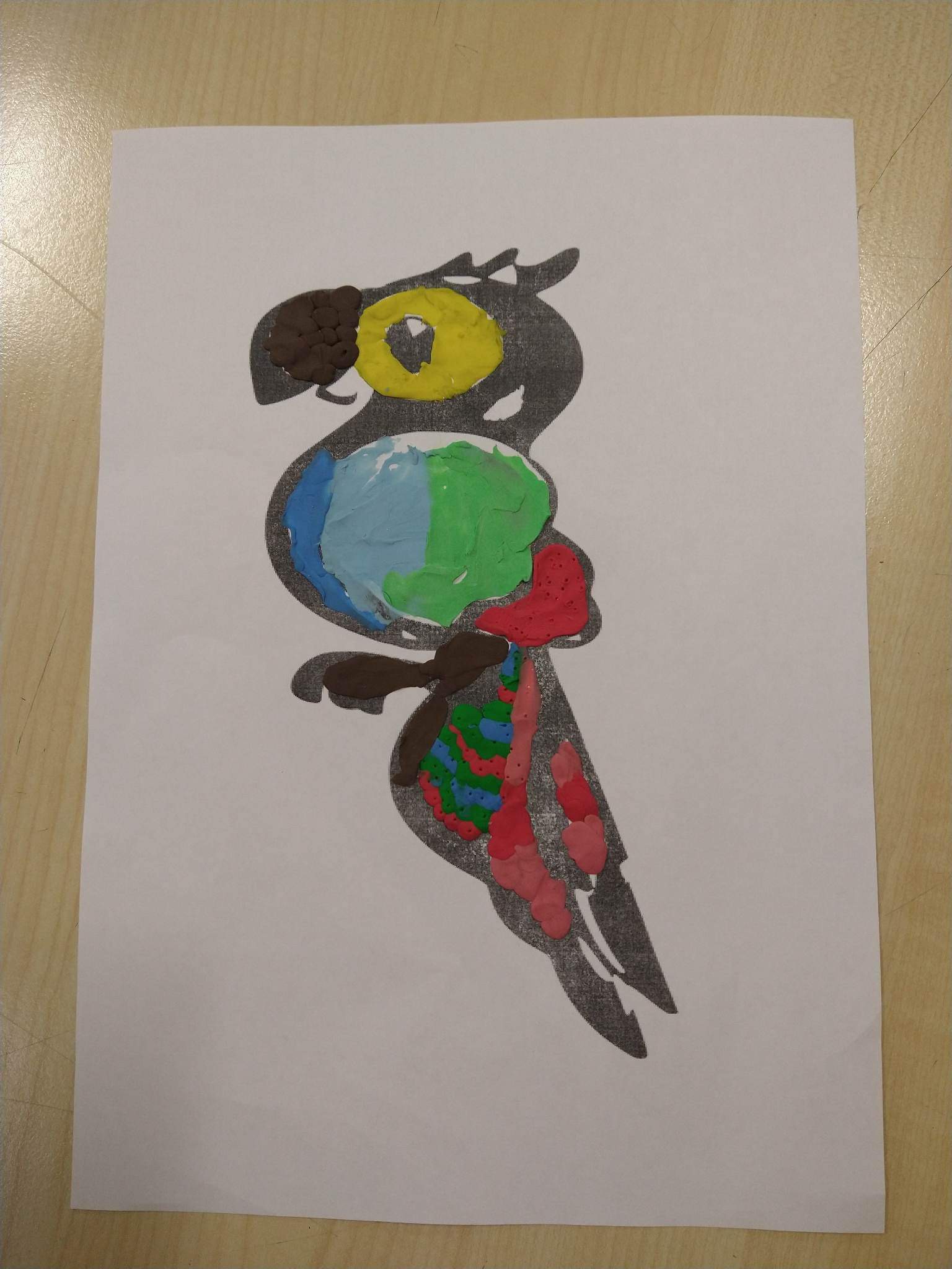 Uczniowie starszej grupy plastycznej- zgodnie z przyjᶒtą nazwą “ubrali” swoje papugi w piᶒkne, barwne, plastelinowe piόrka.