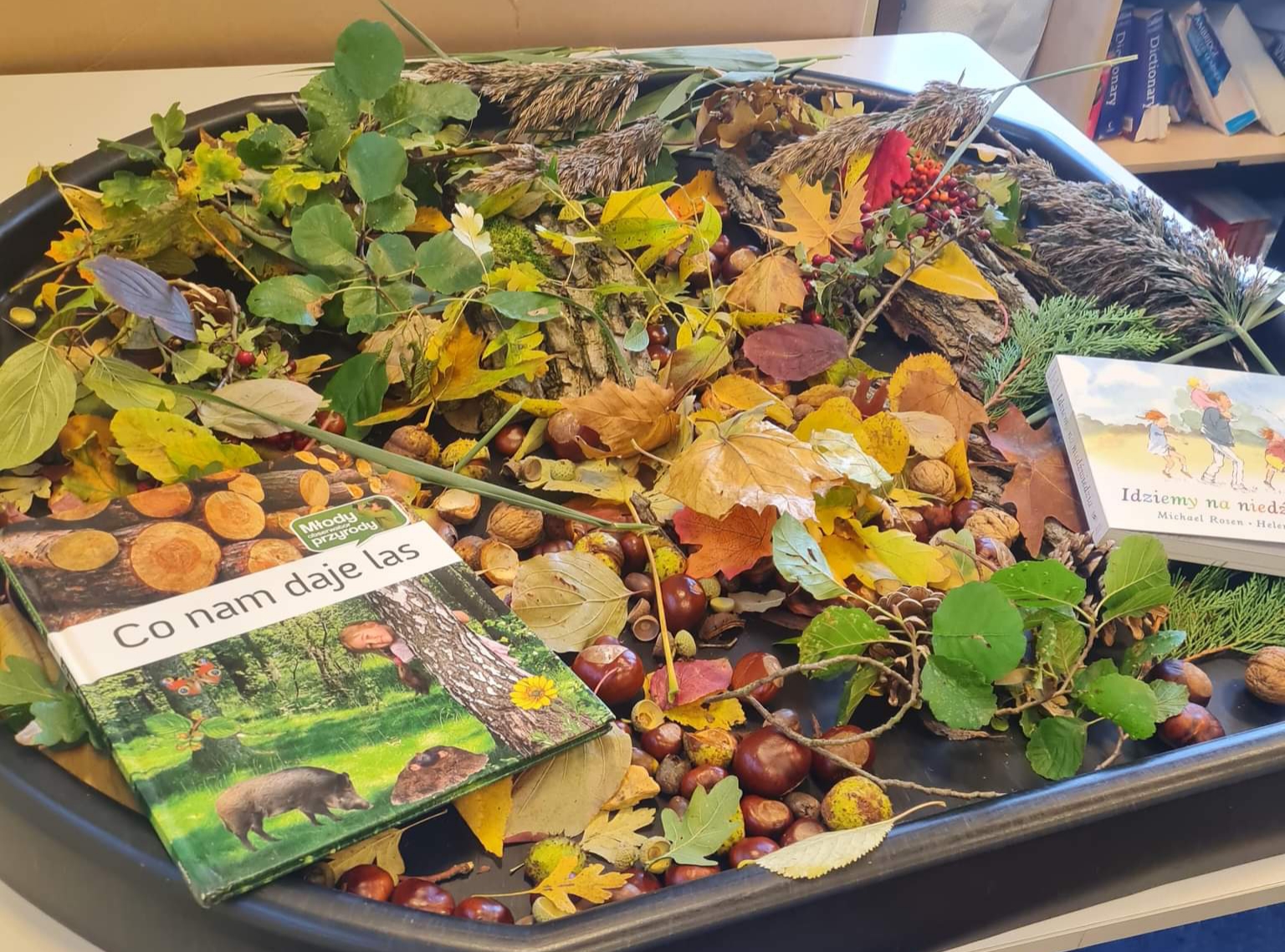 Z okazji dnia drzewa dzieci wybrały się na sensoryczny spacer do lasu, wzięły udział w polowaniu na niedźwiedzia i wykonały własne drzewa ze skarbów jesieni.