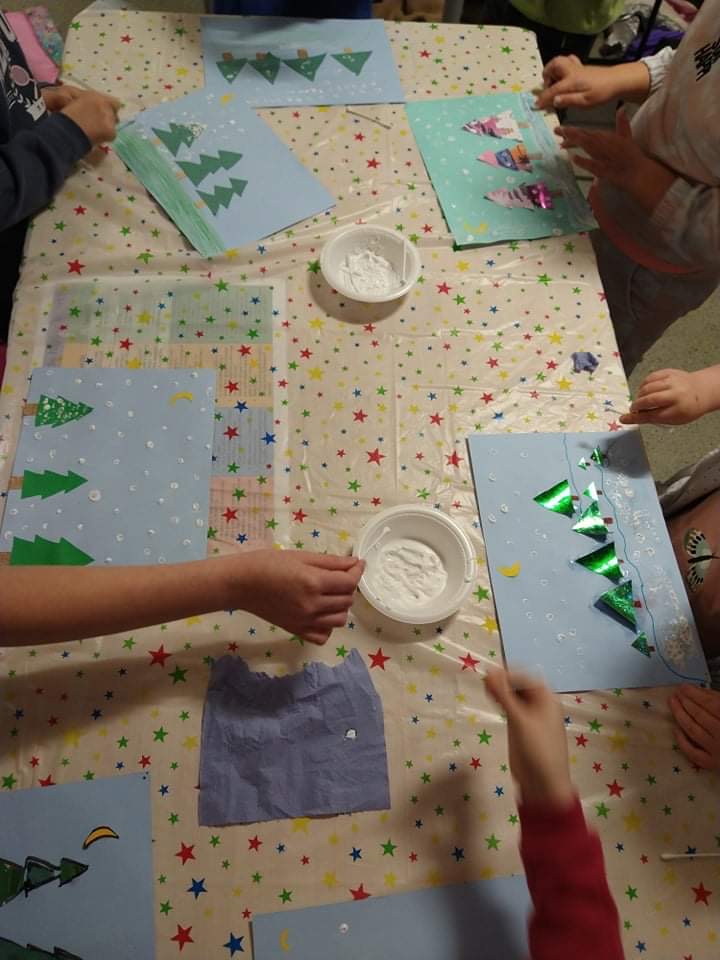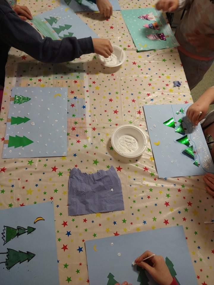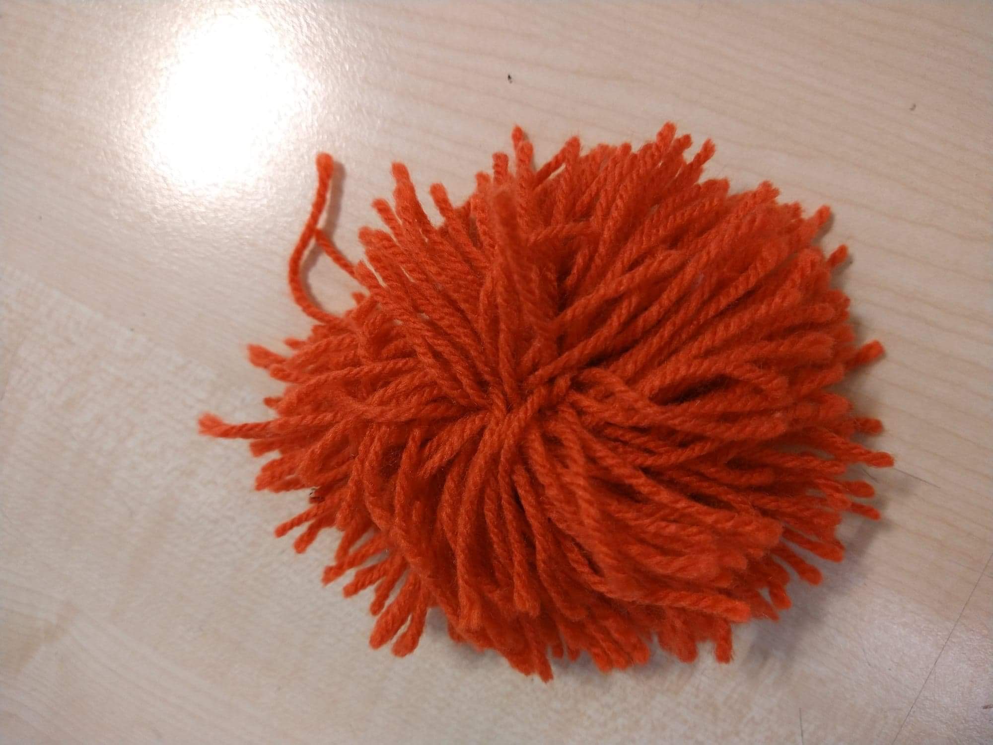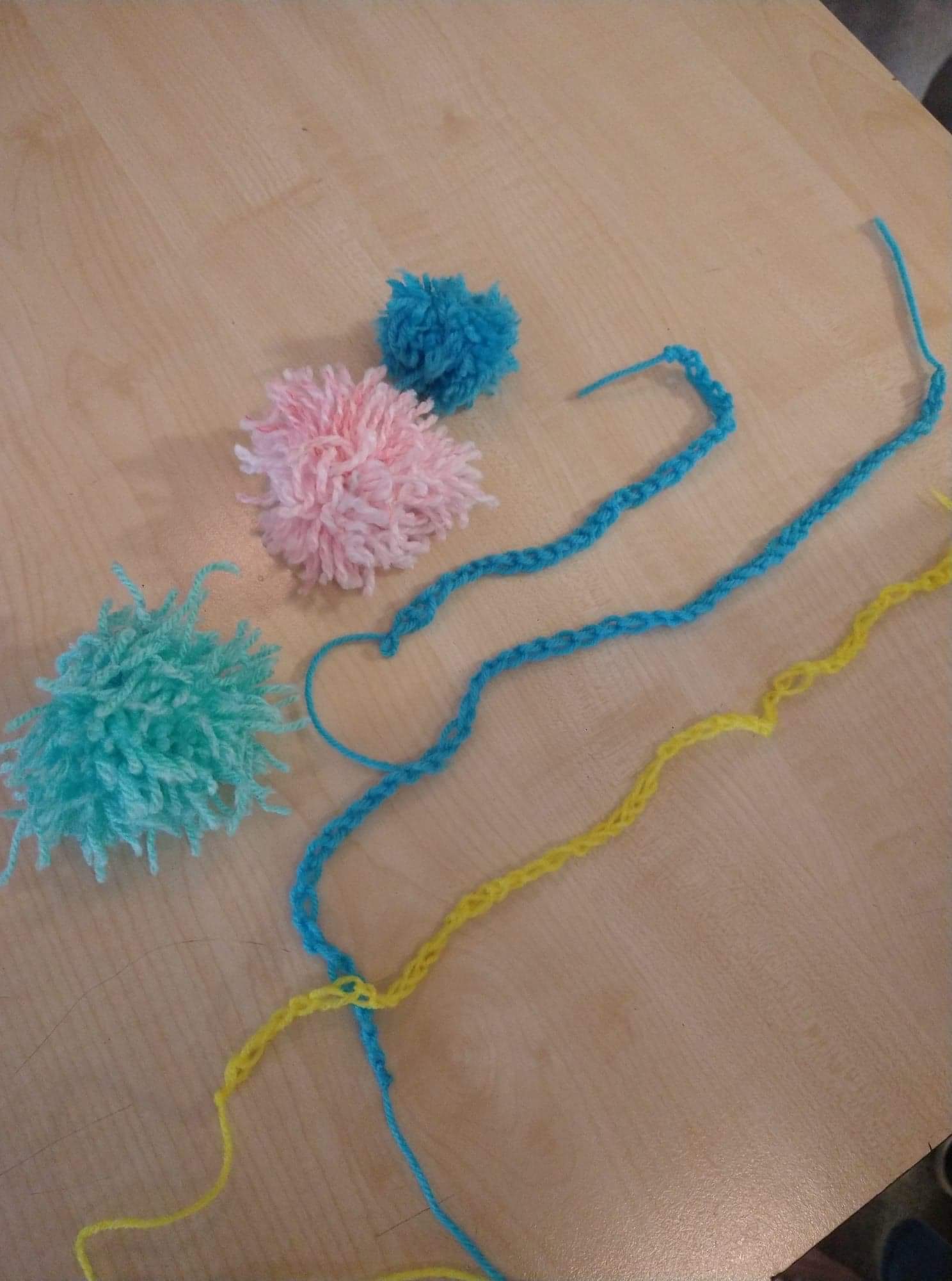 W styczniu na zajęciach grupy „Złote ołówki” pompony wykorzystując włóczkę.