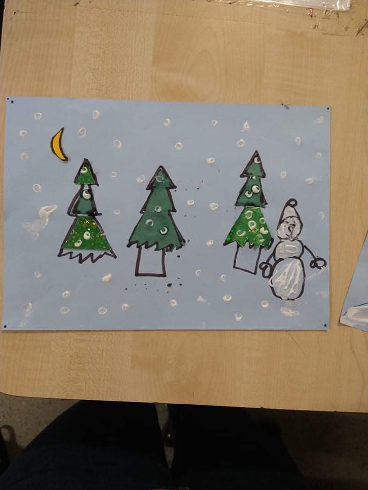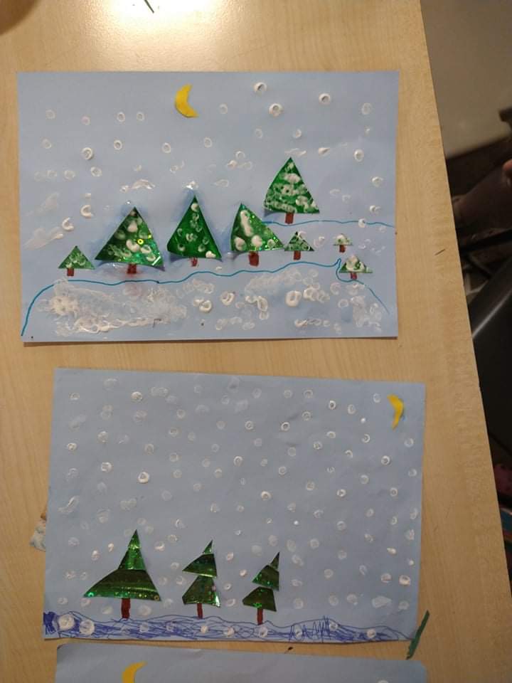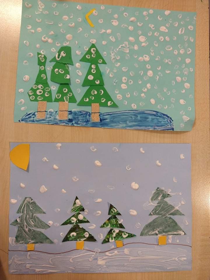 ” Złote olowki” wywoluja zime. Zimowy kolaż.