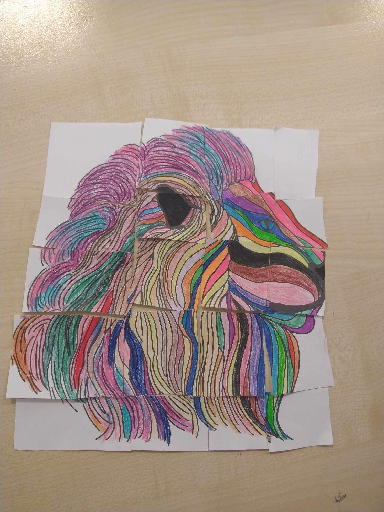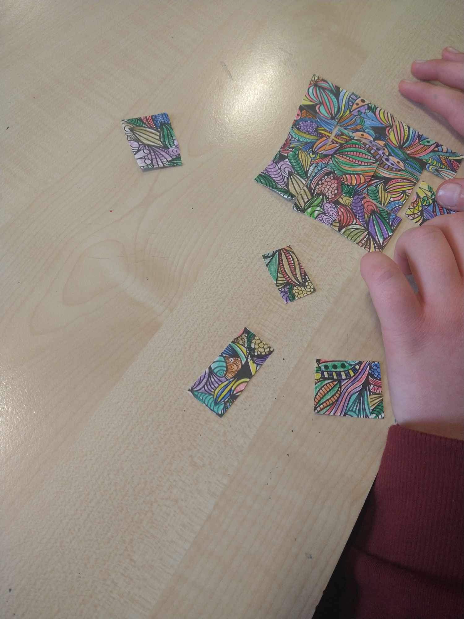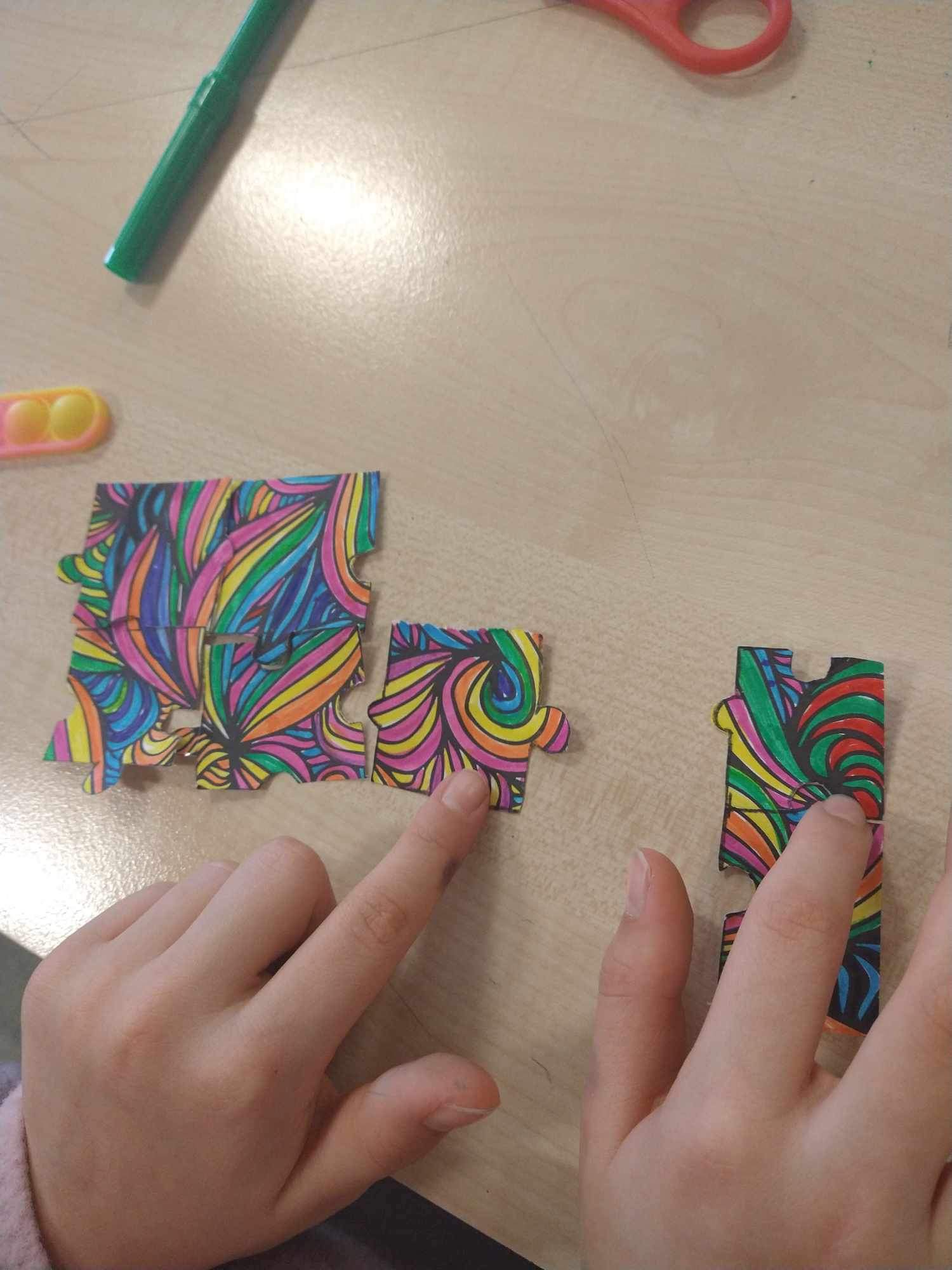 Uczniowie na zajᶒciach plastyki nie tylko samodzielnie wykonali puzzle, ale je rόwnież ułożyli.