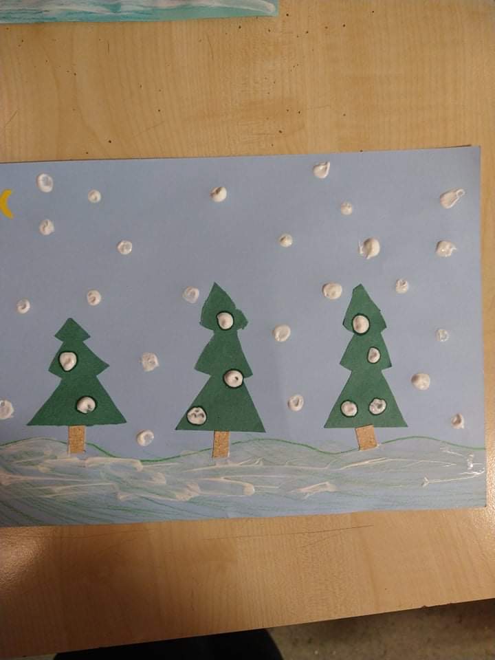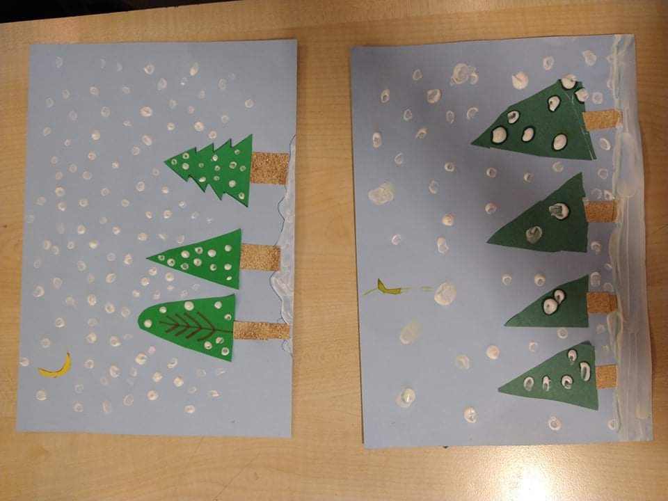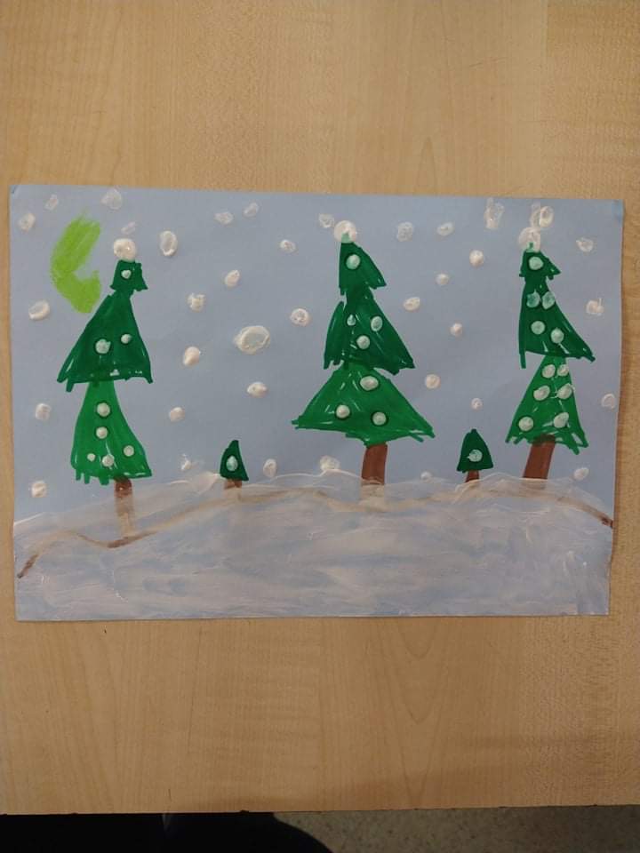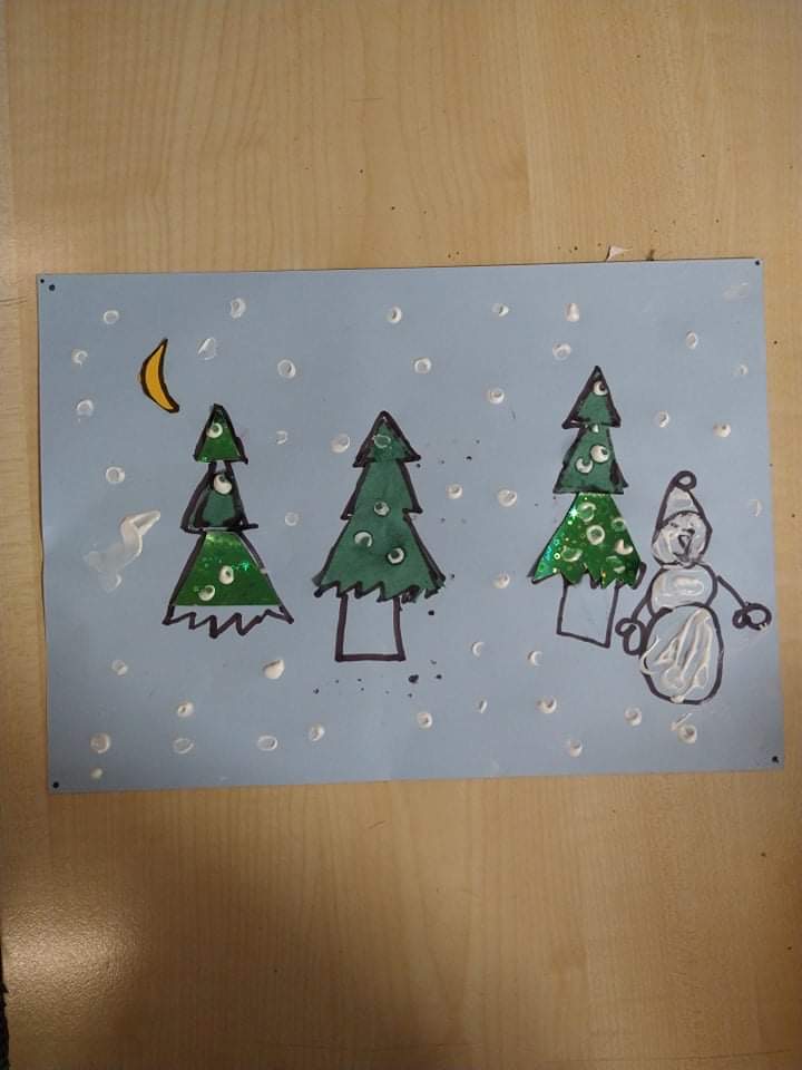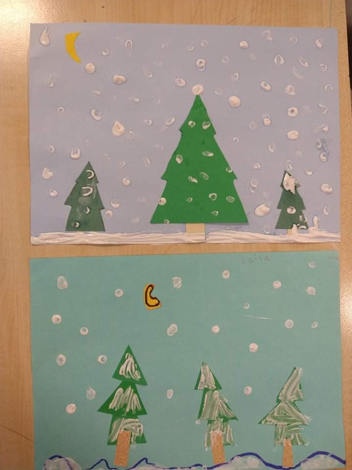 ” Złote olowki” wywoluja zime. Zimowy kolaż.