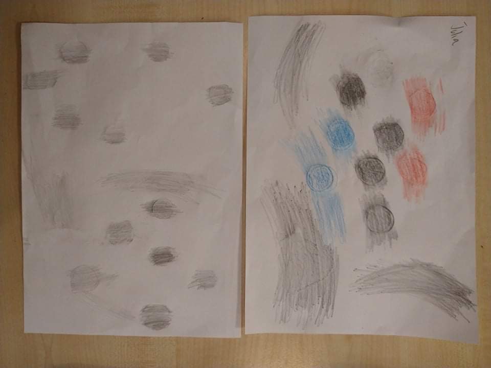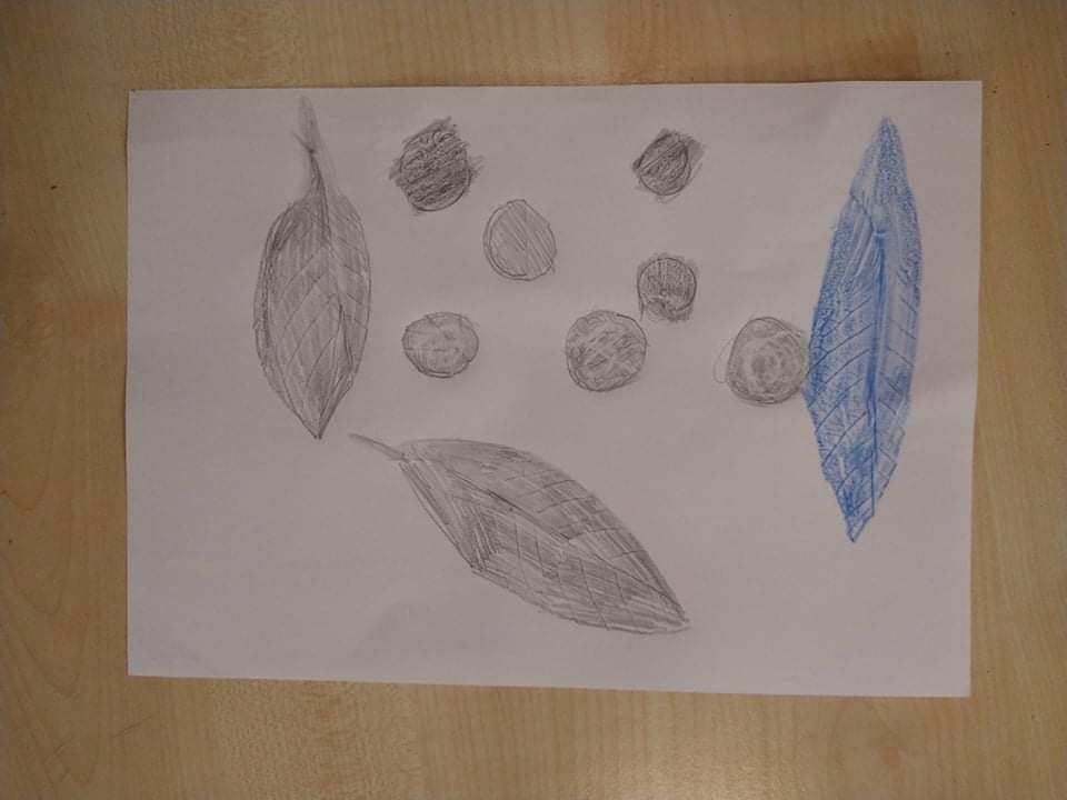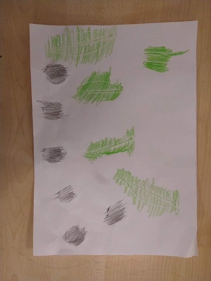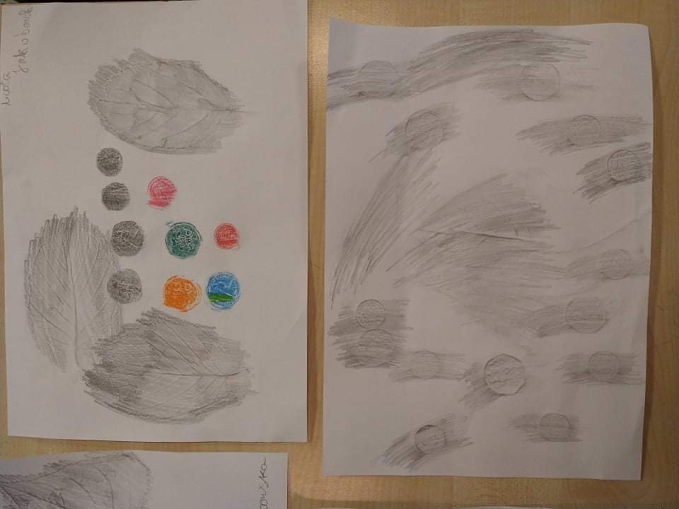 ” Złote ołówki” Frotaz- technika rysunkowa, polegająca na pocieraniu grafitem kartki papieru położonej na fakturze powierzchni różnych materiałów, w celu uzyskania dokładnego odwzorowania ich struktury w naszym przypadku lisci i monet🍁🍂🍀💰